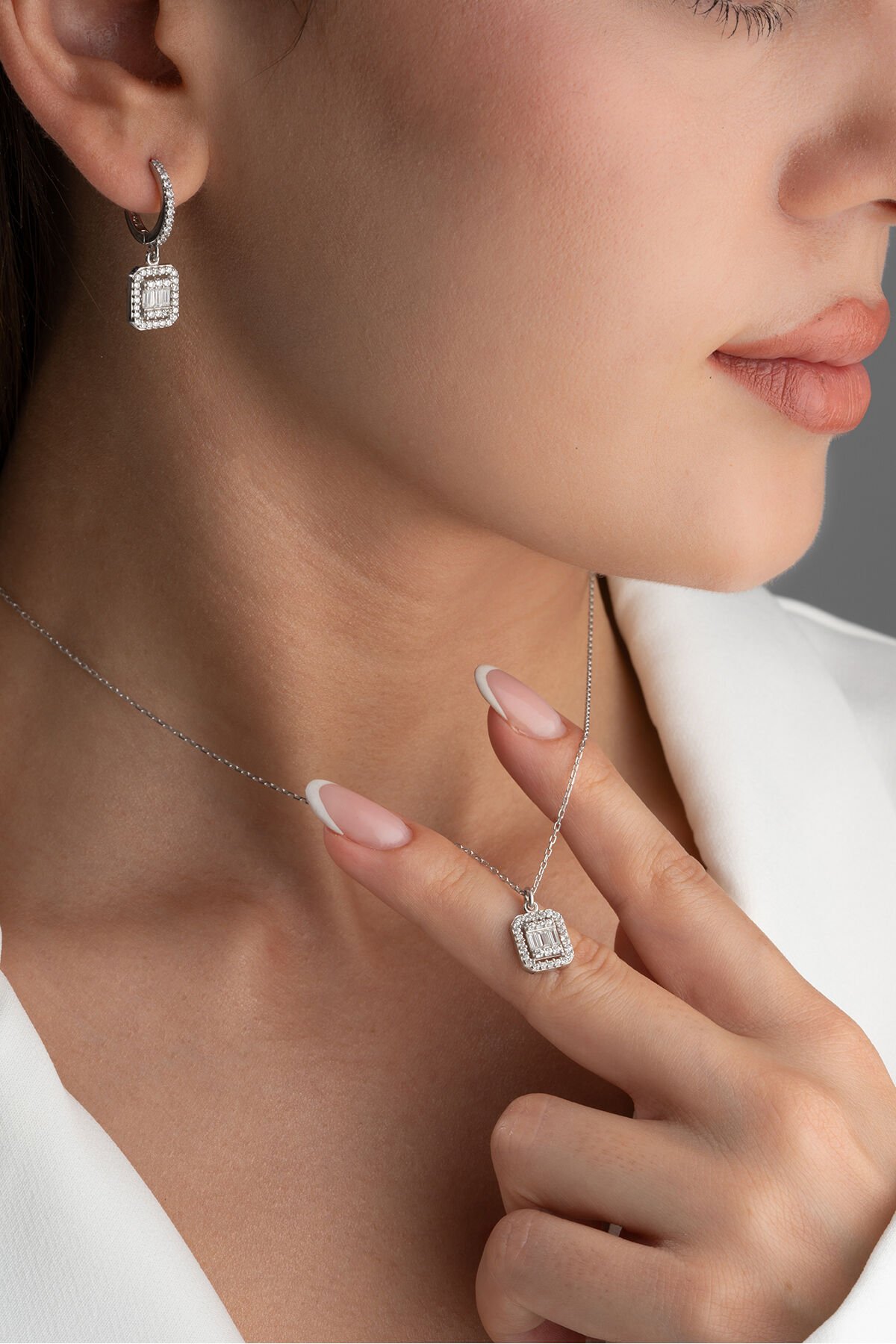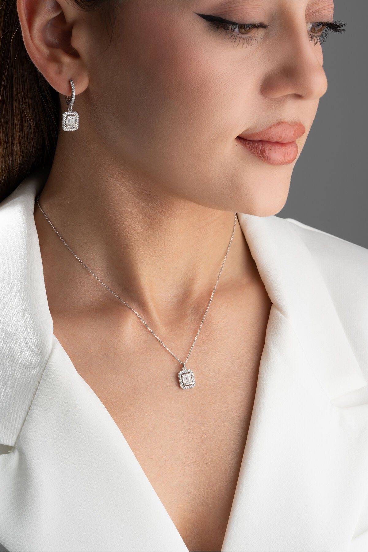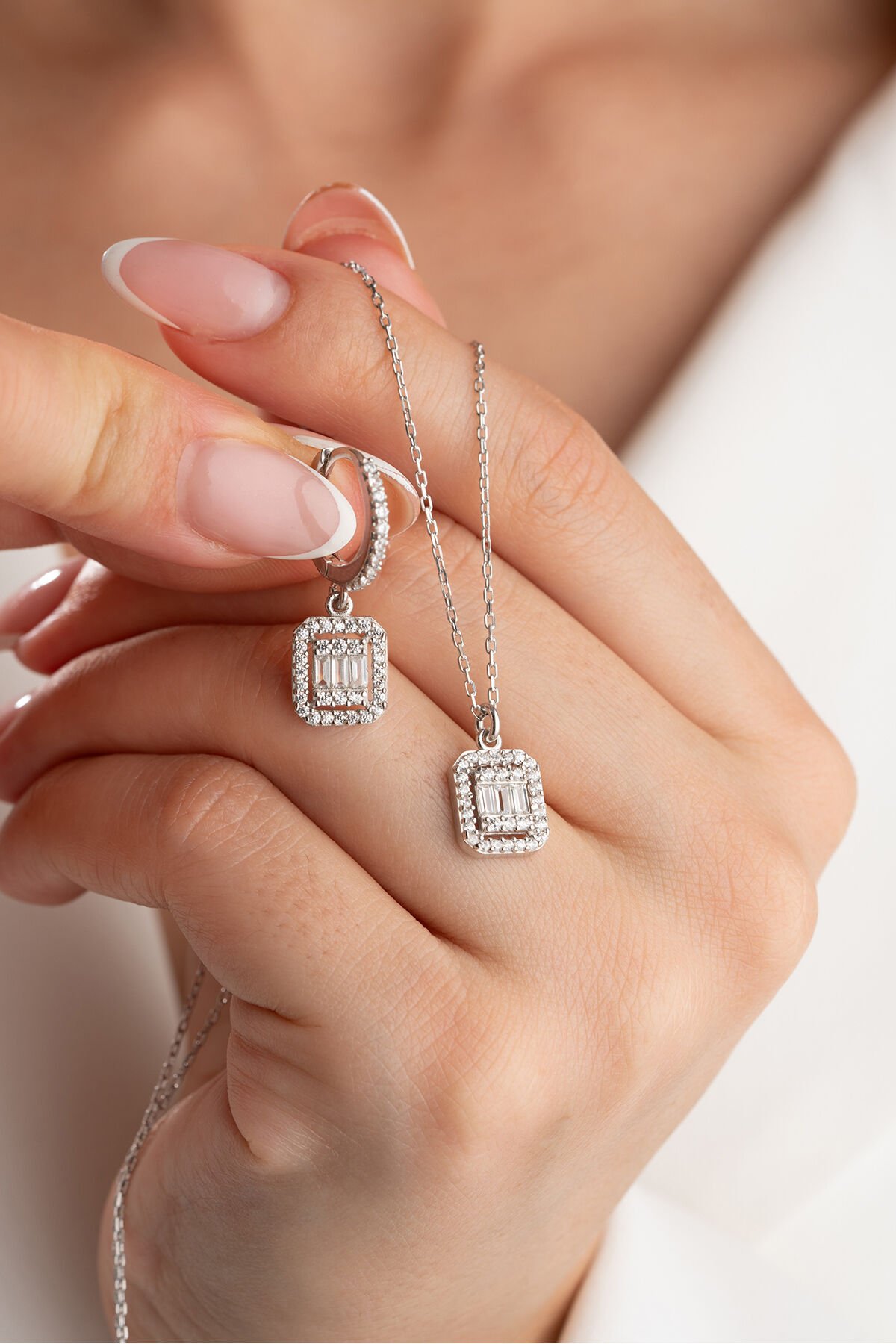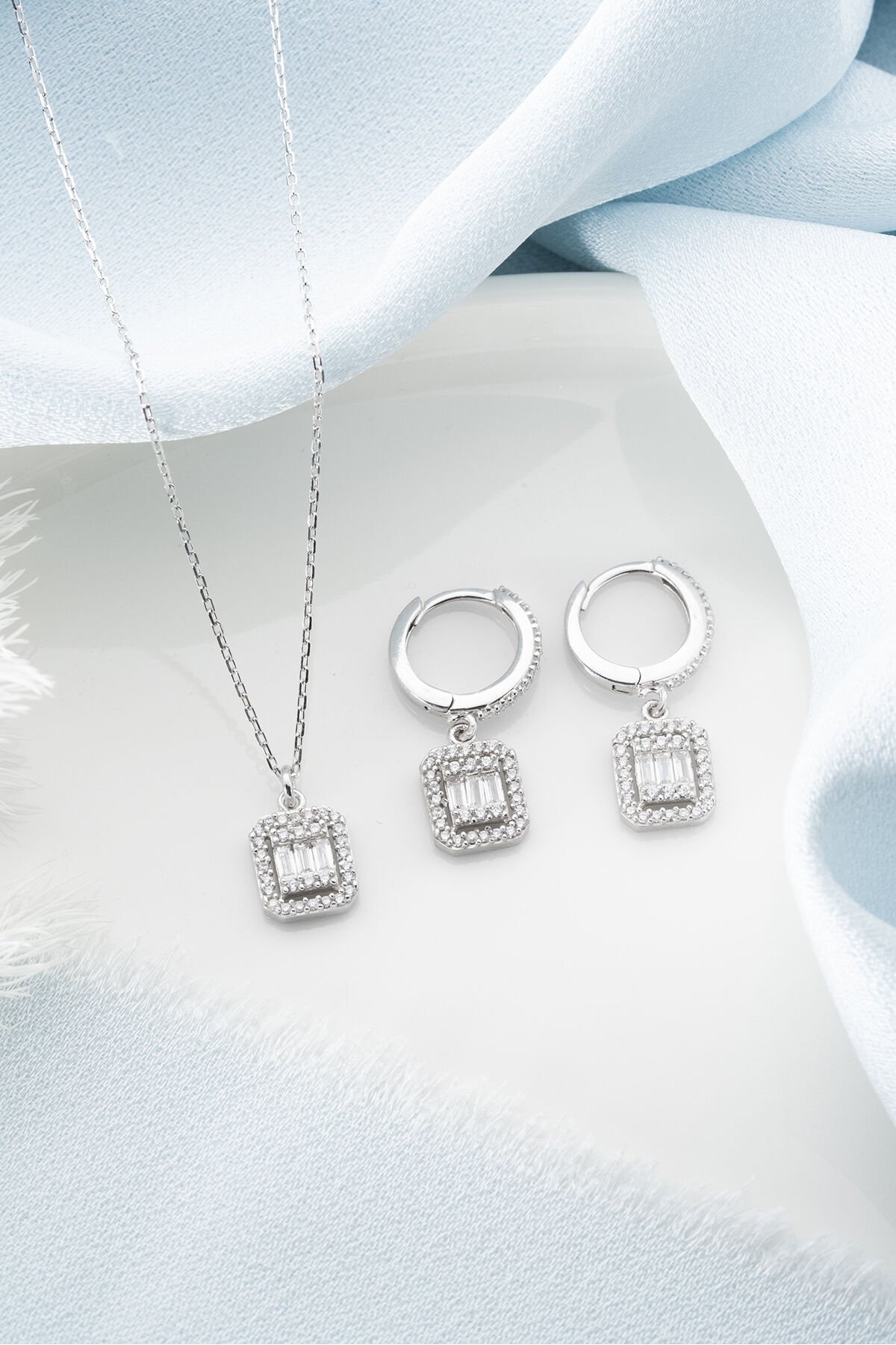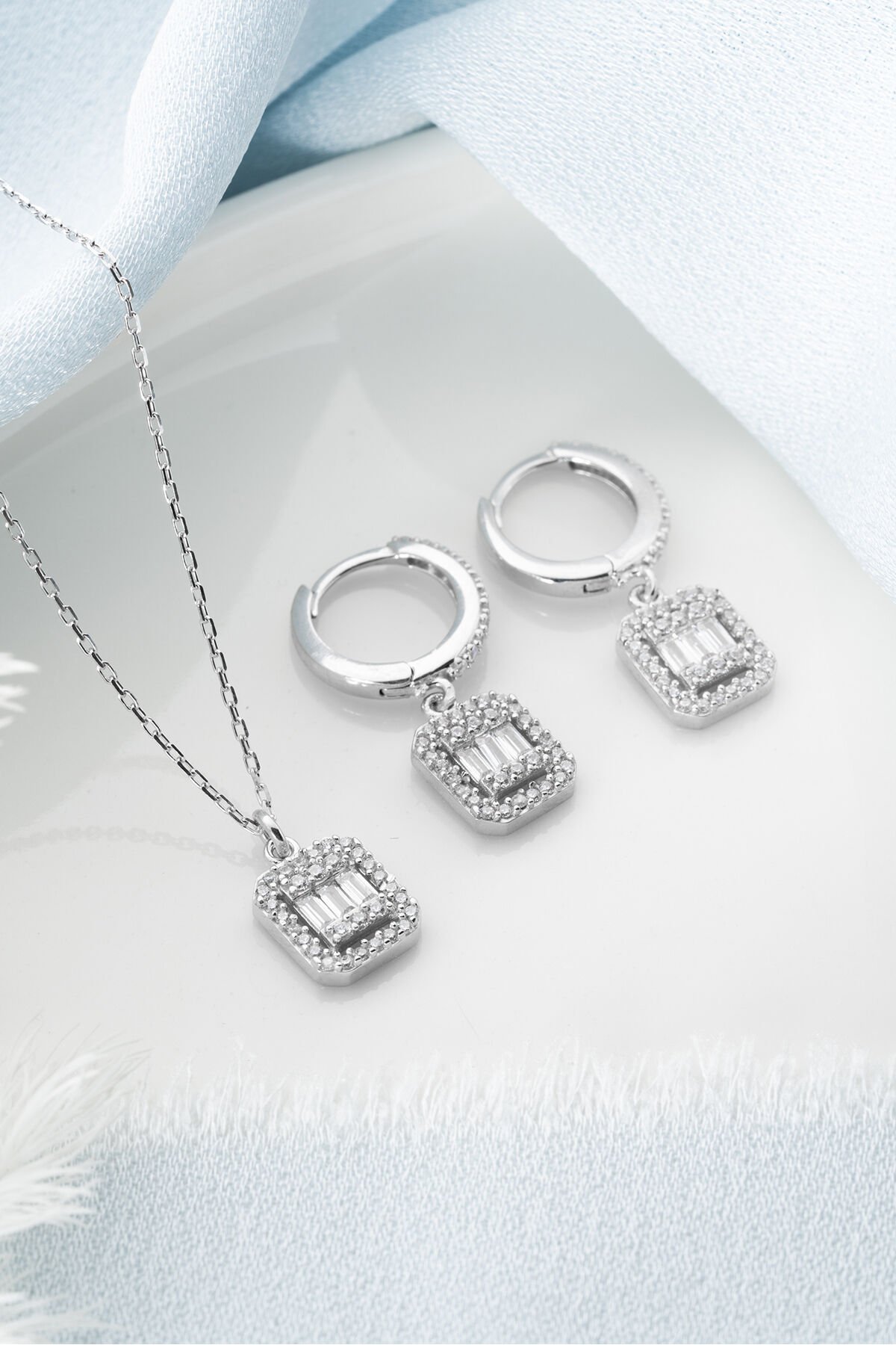 925 Ayar Gümüş Baget Kolye Küpe Set