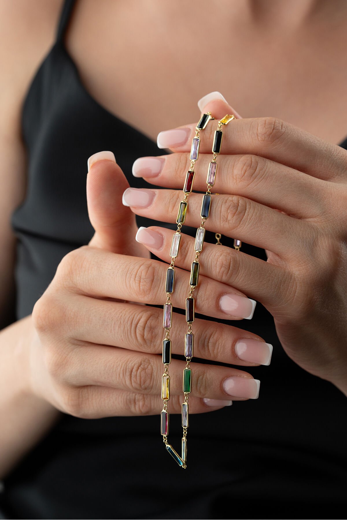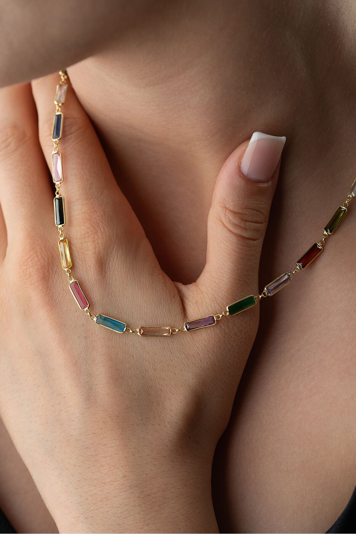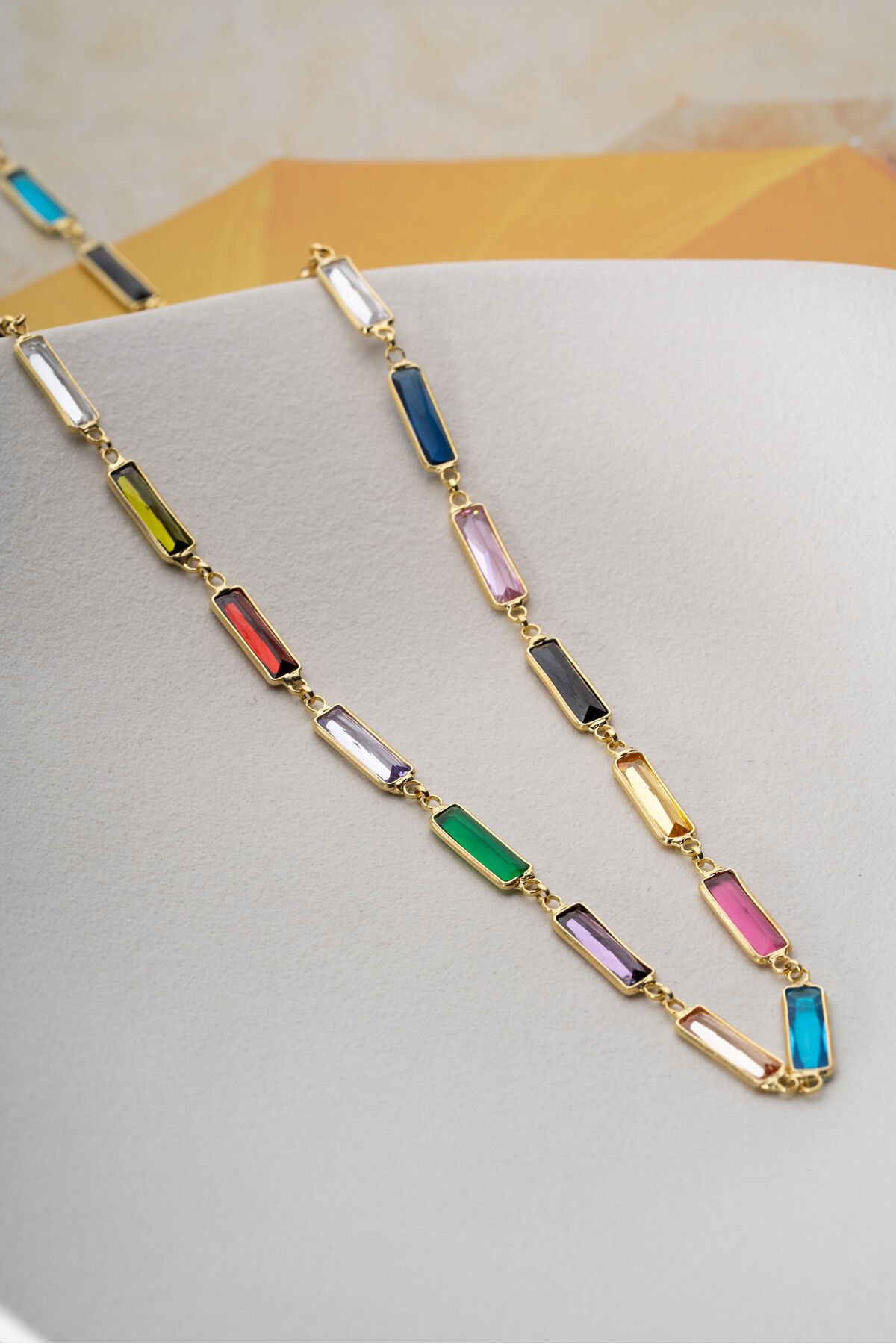 925 Ayar Gümüş Baget Mix Taşlı Kolye