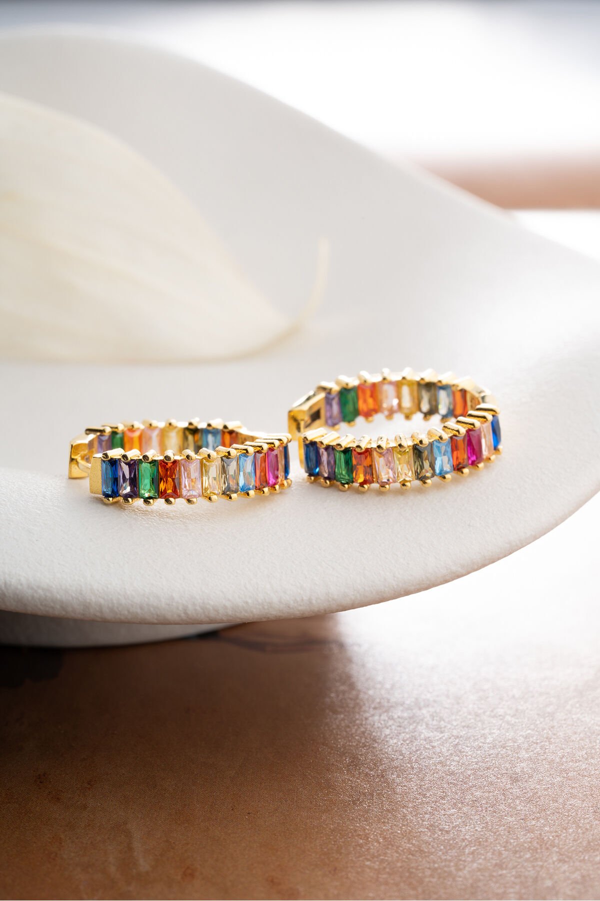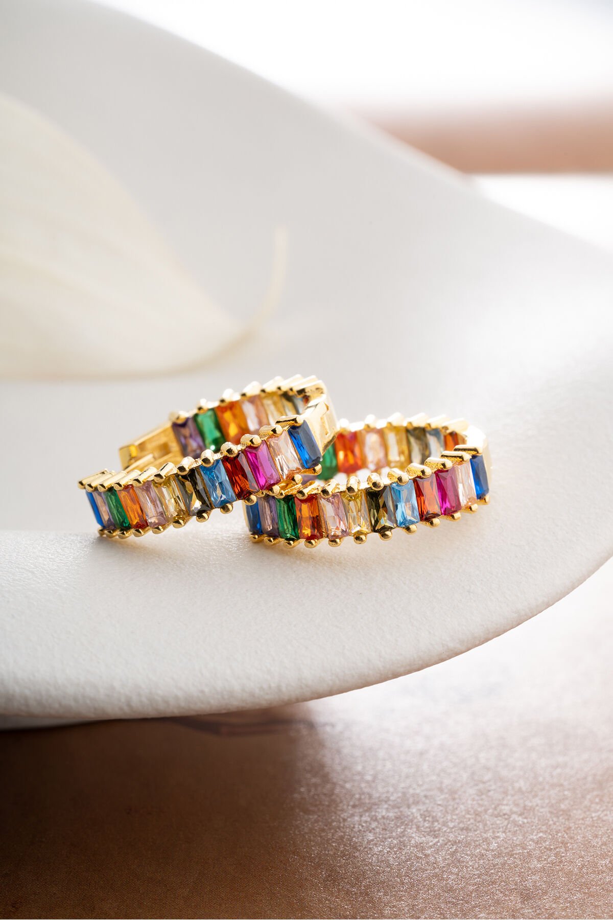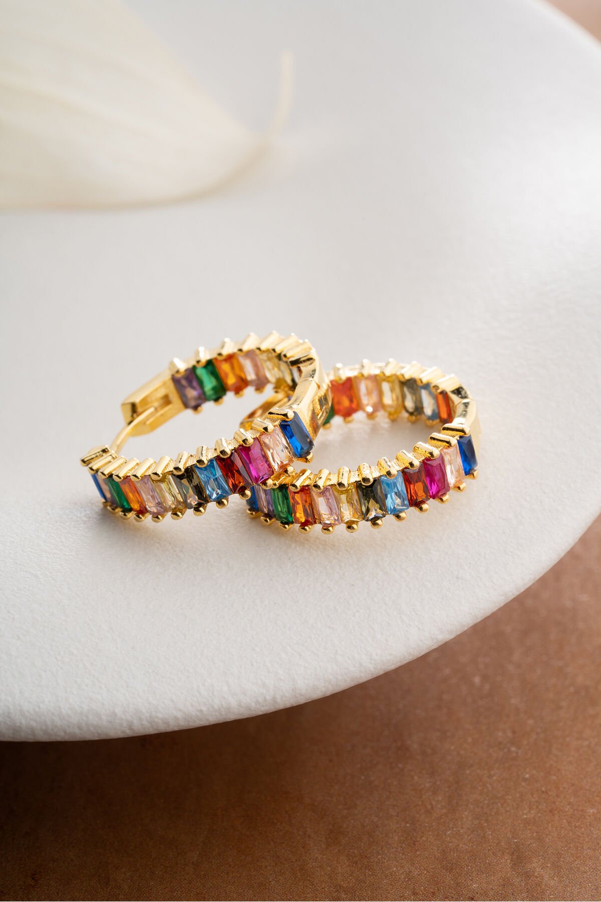925 Ayar Gümüş Baget Renkli Taşlı Halka Küpe