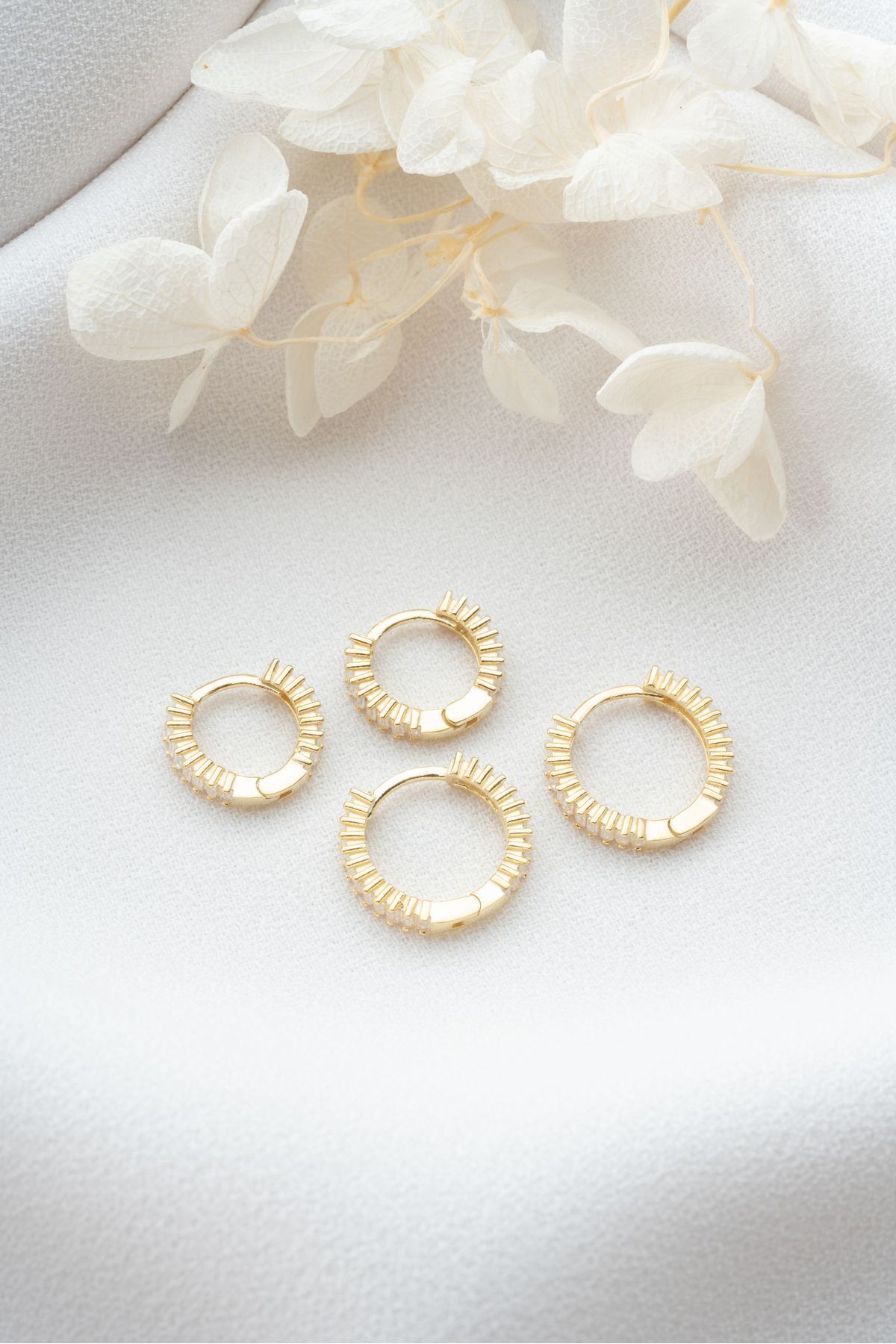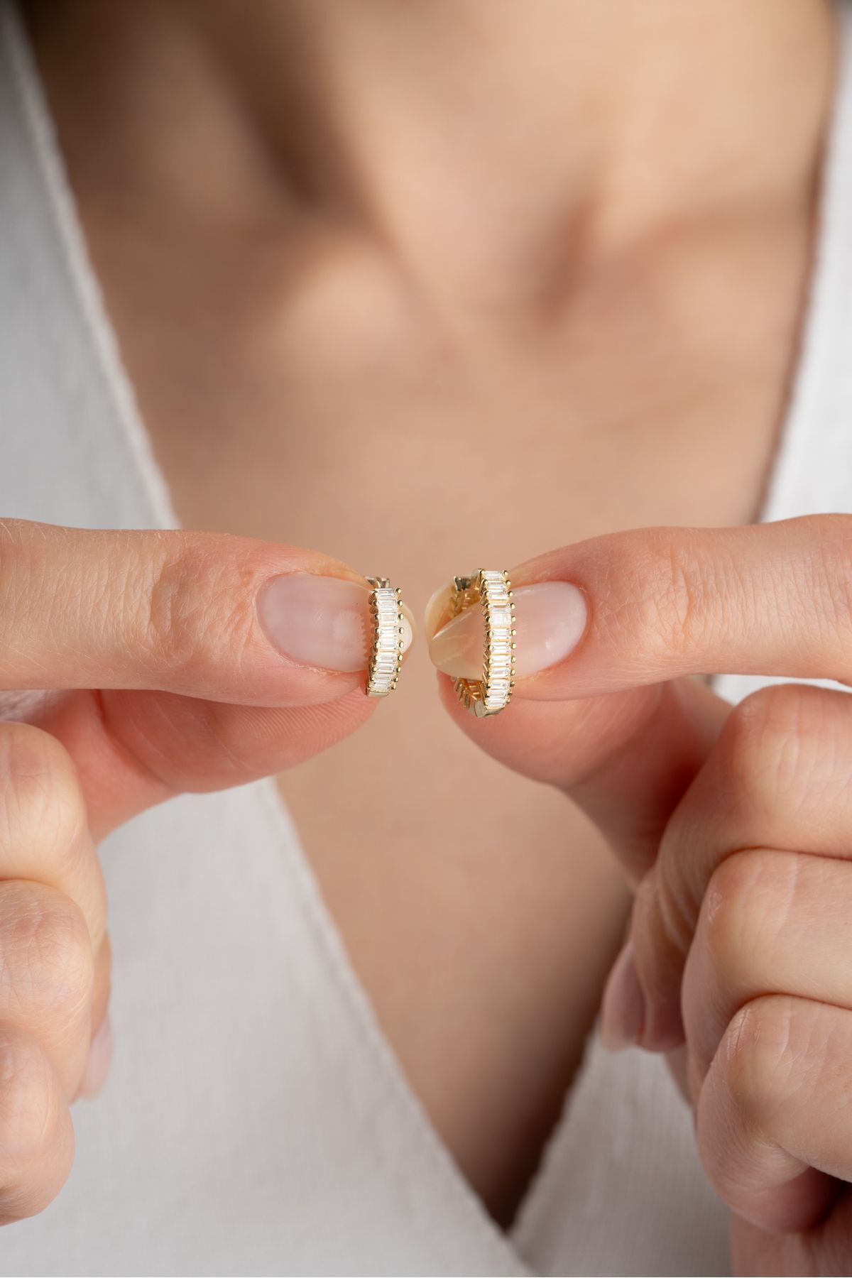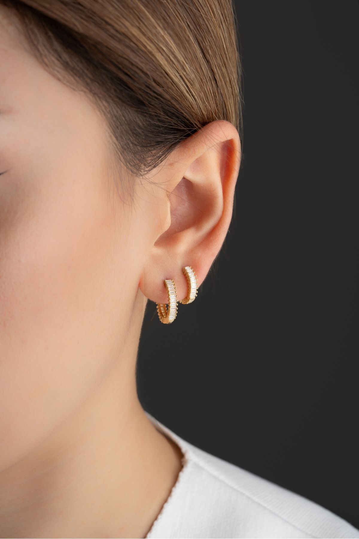 925 Ayar Gümüş Baget Taşlı 2'li Set Halka Küpe
