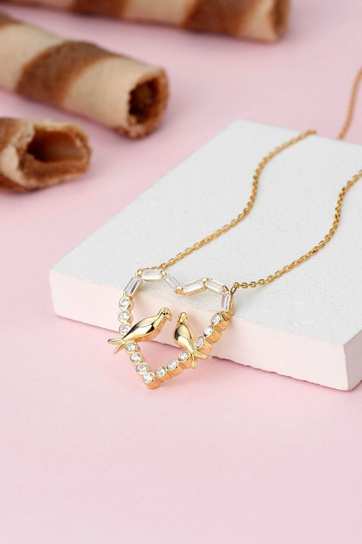 925 Ayar Gümüş Baget Taşlı Çifte Kumru Kolye