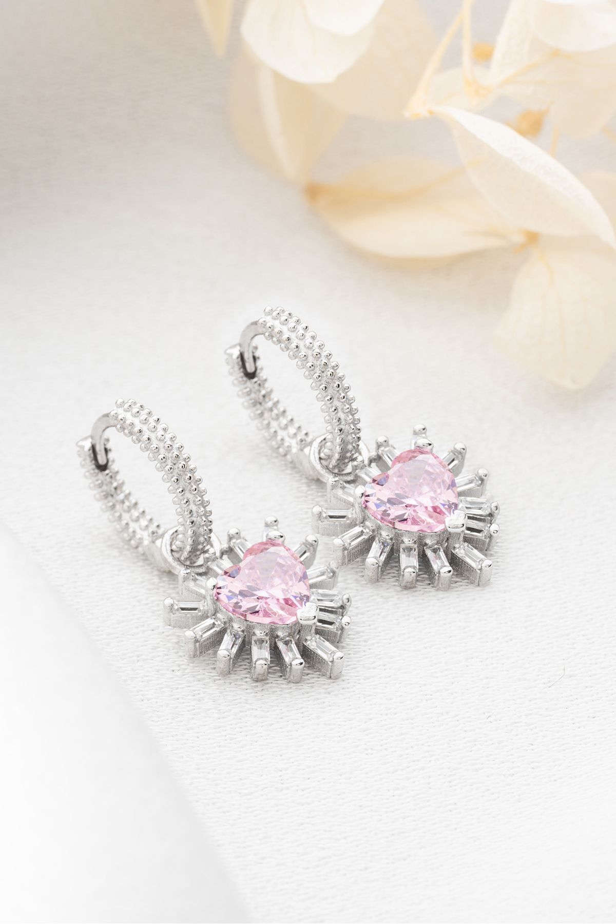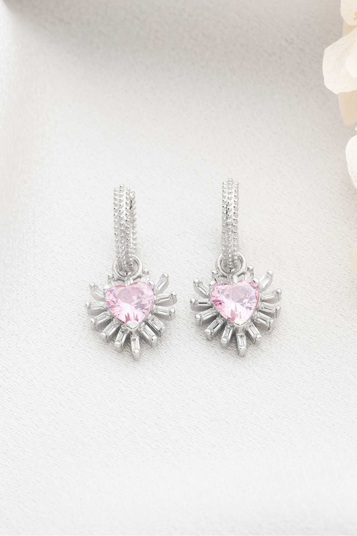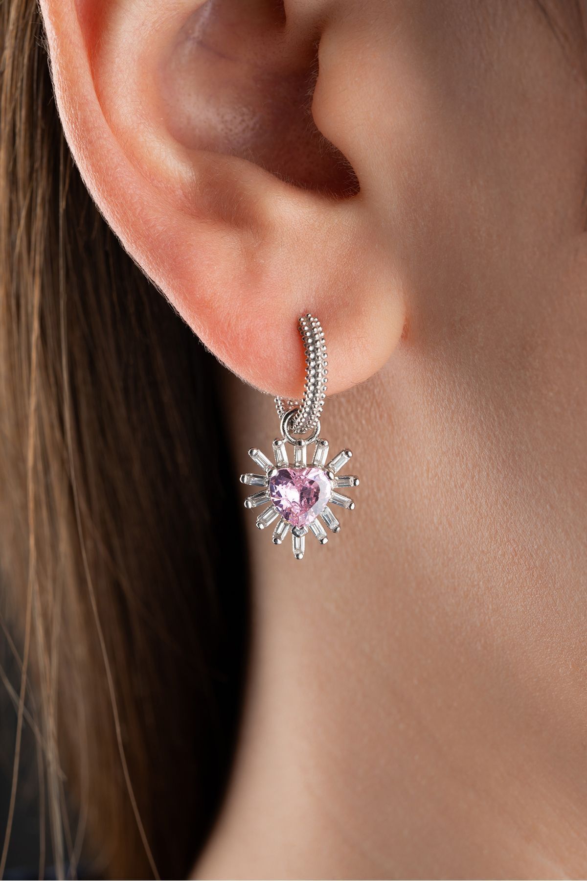 925 Ayar Gümüş Baget Taşlı Kalp Küpe