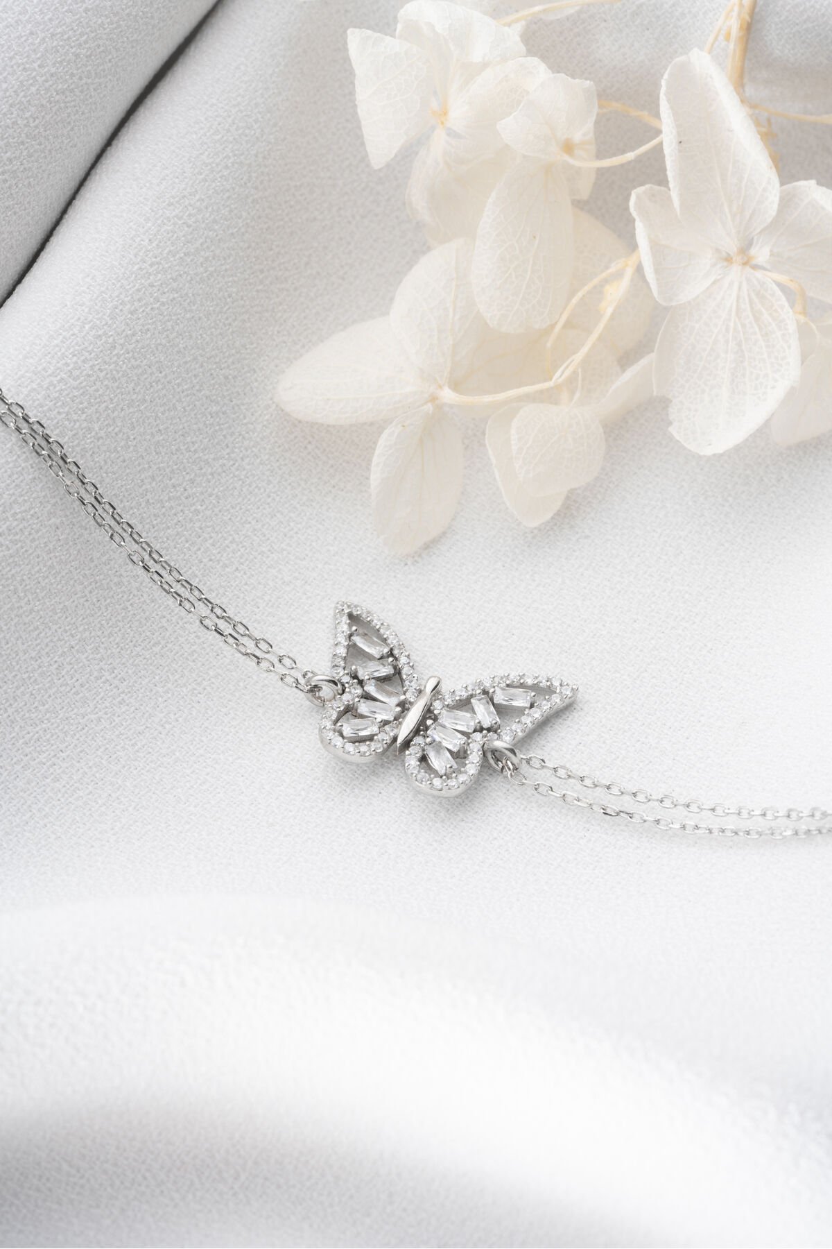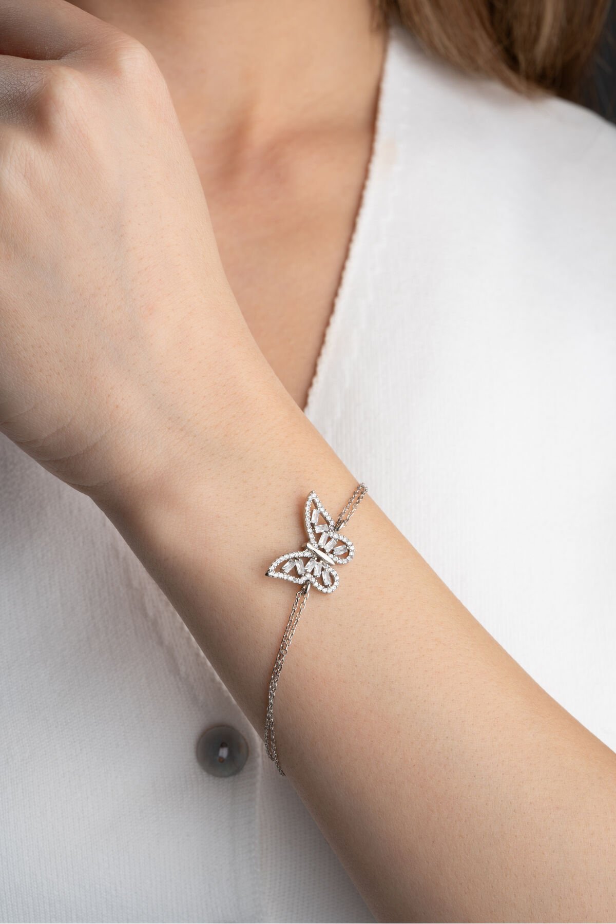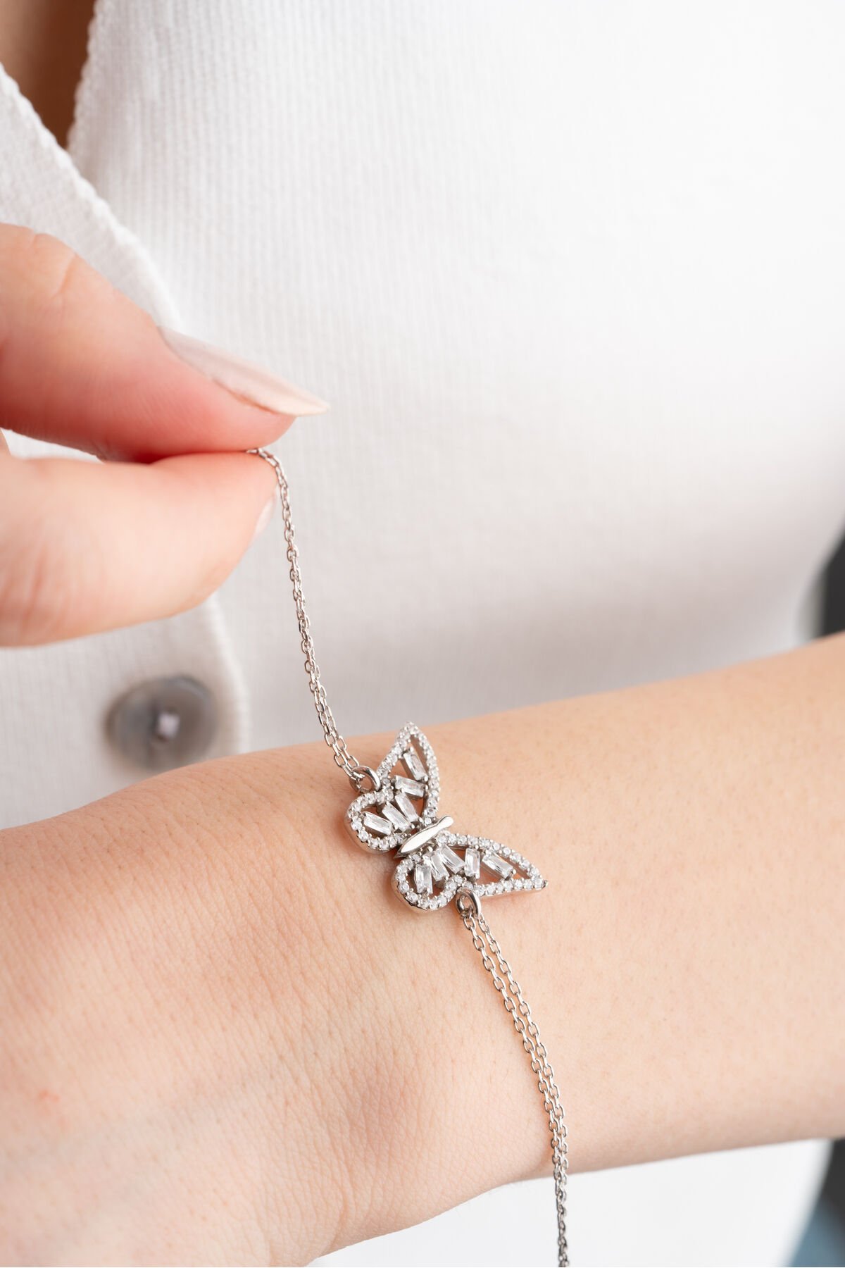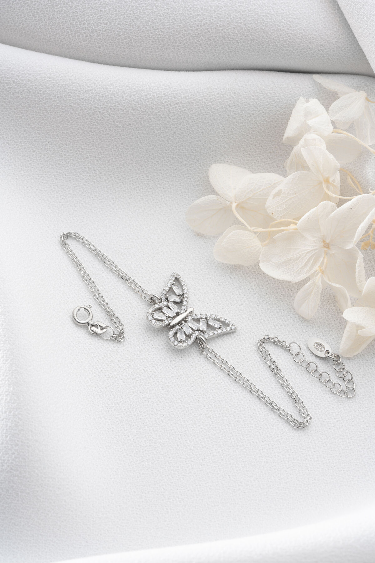 925 Ayar Gümüş Baget Taşlı Kelebek Bileklik