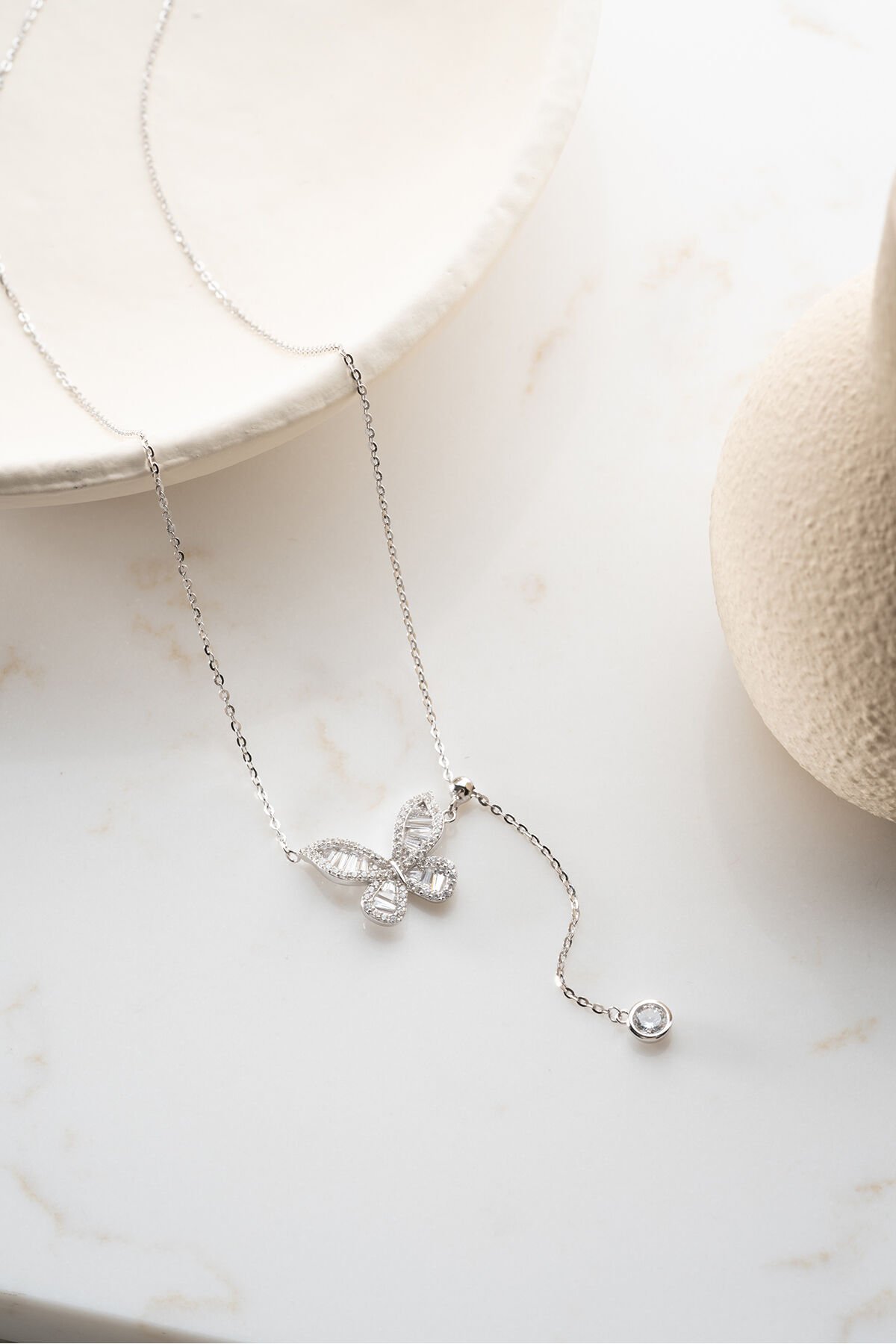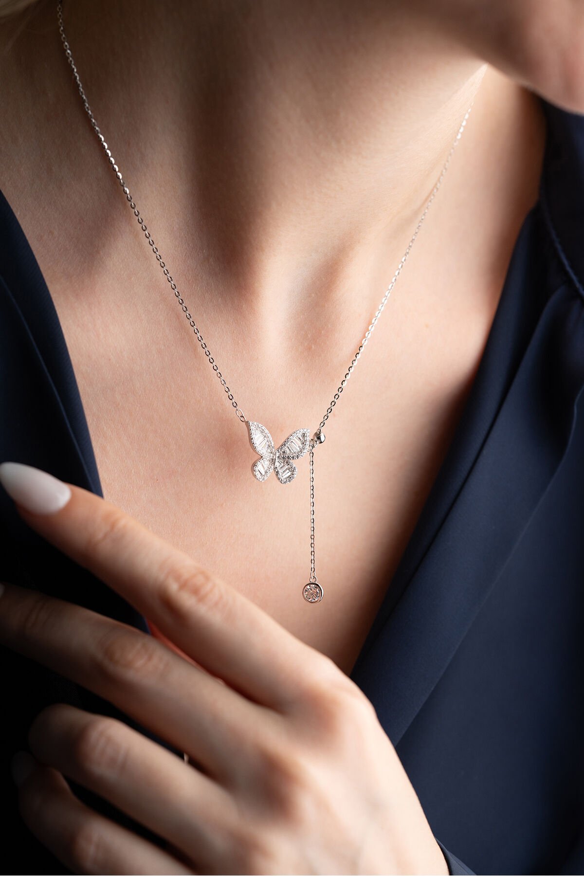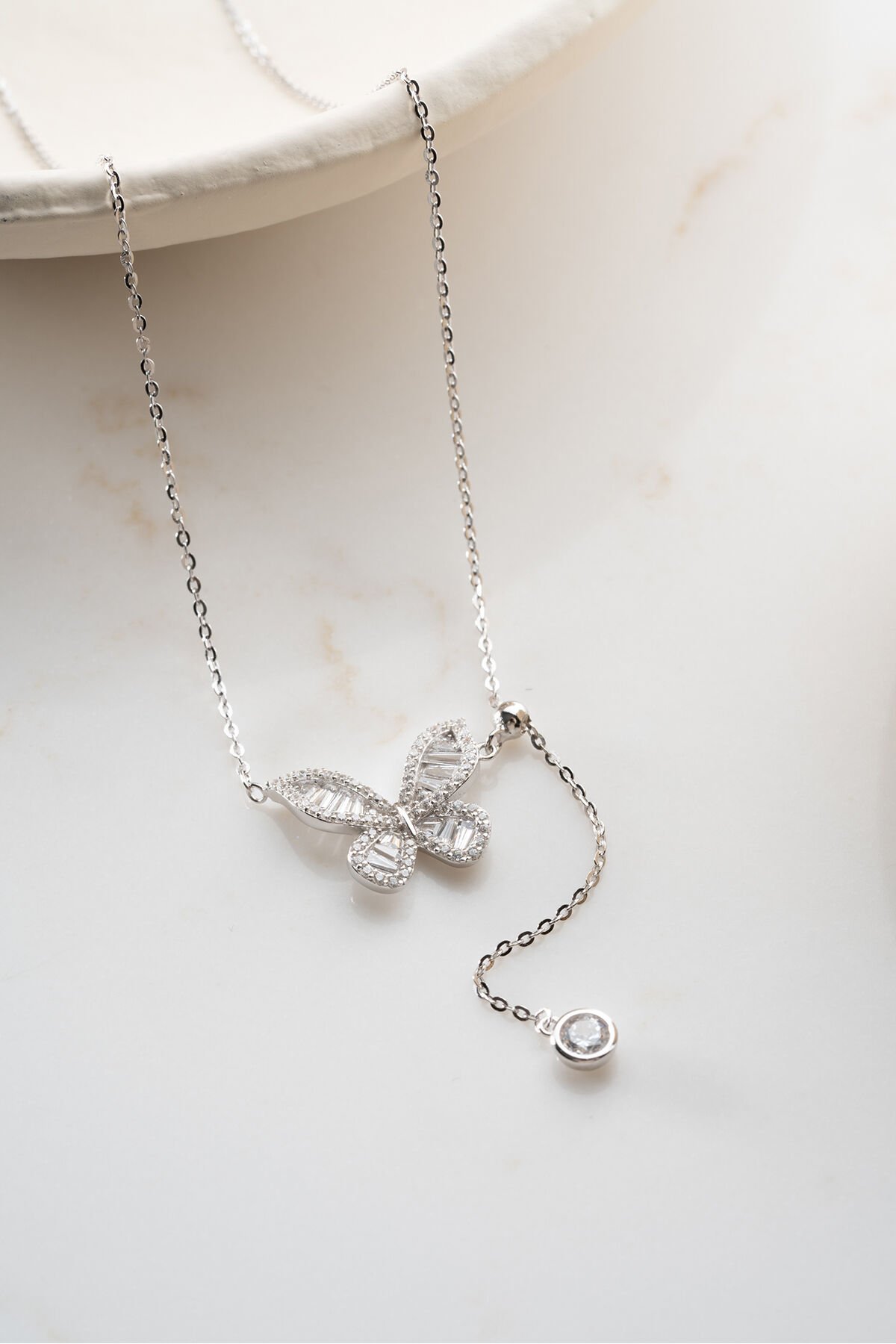 925 Ayar Gümüş Baget Taşlı Kelebek Kolye