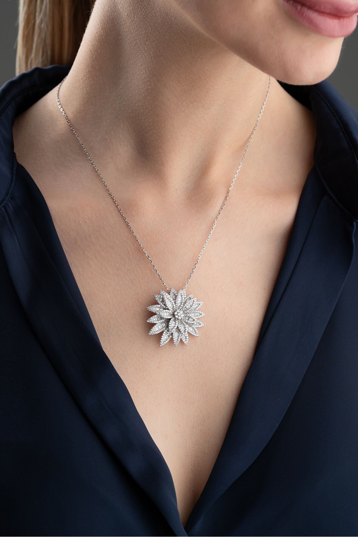 925 Ayar Gümüş Baget Taşlı Lotus Çiçeği Kolye