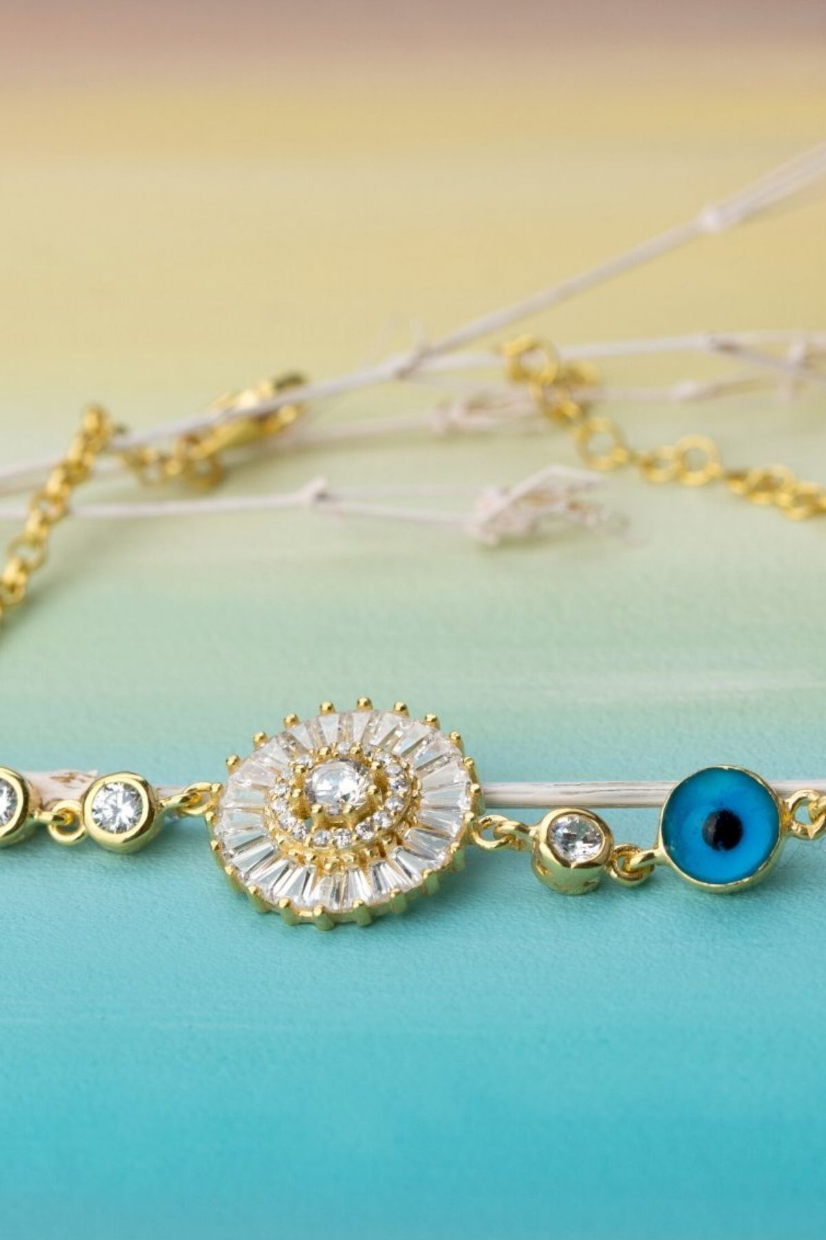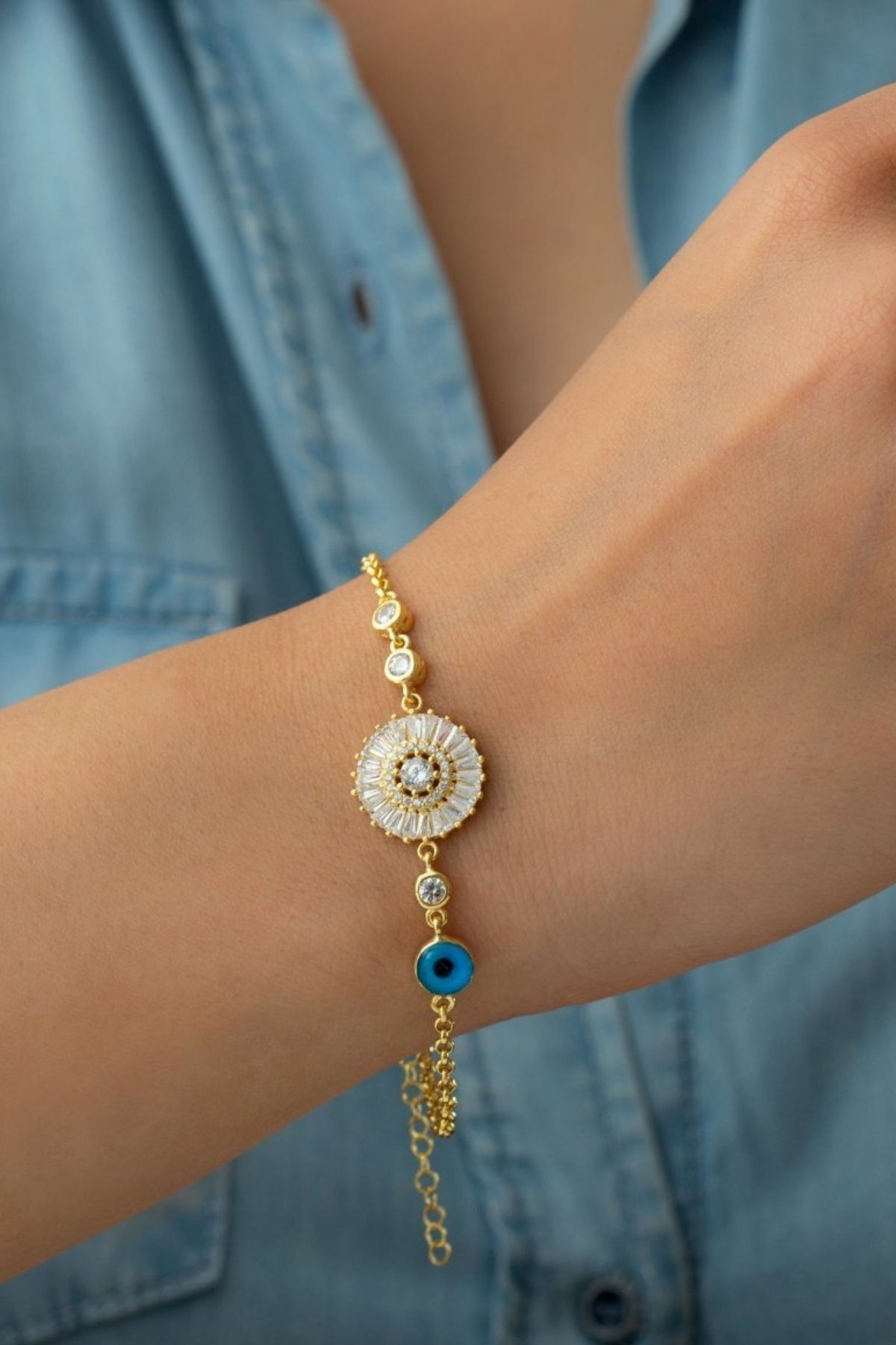 925 Ayar Gümüş Baget Taşlı Nazarlı Bileklik