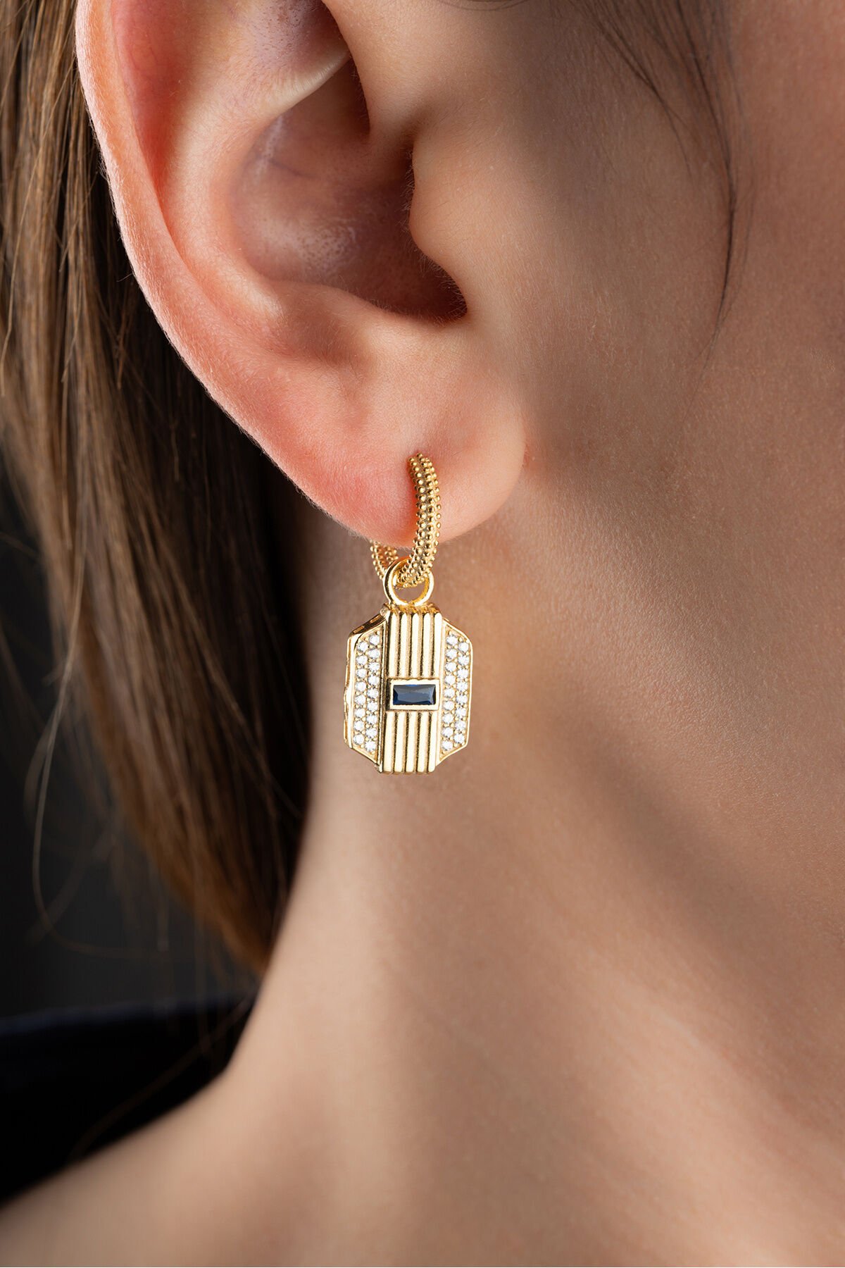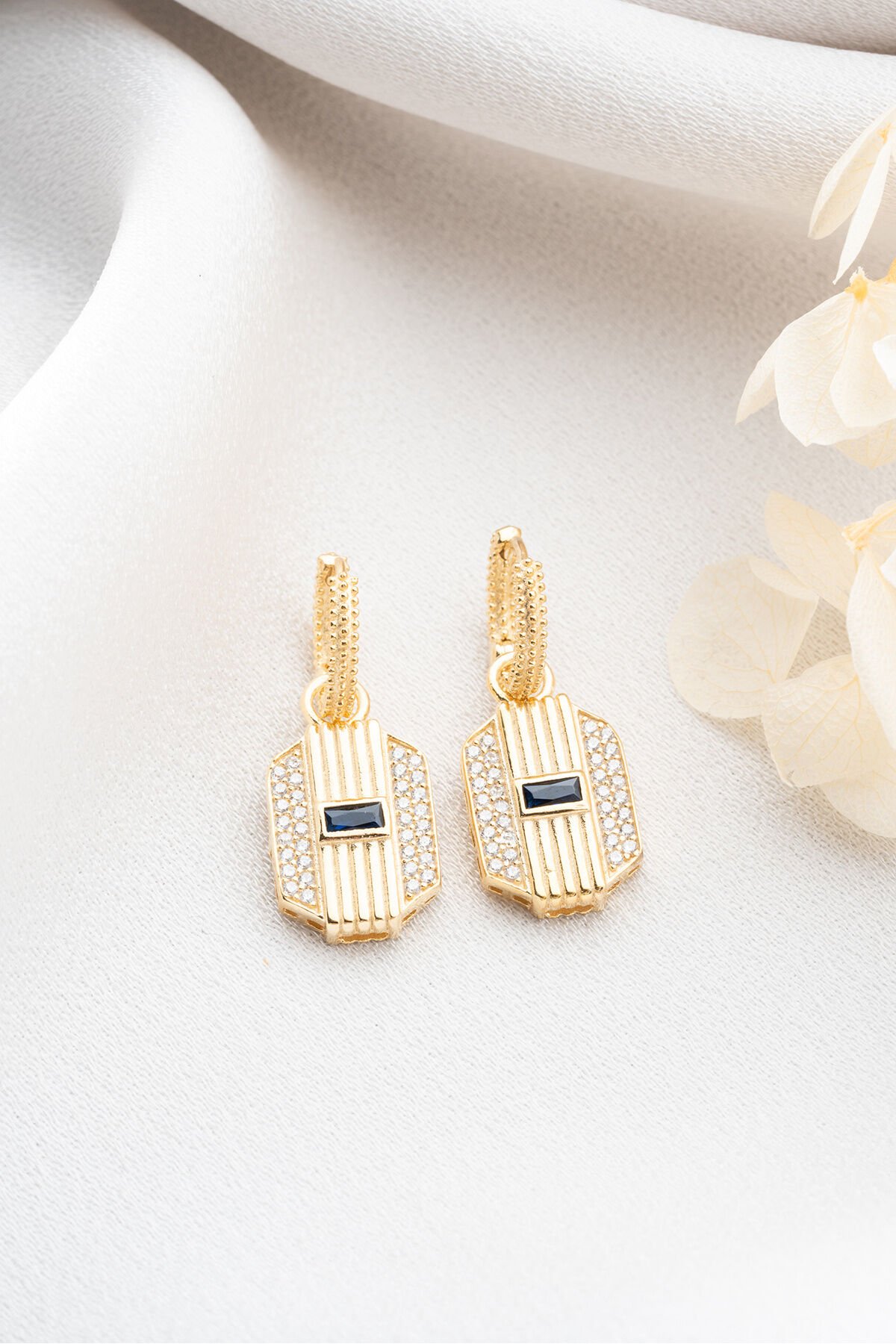 925 Ayar Gümüş Baget Taşlı Sallantılı Küpe