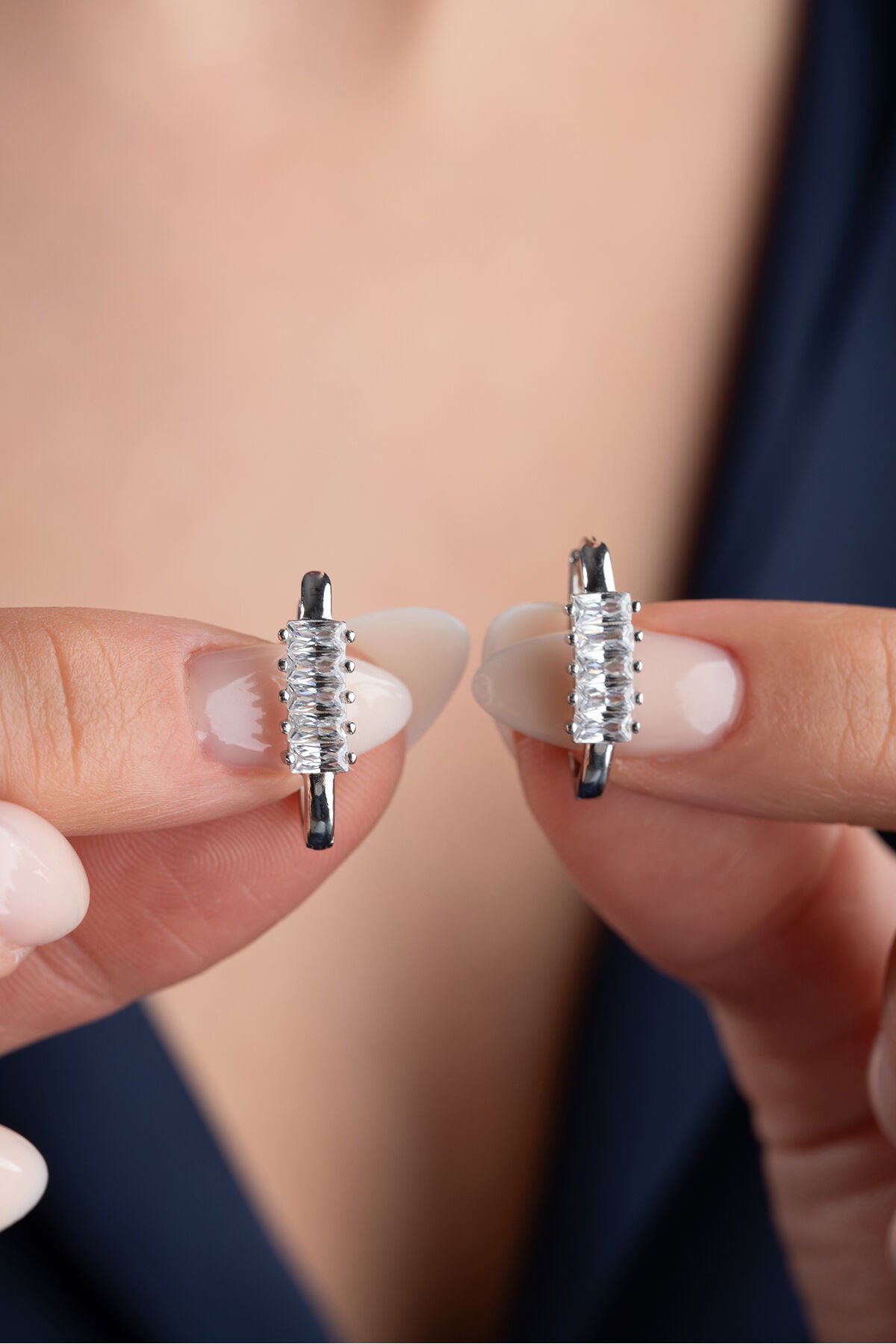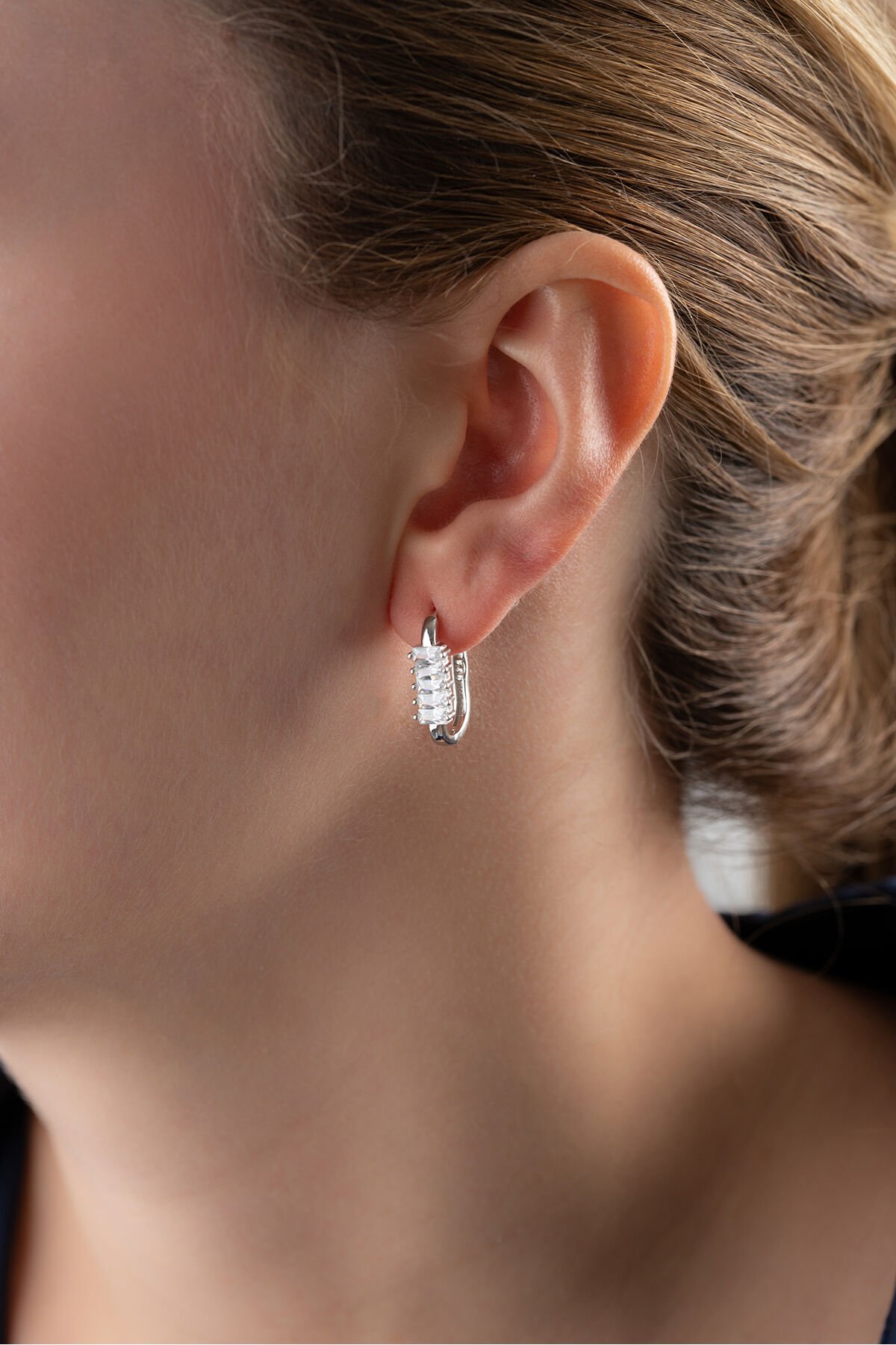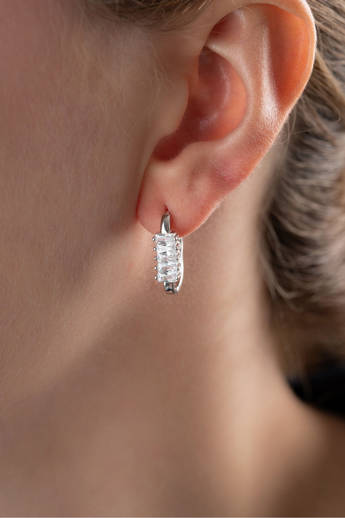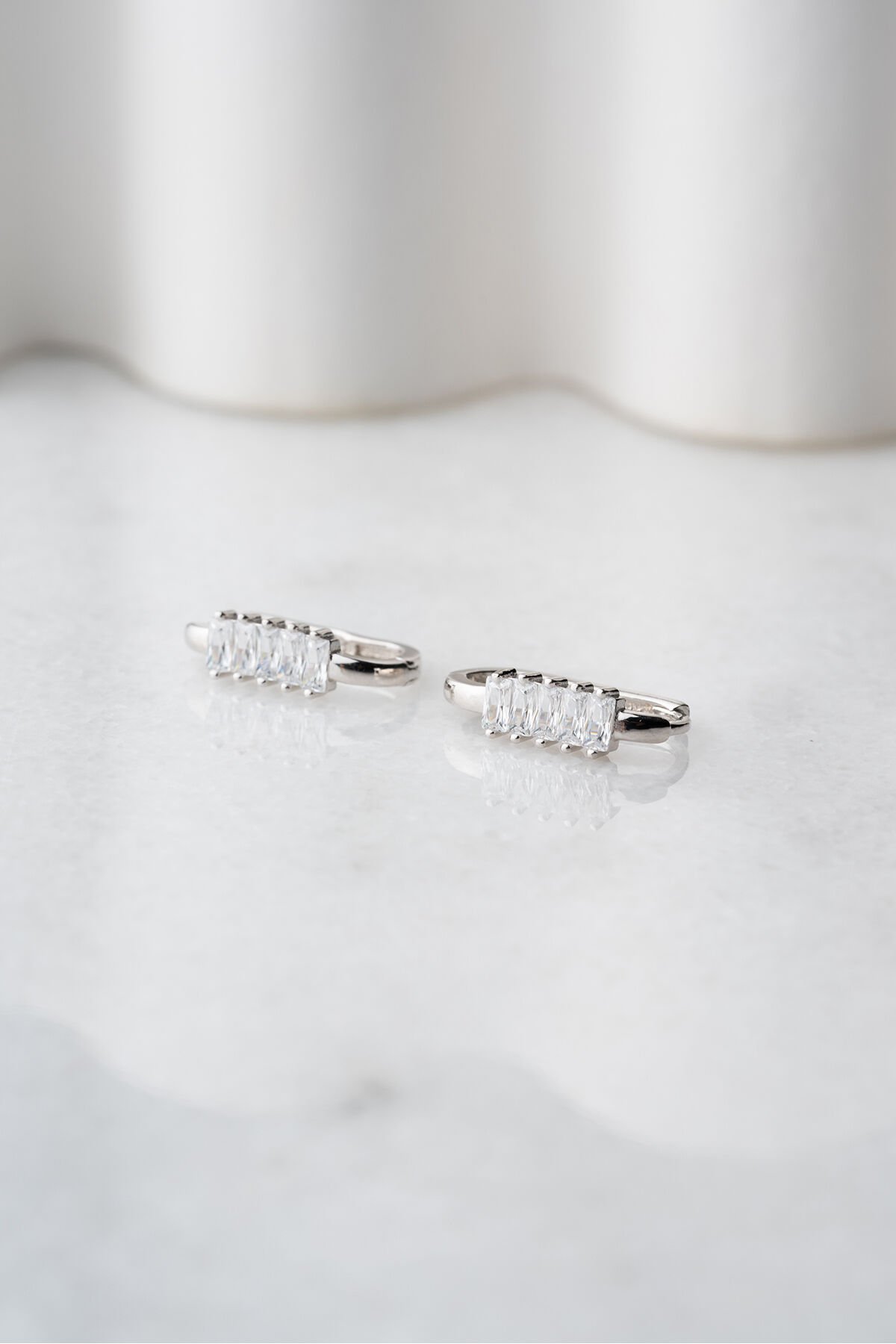 925 Ayar Gümüş Baget Taşlı Trend Küpe