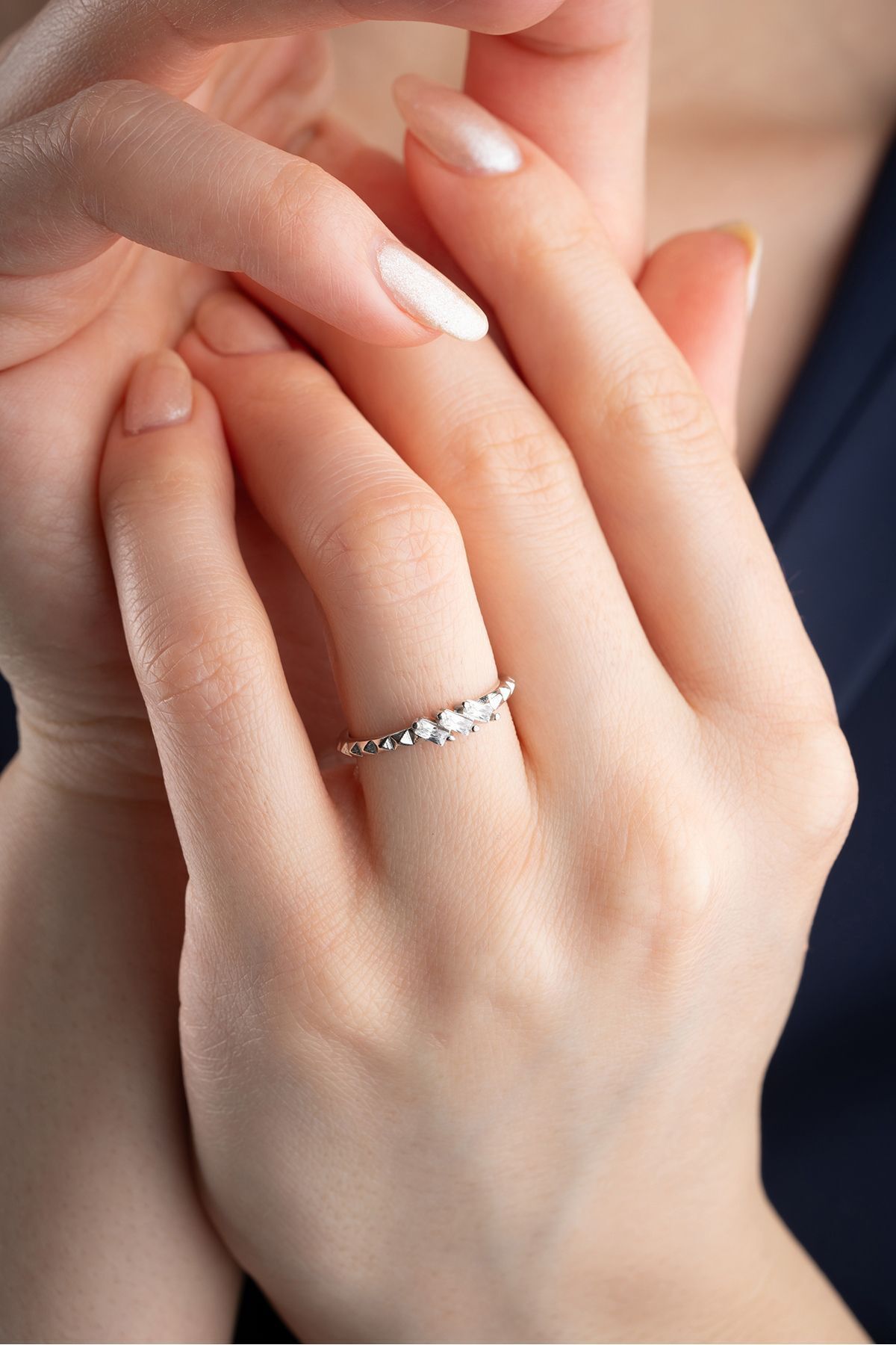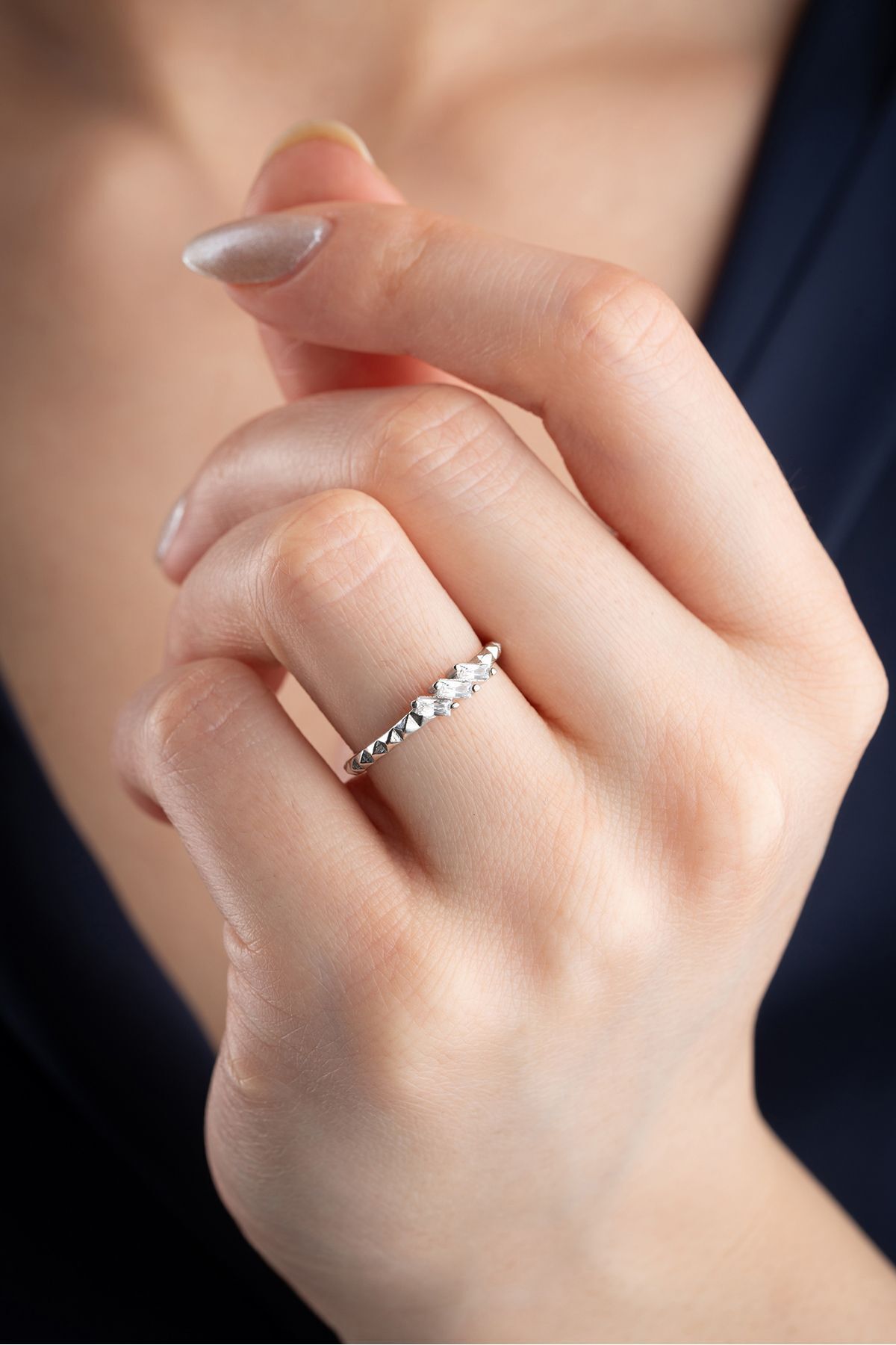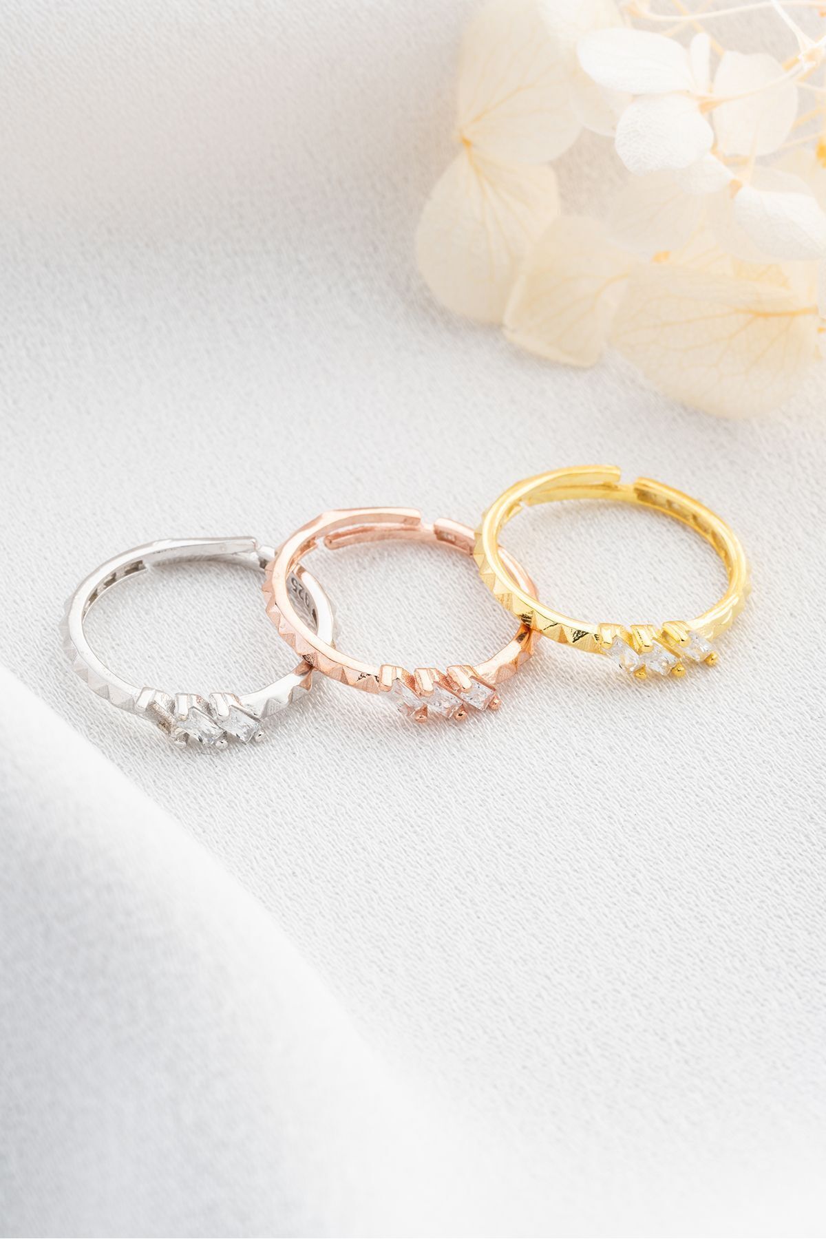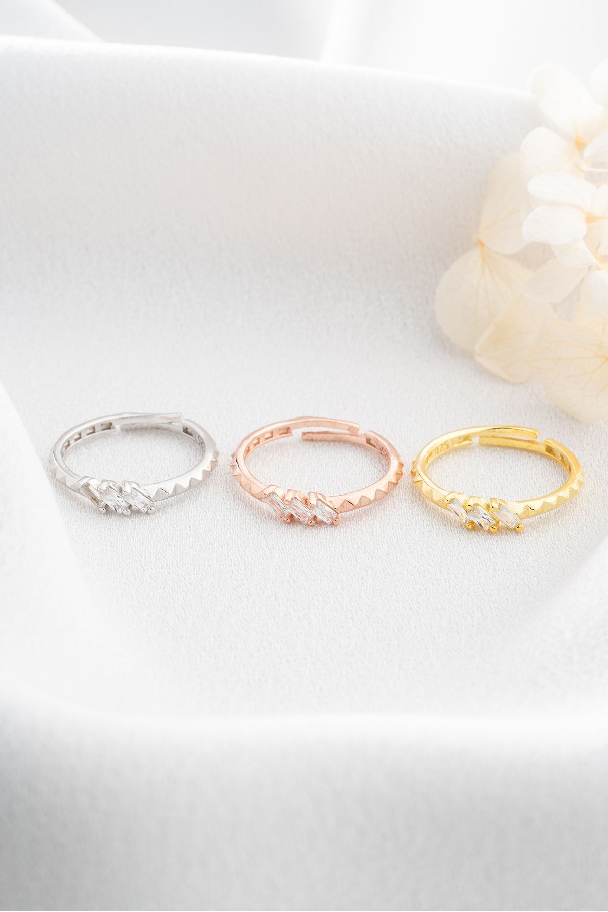 925 Ayar Gümüş Baget Taşlı Trio Ayarlanabilir Yüzük