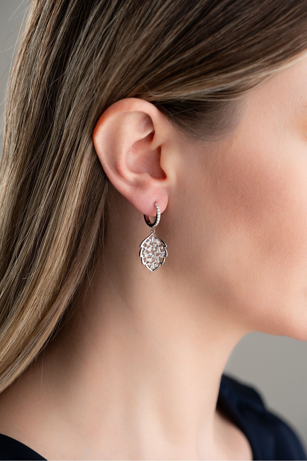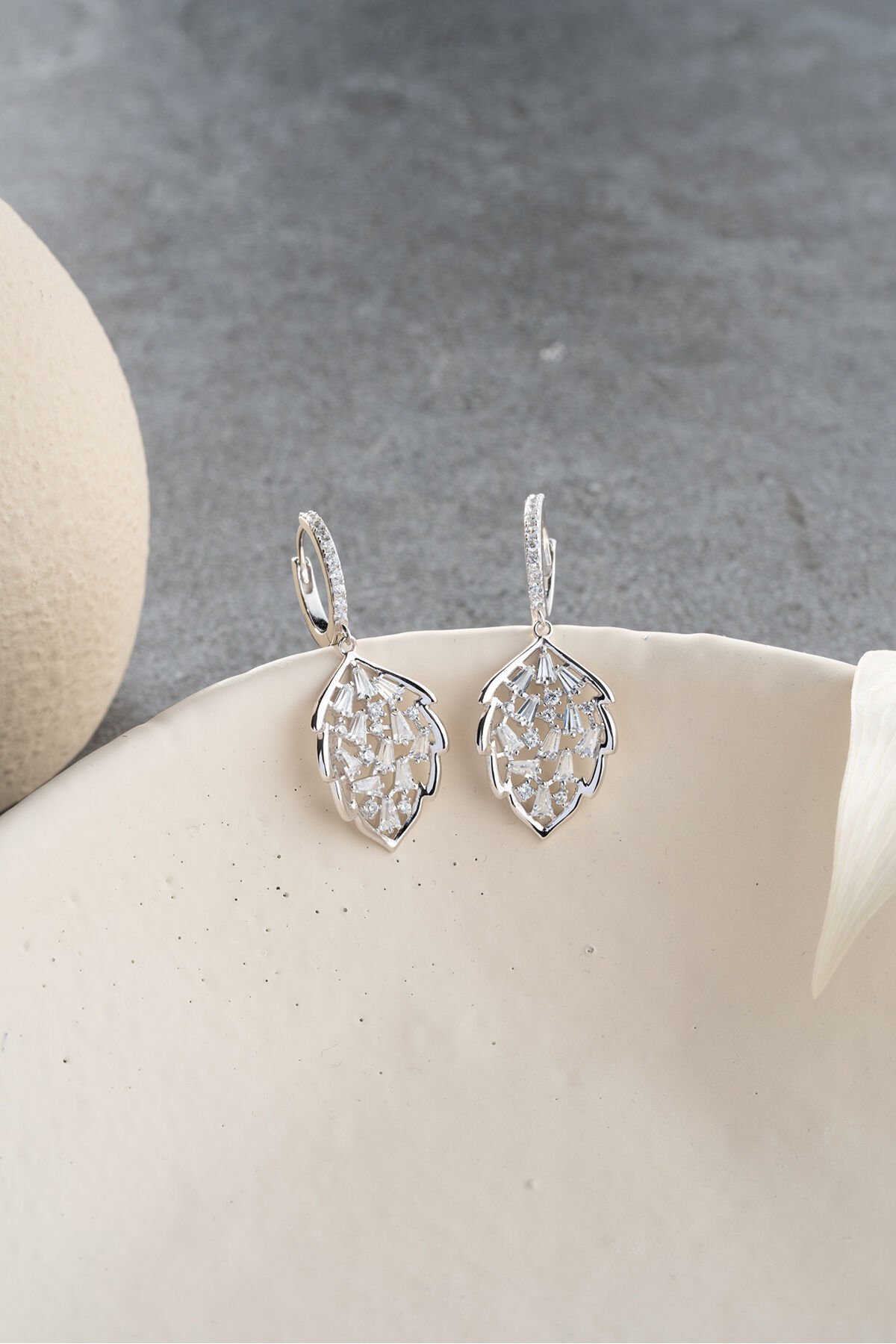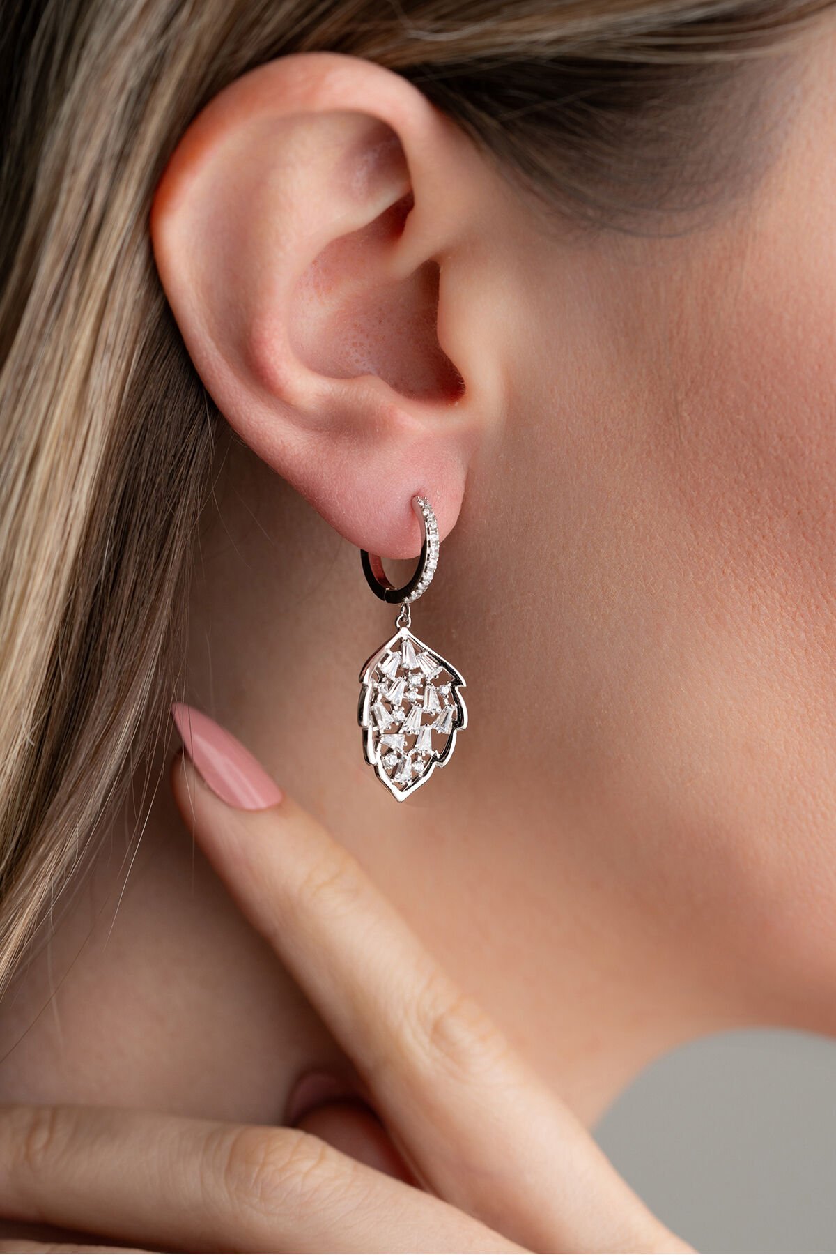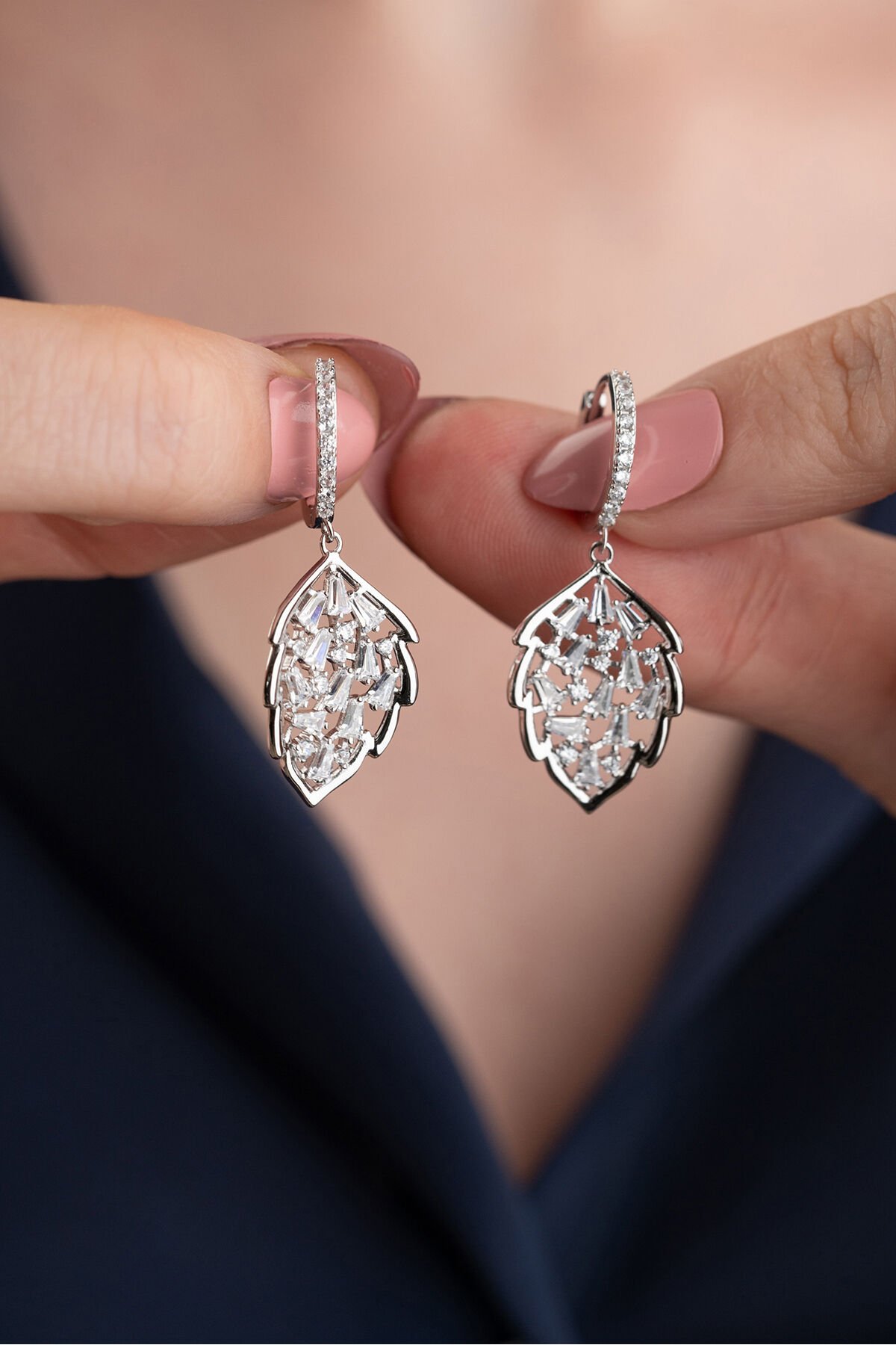 925 Ayar Gümüş Baget Taşlı Yaprak Model Küpe
