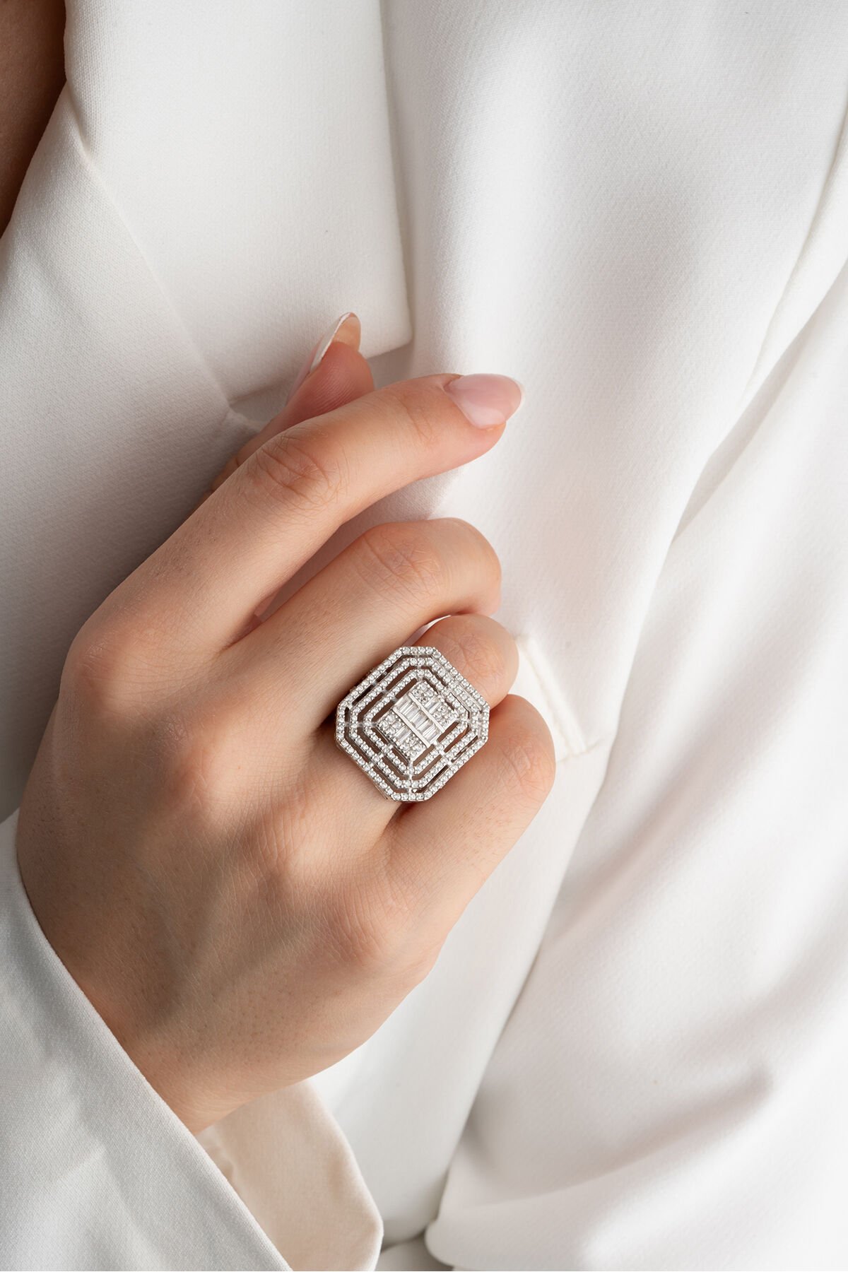925 Ayar Gümüş Baget Taşlı Yüzük
