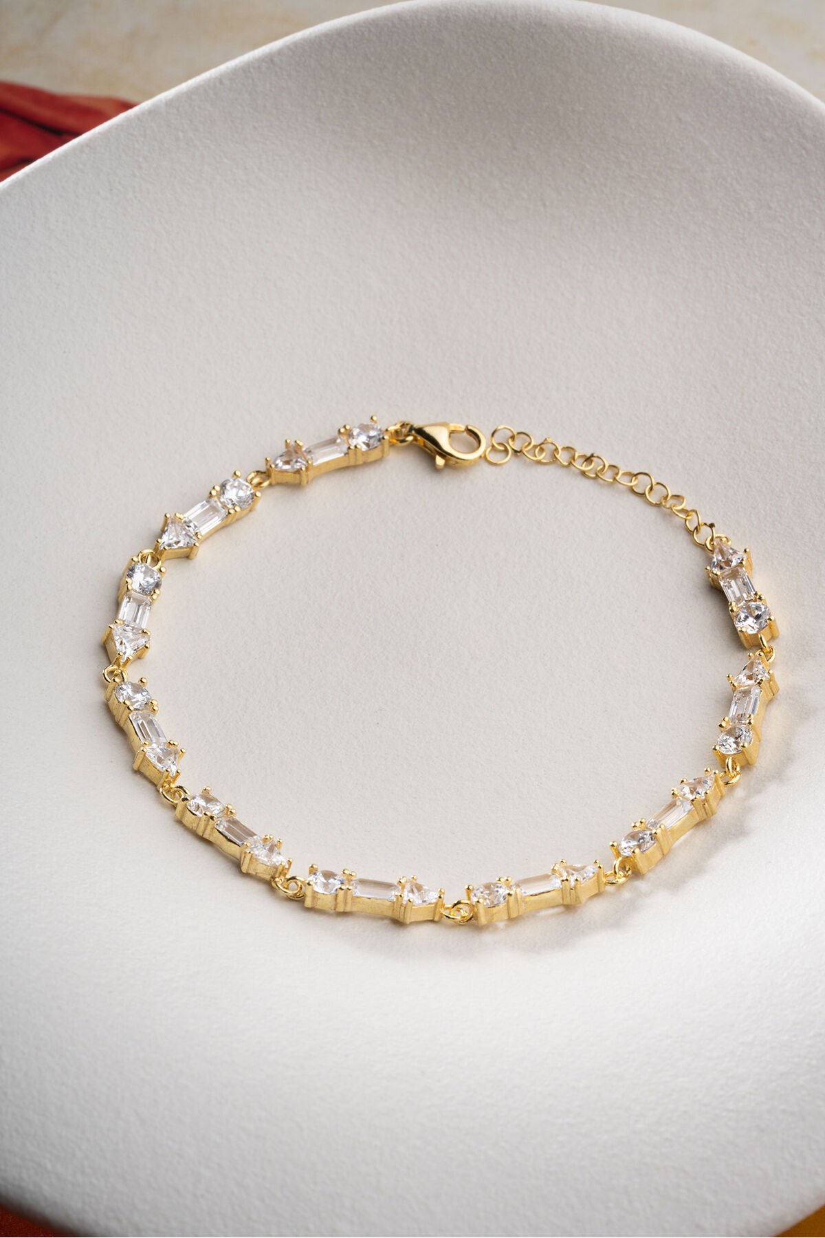 925 Ayar Gümüş Baget Taşlı Zincir Bileklik