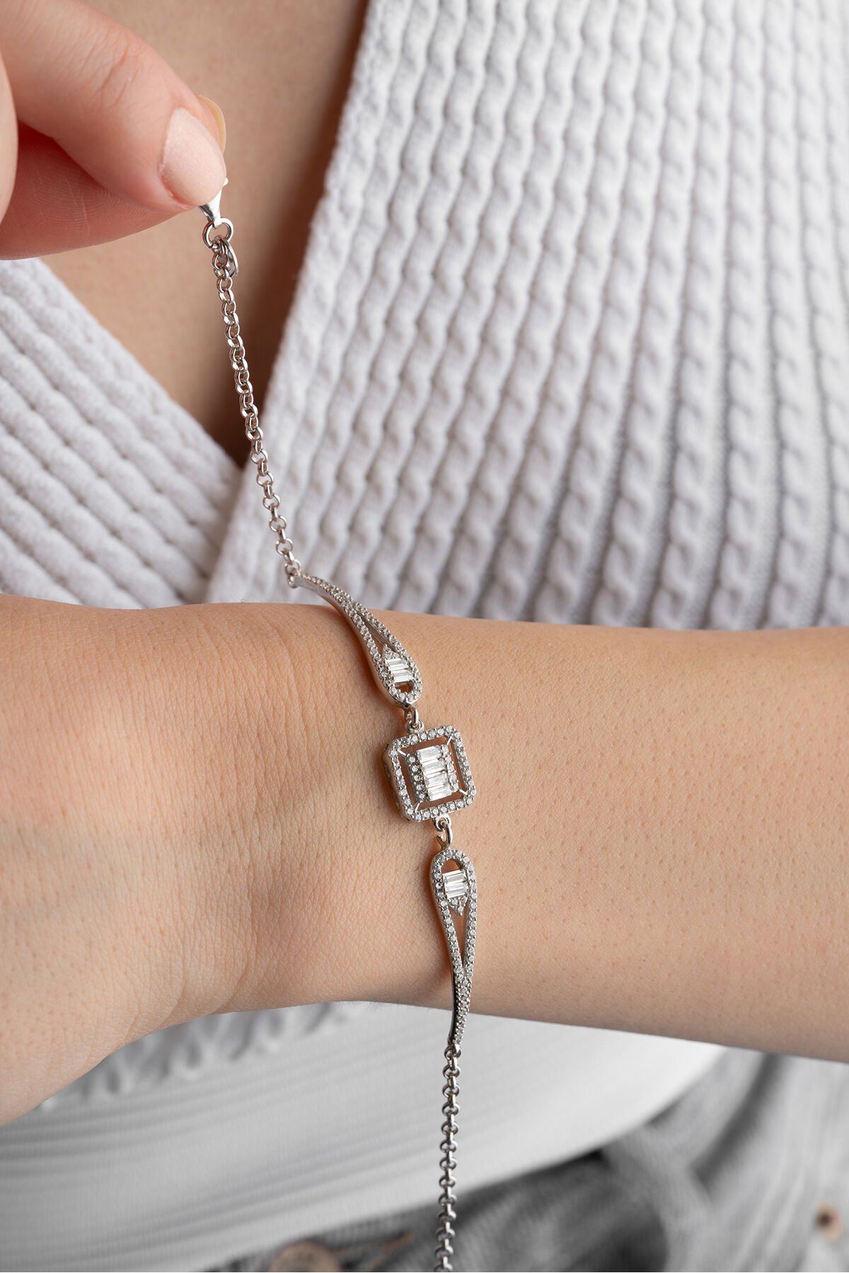 925 Ayar Gümüş bileklik ; Zarif ve ince tasarımı ile her kombine uyum sağlayan bu kolye, günlük kullanım için idealdir.; - Malzeme: 925 ayar gümüş - Boy: 42 cm (idealdir ve rahat bir kullanım sunar) - Özellikler: Hafif ve zarif yapısı ile boynunuza doğal bir ışıltı katar.; 925 Ayar Gümüş Bilekliğimiz Sade ama şık tasarımı ile bileğinize ince bir dokunuş katın.; Günlük ve özel günlerde rahatça kullanabilirsiniz.; - Malzeme: 925 ayar gümüş - Boy: Ayarlanabilir (17 cm - 20 cm arası) - Özellikler: Dayanıklı yapısı ile uzun ömürlü kullanım sağlar, hafif ve rahattır.; Tabii, işte kısa ve anlaşılır bir şekilde 925 ayar gümüş takıların saklama ve kullanma koşulları: 925 Ayar Gümüş Takıların Saklama Koşulları: - Kuru ve serin yerde saklayın: Gümüş takılar nemden uzak tutulmalıdır.; Nem, gümüşün kararmasına neden olabilir.; - Kapalı kutuda muhafaza edin: Takılarınızı hava almayan mücevher kutusunda veya kumaş keselerde saklayarak oksitlenmeyi önleyebilirsiniz.; - Diğer takılarla temas ettirmeyin: Çizilmeleri önlemek için gümüş takılarınızı diğer takılardan ayrı tutun.; 925 Ayar Gümüş Takıların Kullanma Koşulları: - Su ve kimyasallardan uzak tutun: Gümüş takılarınızı parfüm, krem, saç spreyi gibi kimyasallarla temas ettirmeyin ve suya maruz bırakmayın.; - Düzenli temizleyin: Yumuşak bir bezle düzenli olarak temizleyerek parlaklığını koruyun.; - Uyurken ve spor yaparken çıkartın: Takılarınızı zarar görmemesi için uyurken, spor yaparken veya yoğun fiziksel aktivitelerde çıkarın.; Bu basit kurallar, gümüş takılarınızın uzun ömürlü ve parlak kalmasını sağlayacaktır.;