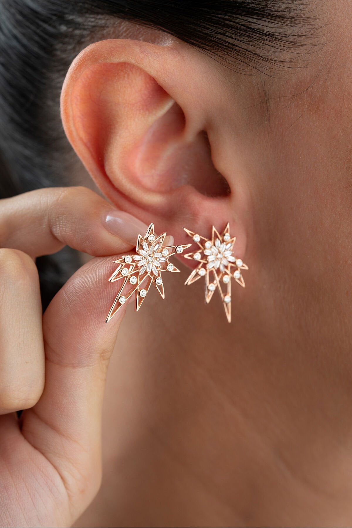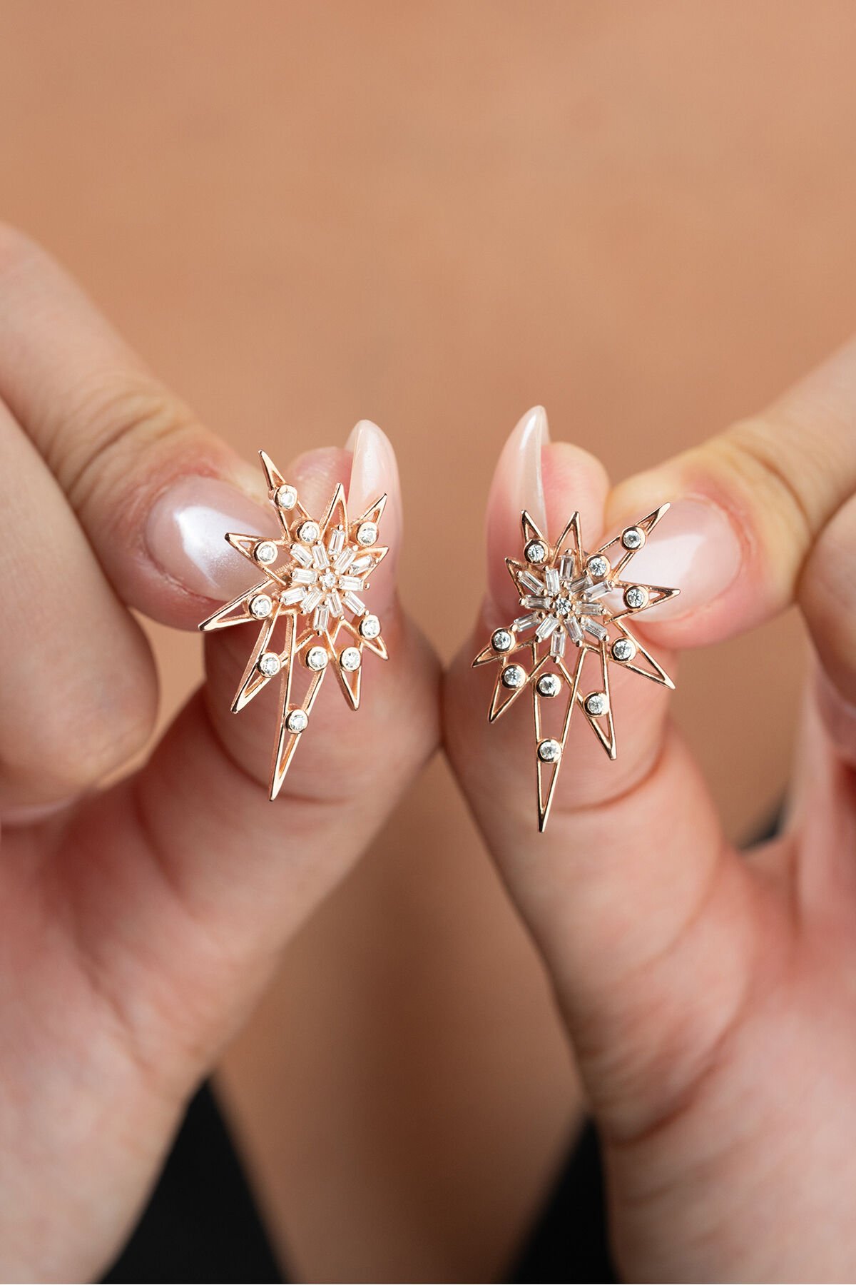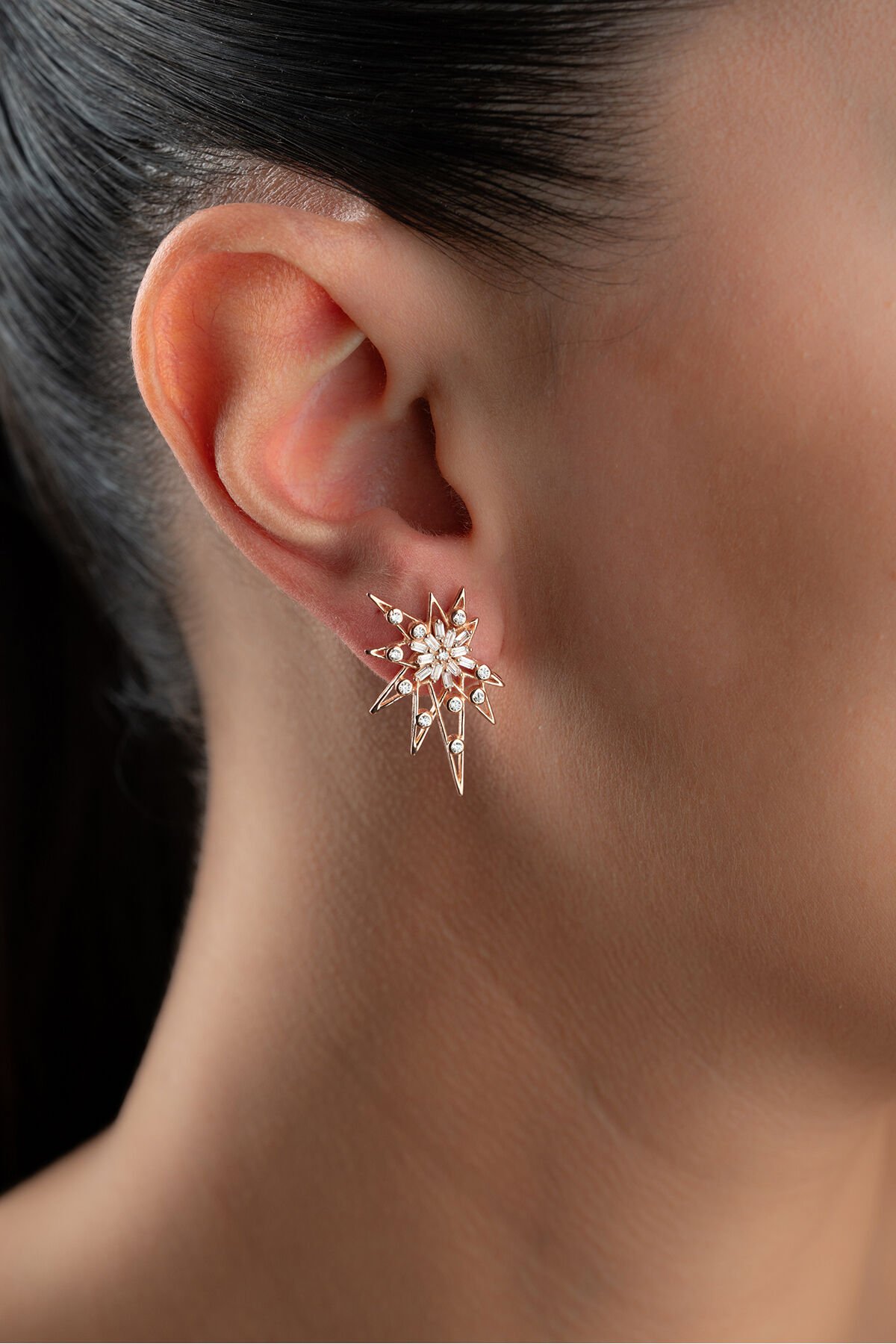 925 Ayar Gümüş Baget Yıldızlı Küpe