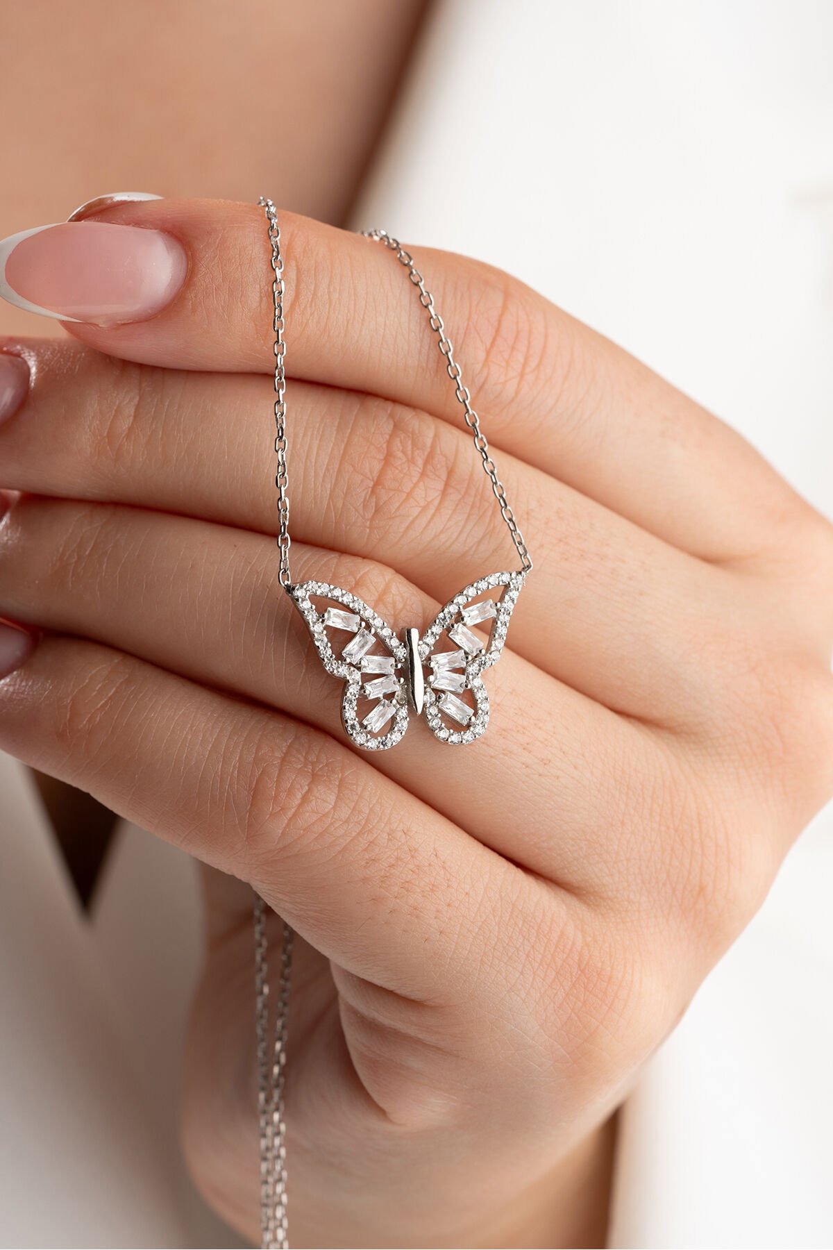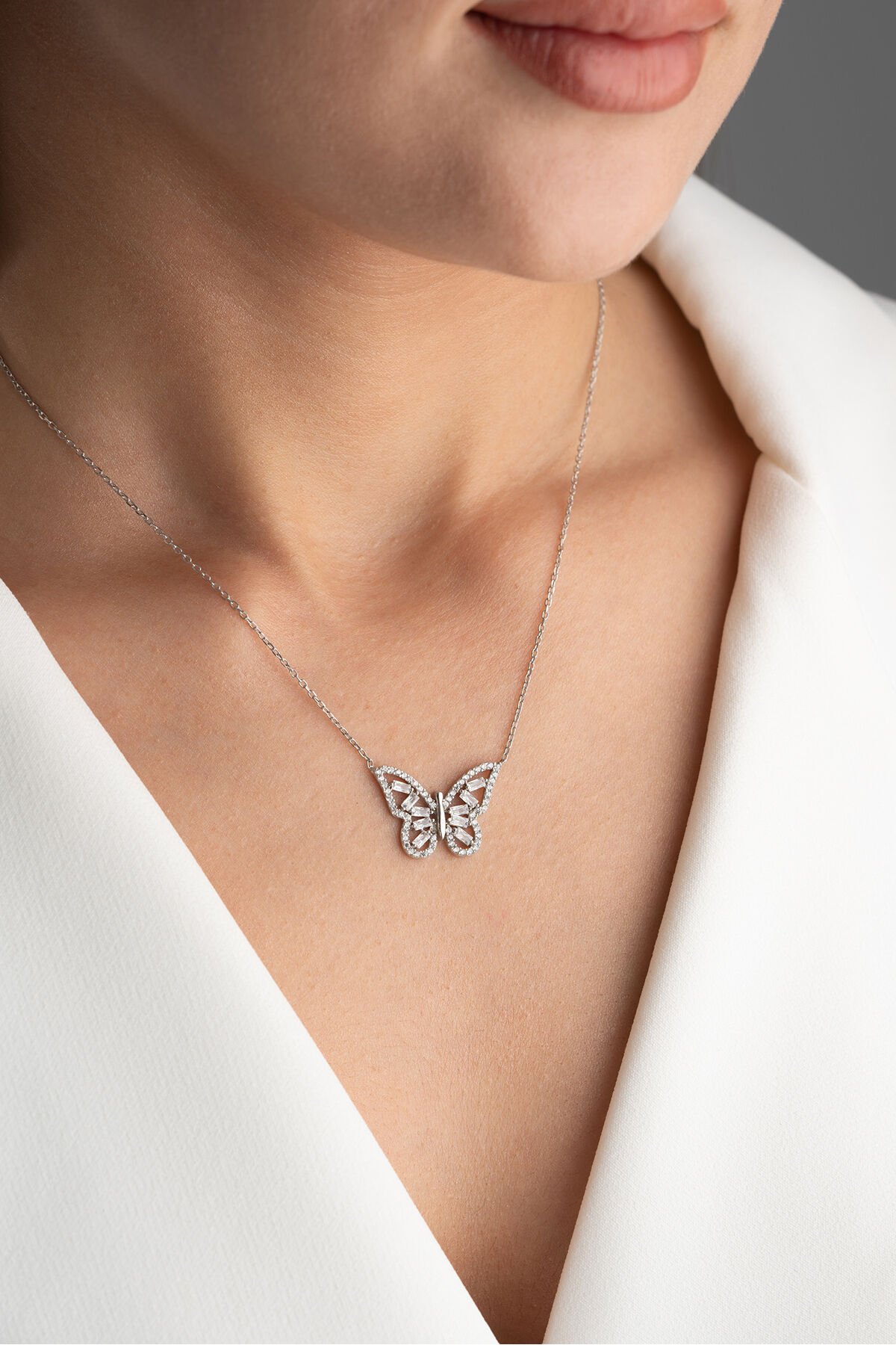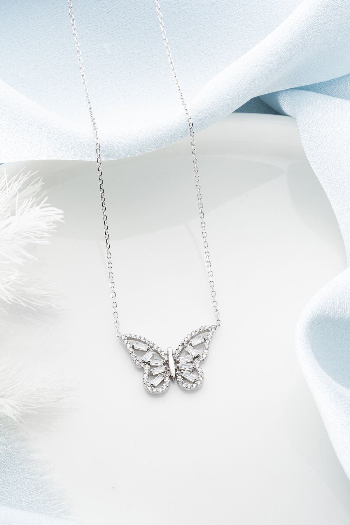 925 Ayar Gümüş Bagetli Kelebek Kolye
