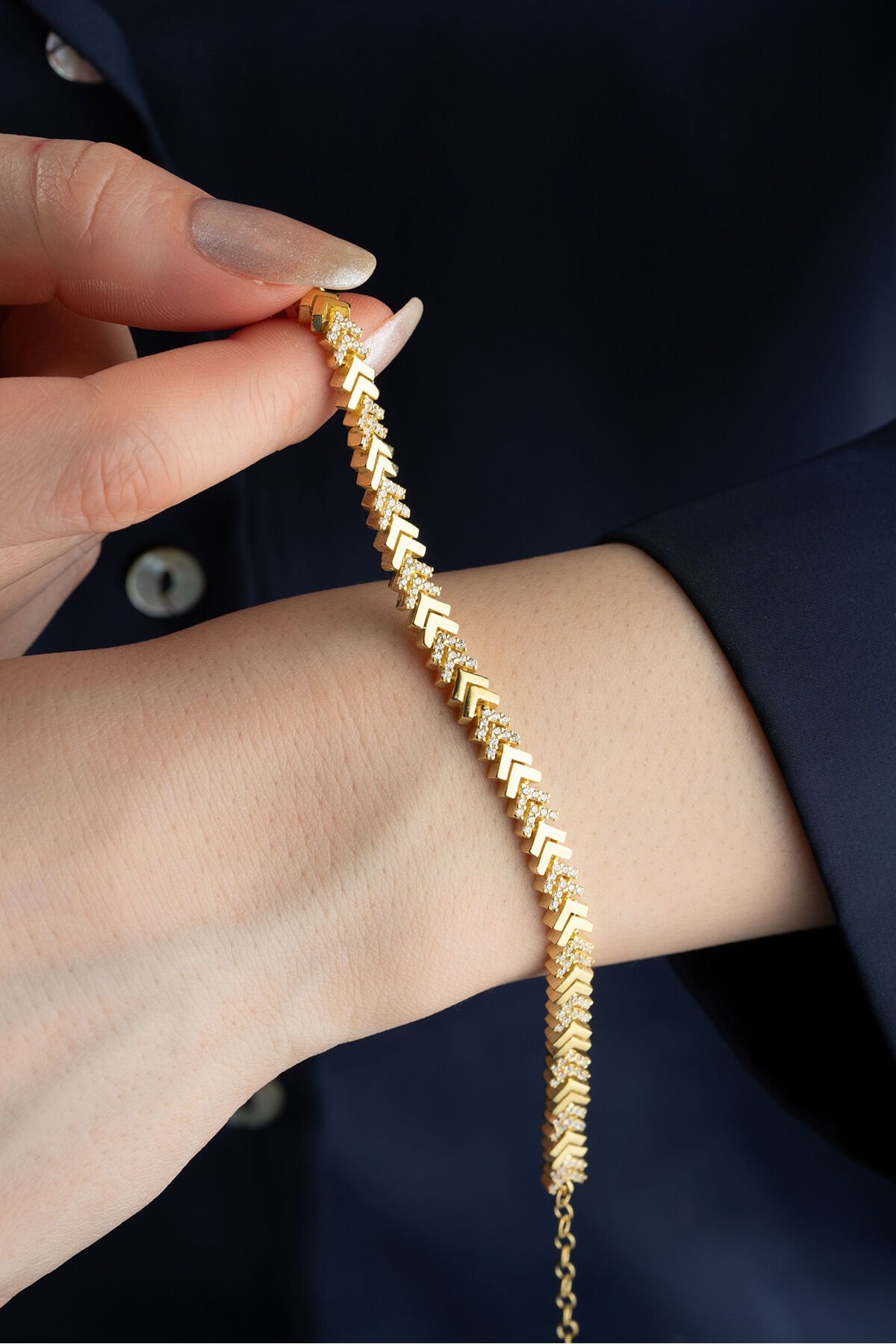 925 Ayar Gümüş Balıksırtı Model Taşlı Bileklik