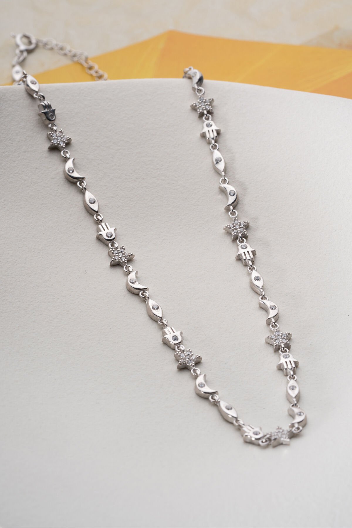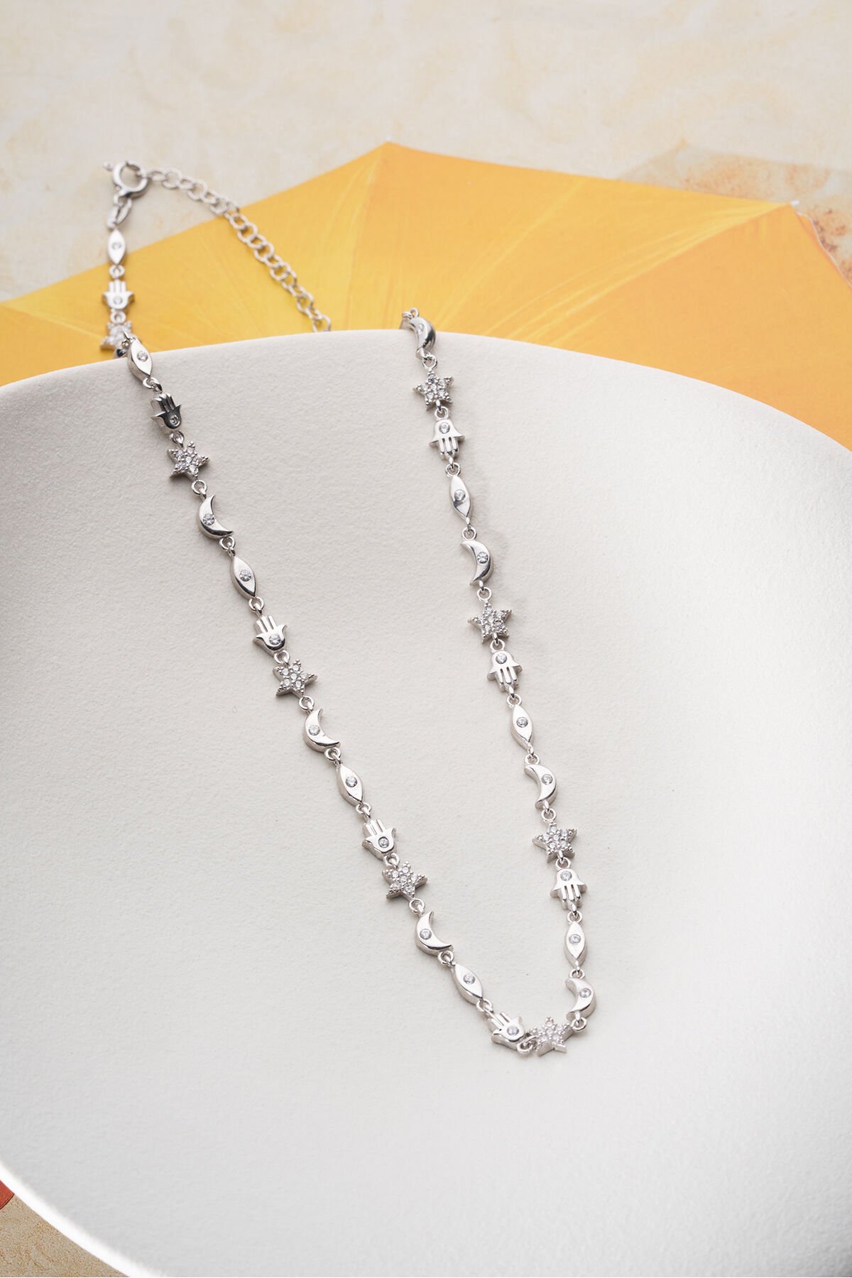 925 Ayar Gümüş bileklik ; Zarif ve ince tasarımı ile her kombine uyum sağlayan bu kolye, günlük kullanım için idealdir.; - Malzeme: 925 ayar gümüş - Boy: 42 cm (idealdir ve rahat bir kullanım sunar) - Özellikler: Hafif ve zarif yapısı ile boynunuza doğal bir ışıltı katar.; 925 Ayar Gümüş Bilekliğimiz Sade ama şık tasarımı ile bileğinize ince bir dokunuş katın.; Günlük ve özel günlerde rahatça kullanabilirsiniz.; - Malzeme: 925 ayar gümüş - Boy: Ayarlanabilir (17 cm - 20 cm arası) - Özellikler: Dayanıklı yapısı ile uzun ömürlü kullanım sağlar, hafif ve rahattır.; Tabii, işte kısa ve anlaşılır bir şekilde 925 ayar gümüş takıların saklama ve kullanma koşulları: 925 Ayar Gümüş Takıların Saklama Koşulları: - Kuru ve serin yerde saklayın: Gümüş takılar nemden uzak tutulmalıdır.; Nem, gümüşün kararmasına neden olabilir.; - Kapalı kutuda muhafaza edin: Takılarınızı hava almayan mücevher kutusunda veya kumaş keselerde saklayarak oksitlenmeyi önleyebilirsiniz.; - Diğer takılarla temas ettirmeyin: Çizilmeleri önlemek için gümüş takılarınızı diğer takılardan ayrı tutun.; 925 Ayar Gümüş Takıların Kullanma Koşulları: - Su ve kimyasallardan uzak tutun: Gümüş takılarınızı parfüm, krem, saç spreyi gibi kimyasallarla temas ettirmeyin ve suya maruz bırakmayın.; - Düzenli temizleyin: Yumuşak bir bezle düzenli olarak temizleyerek parlaklığını koruyun.; - Uyurken ve spor yaparken çıkartın: Takılarınızı zarar görmemesi için uyurken, spor yaparken veya yoğun fiziksel aktivitelerde çıkarın.; Bu basit kurallar, gümüş takılarınızın uzun ömürlü ve parlak kalmasını sağlayacaktır.;