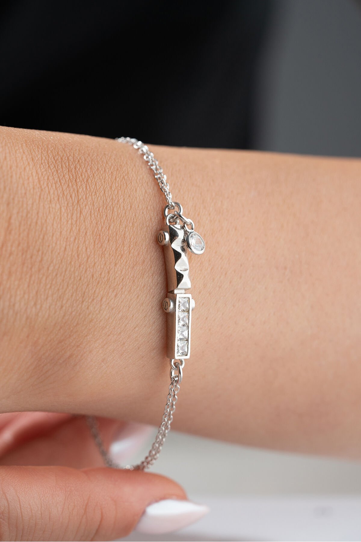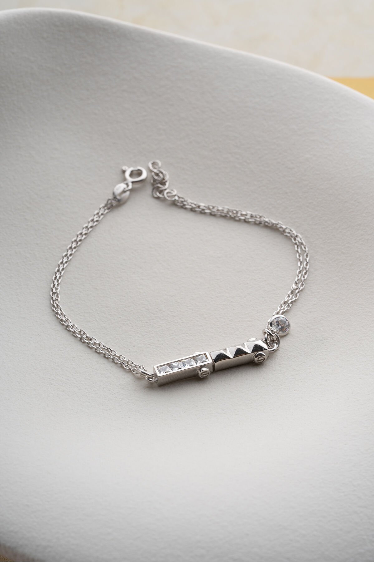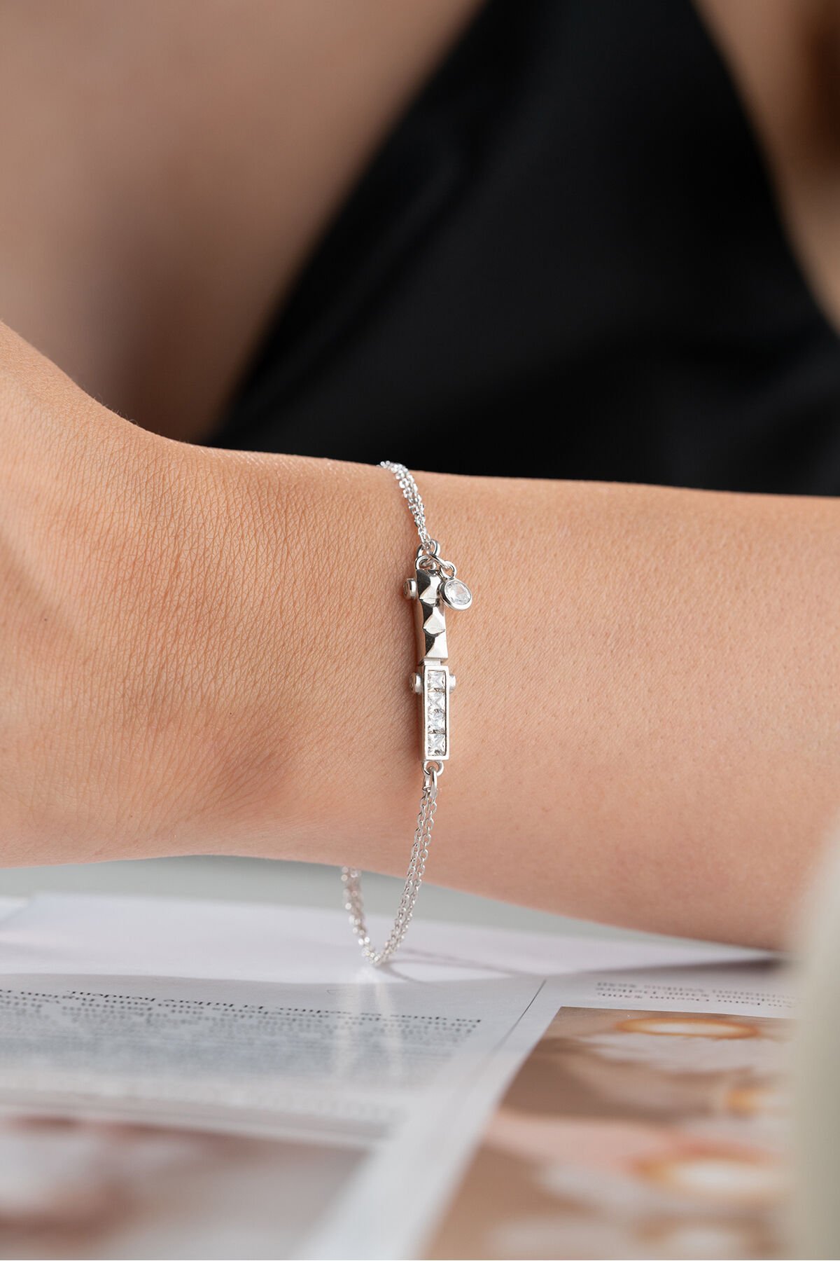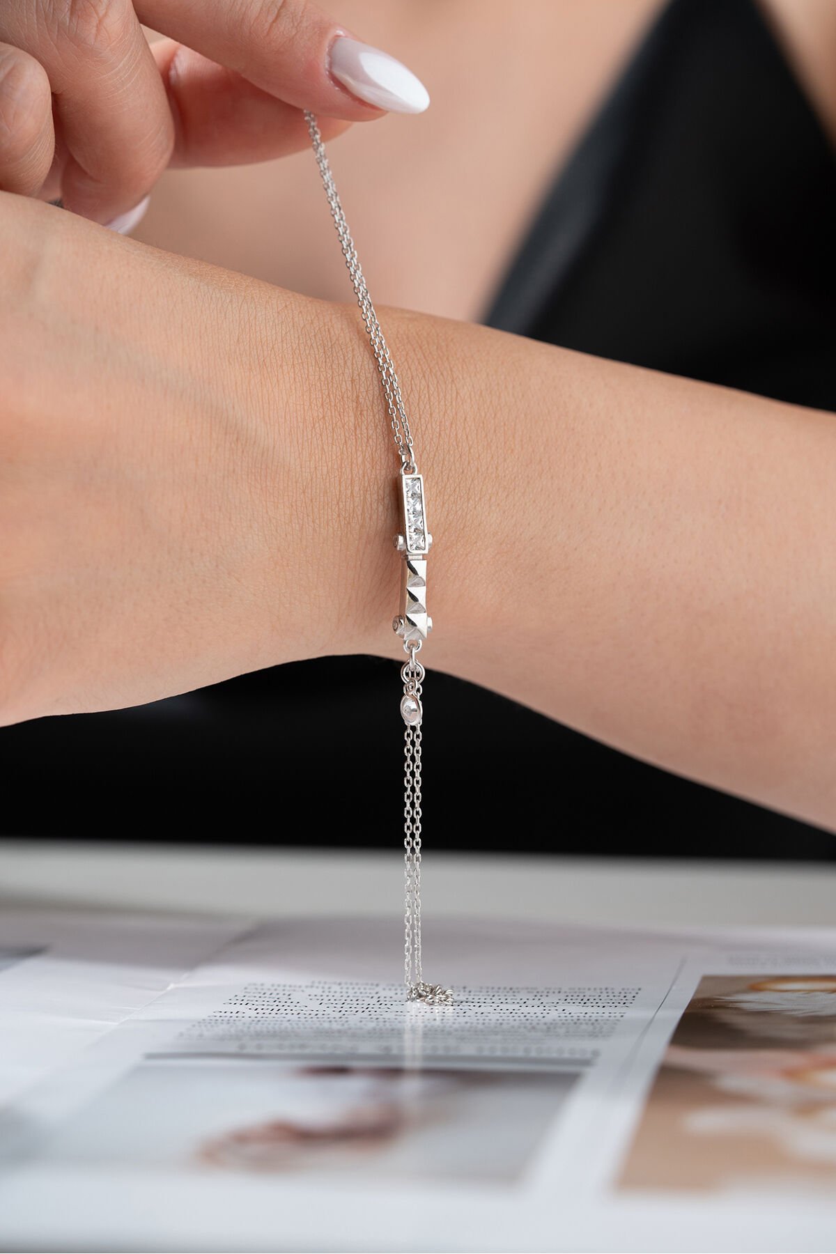 925 Ayar Gümüş Beyaz Baget Taşlı Bileklik