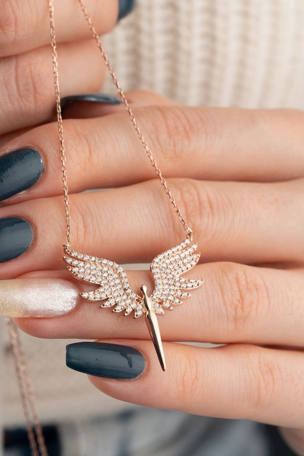 925 Ayar Gümüş Beyaz Kanat Melek Kolye