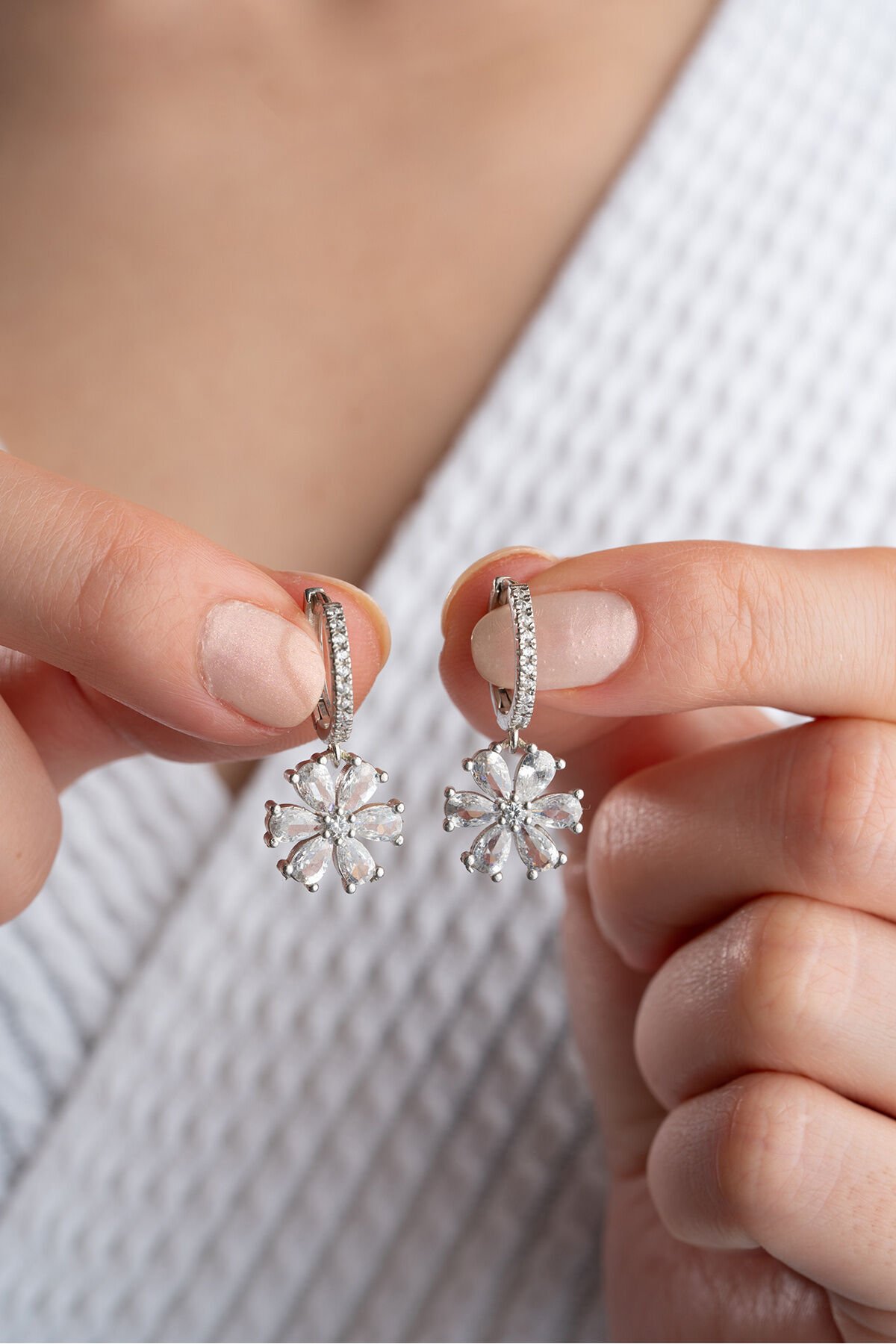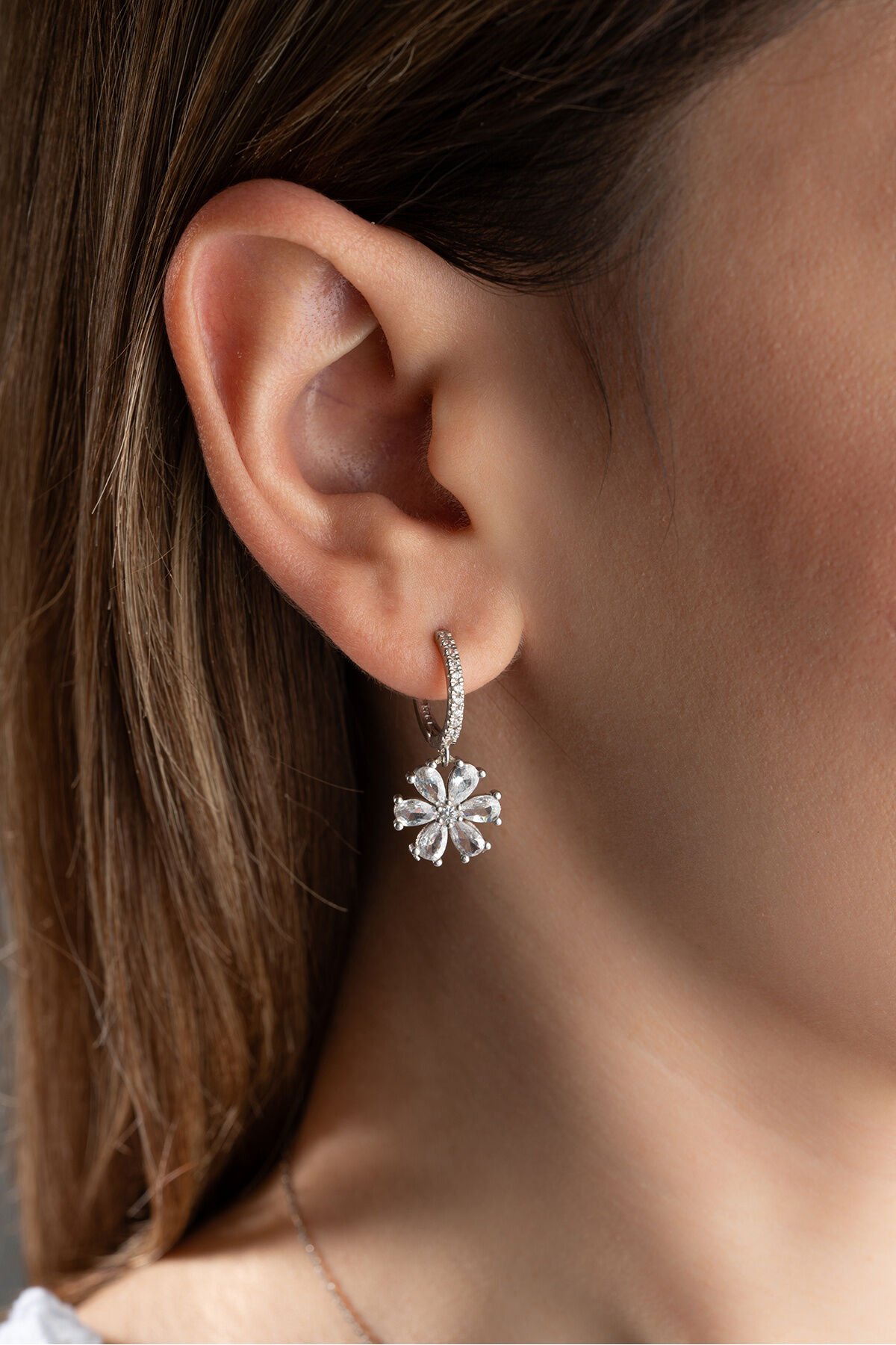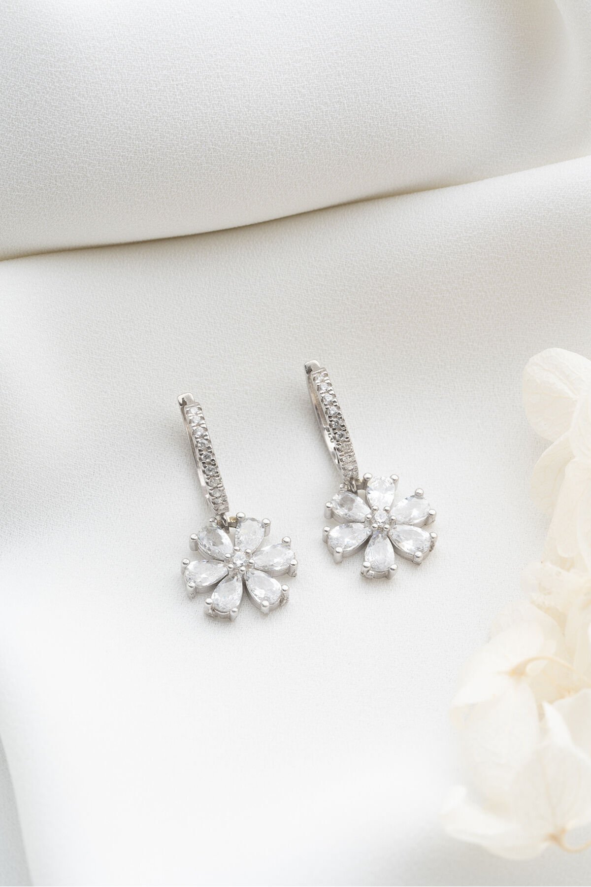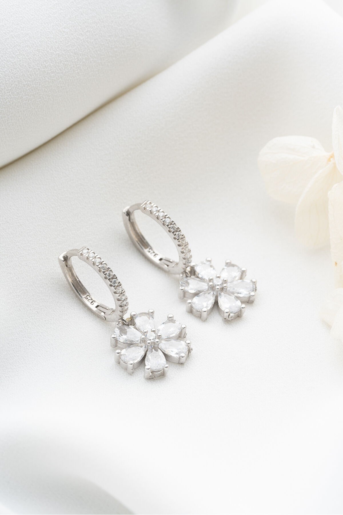 925 Ayar Gümüş Beyaz Lotus Çiçeği Küpe