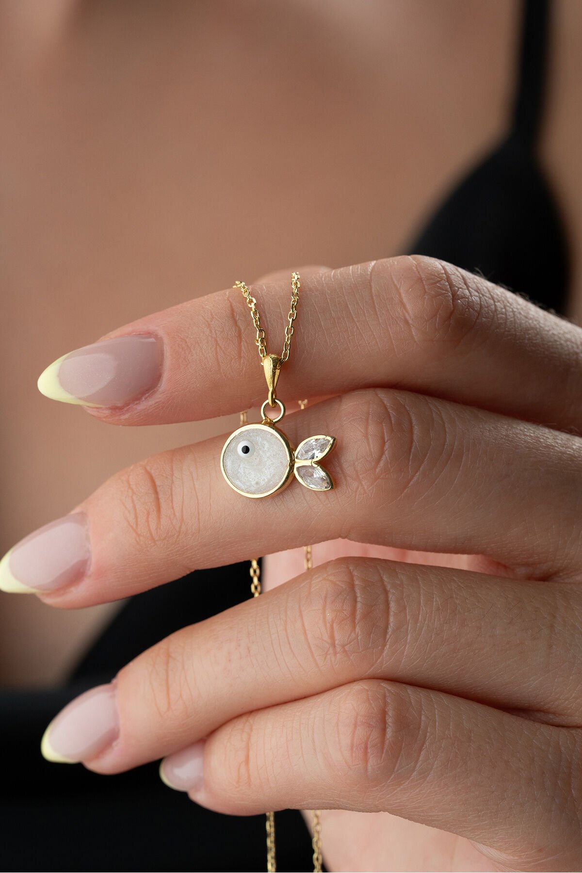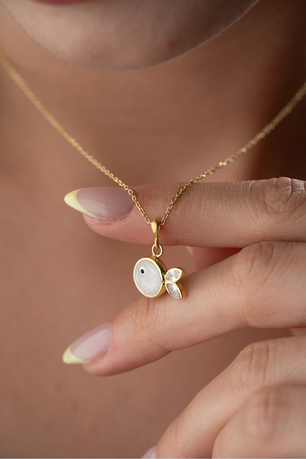 925 Ayar Gümüş Beyaz Mineli Balık Kolye