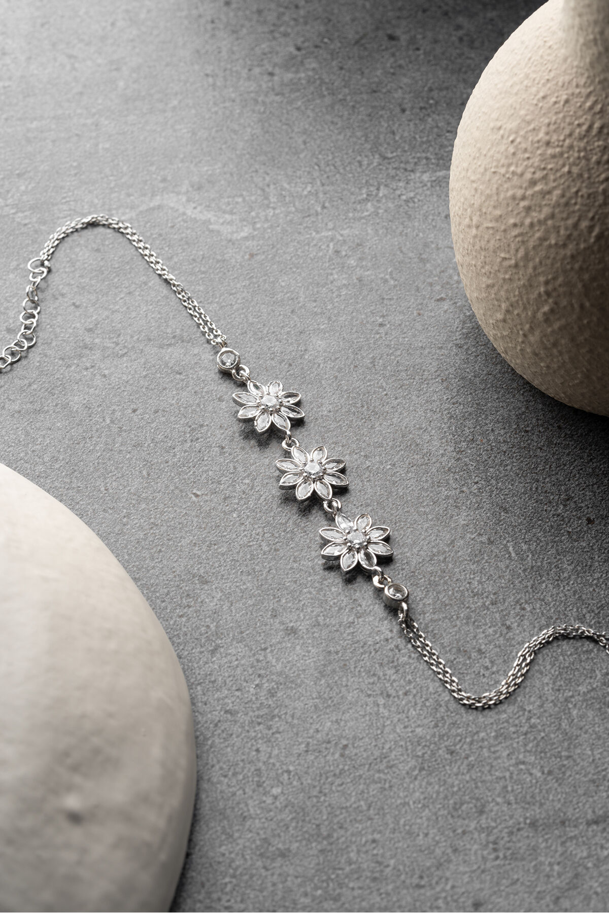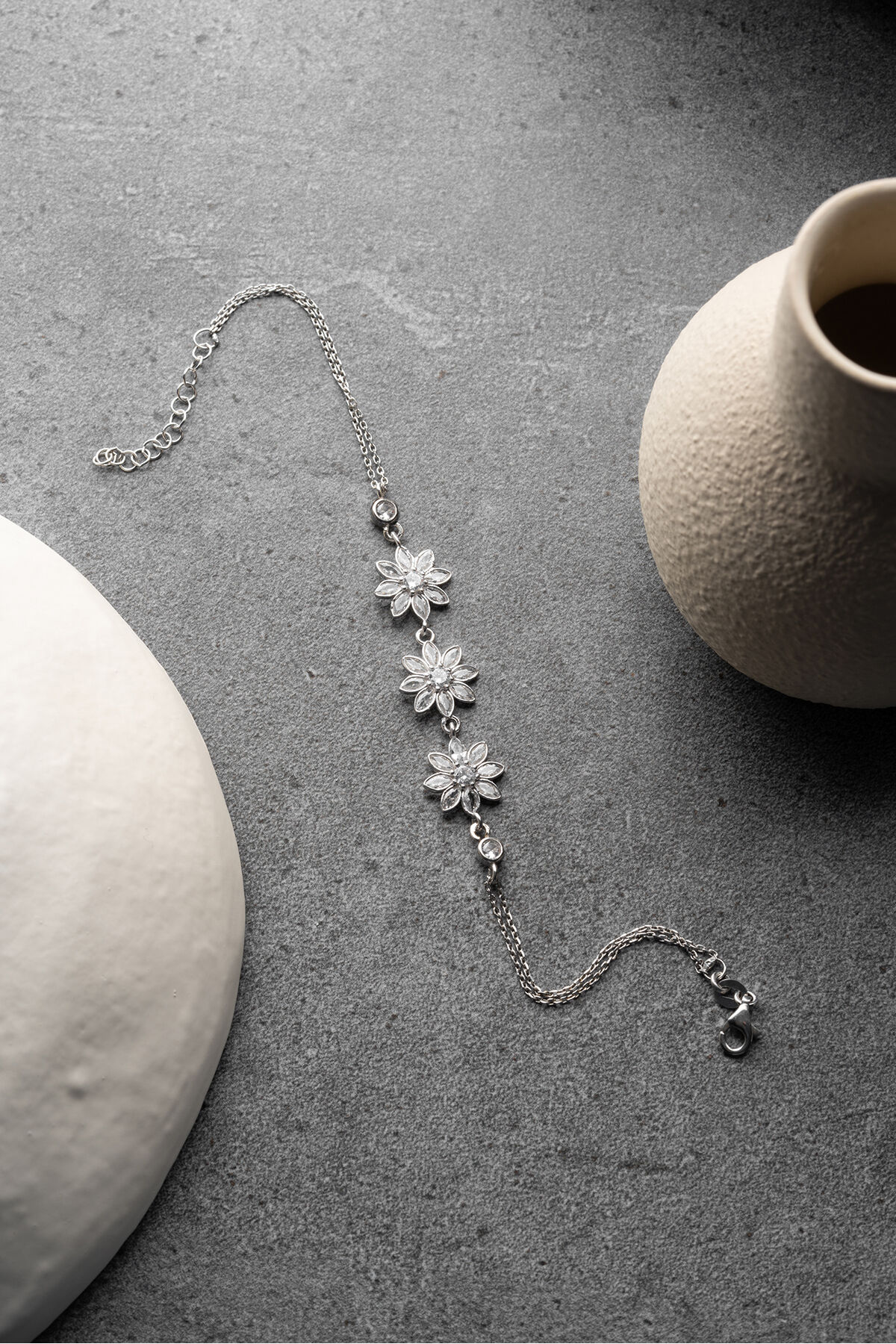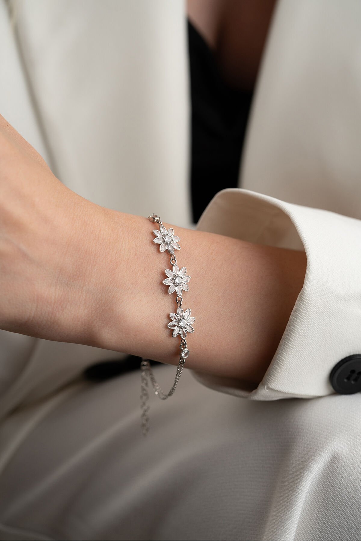 925 Ayar Gümüş Beyaz Taşlı 3'lü Lotus Bileklik