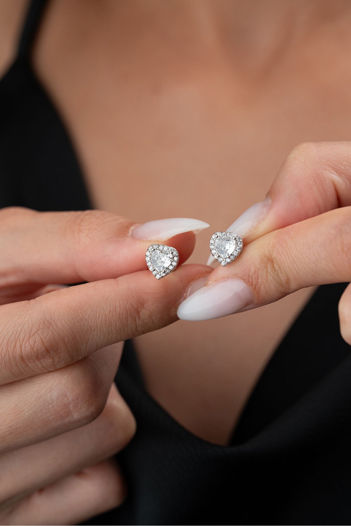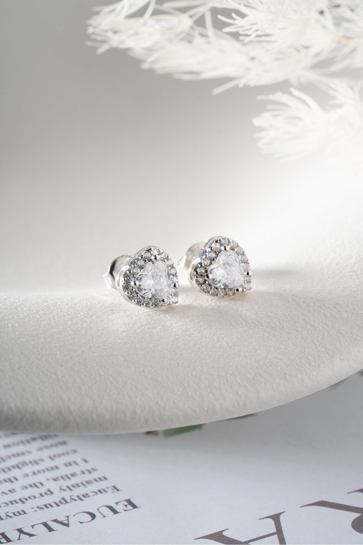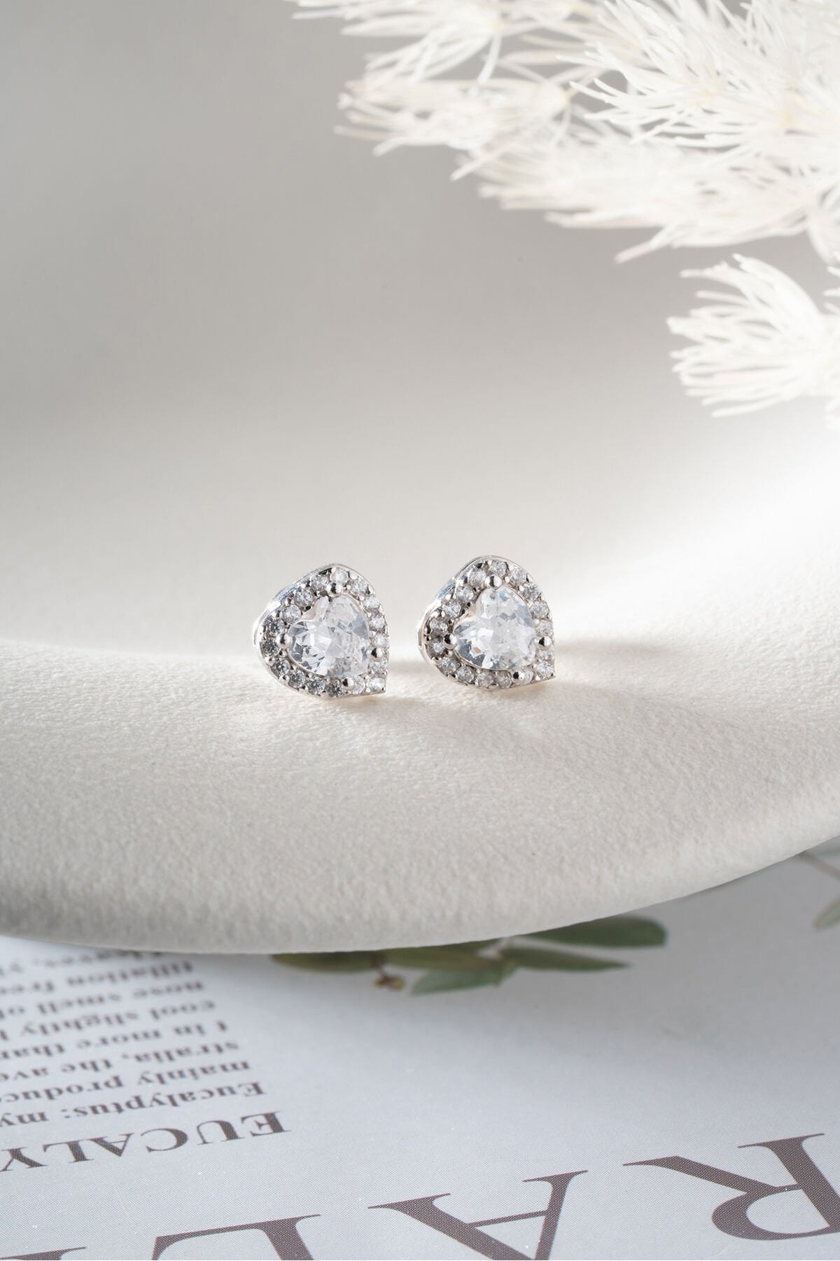 925 Ayar Gümüş Beyaz Taşlı Çivili Kalp Küpe