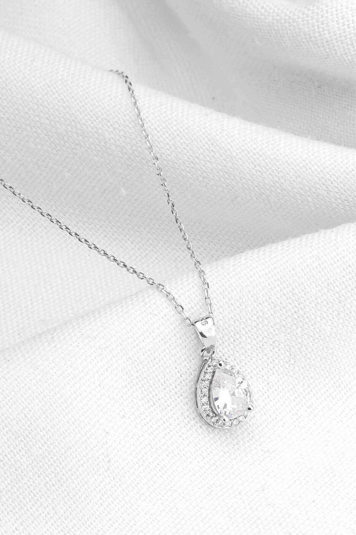 925 Ayar Gümüş Beyaz Taşlı Damla Kolye