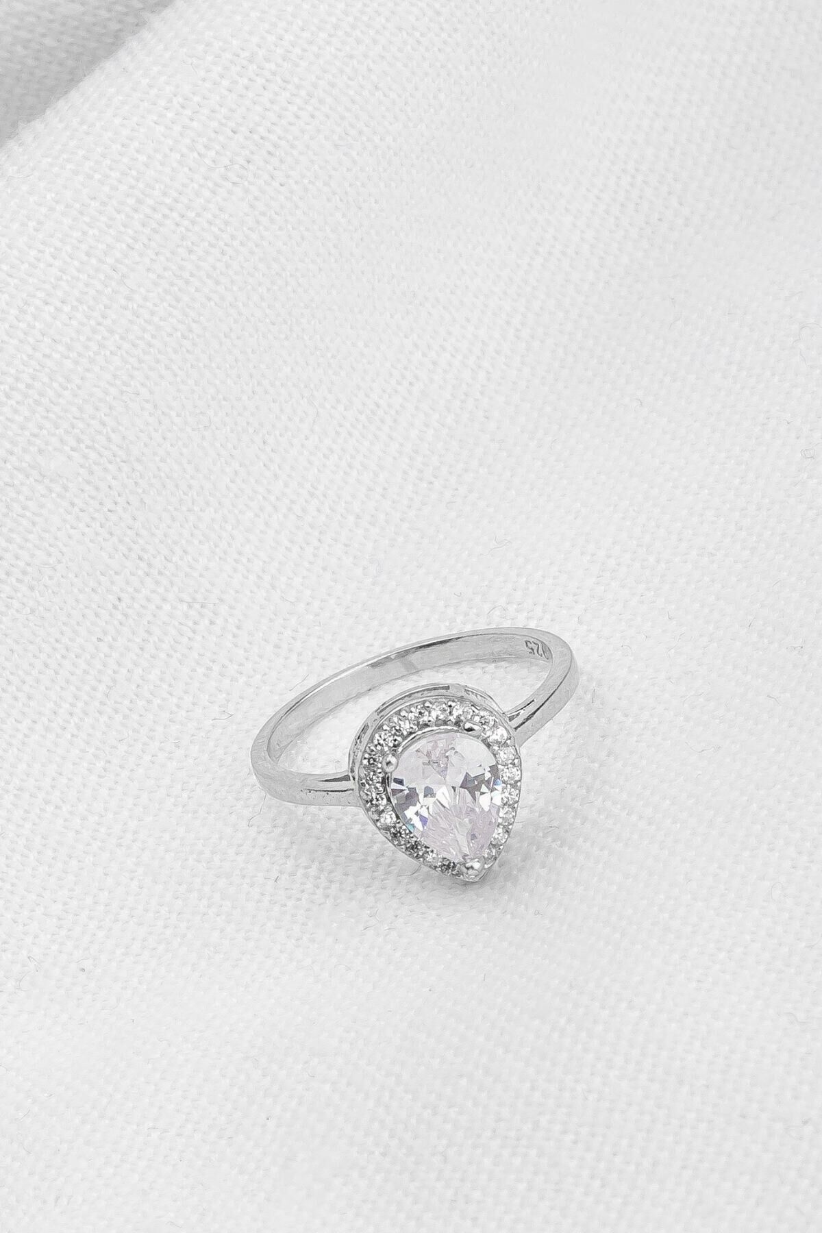 925 Ayar Gümüş Beyaz Taşlı Damla Yüzük
