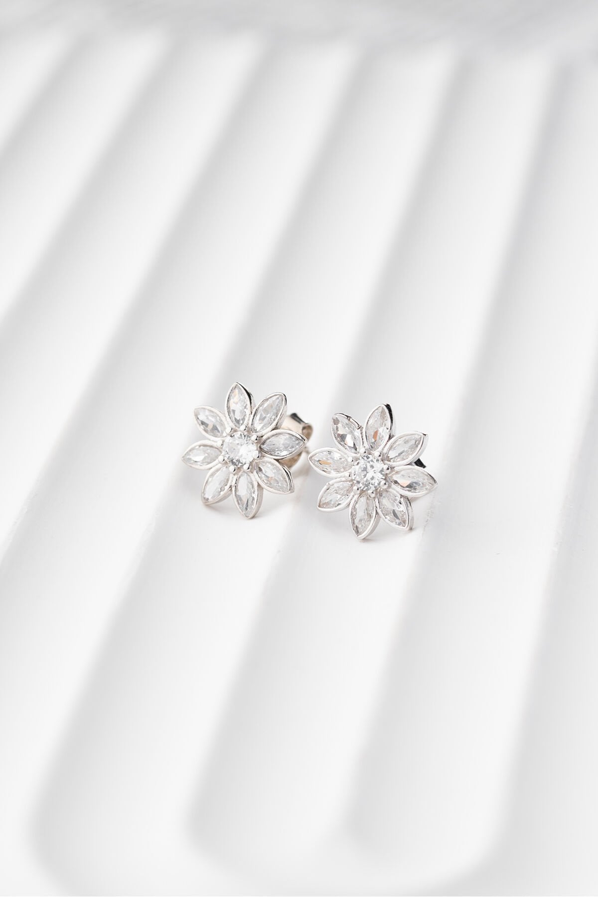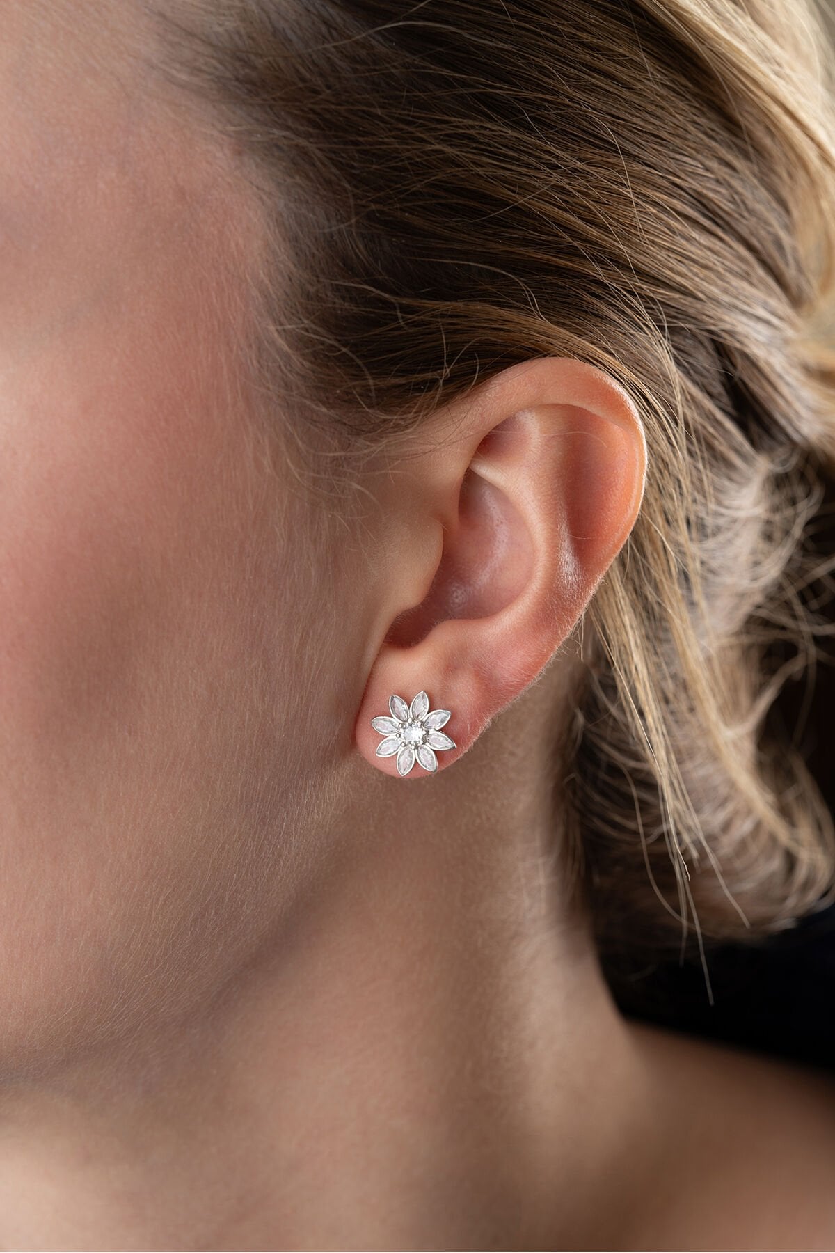925 Ayar Gümüş Beyaz Taşlı Lotus Küpe