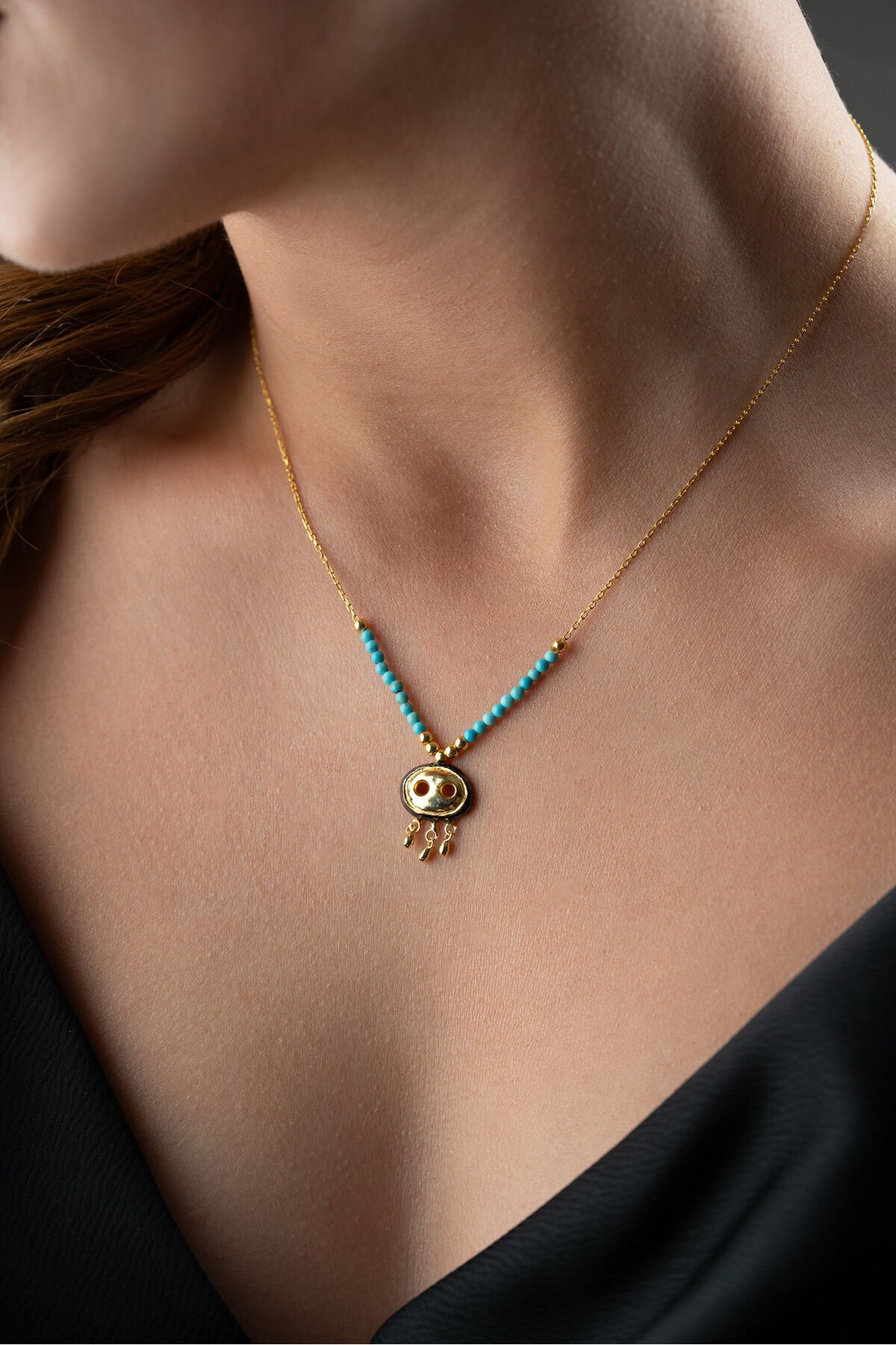 925 Ayar Gümüş Boncuklu Süryani Gözü Kolye