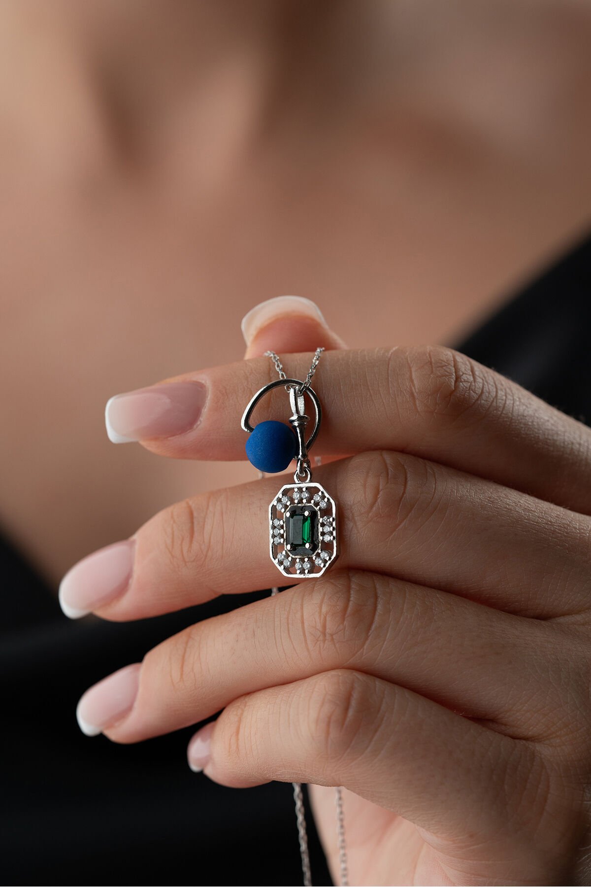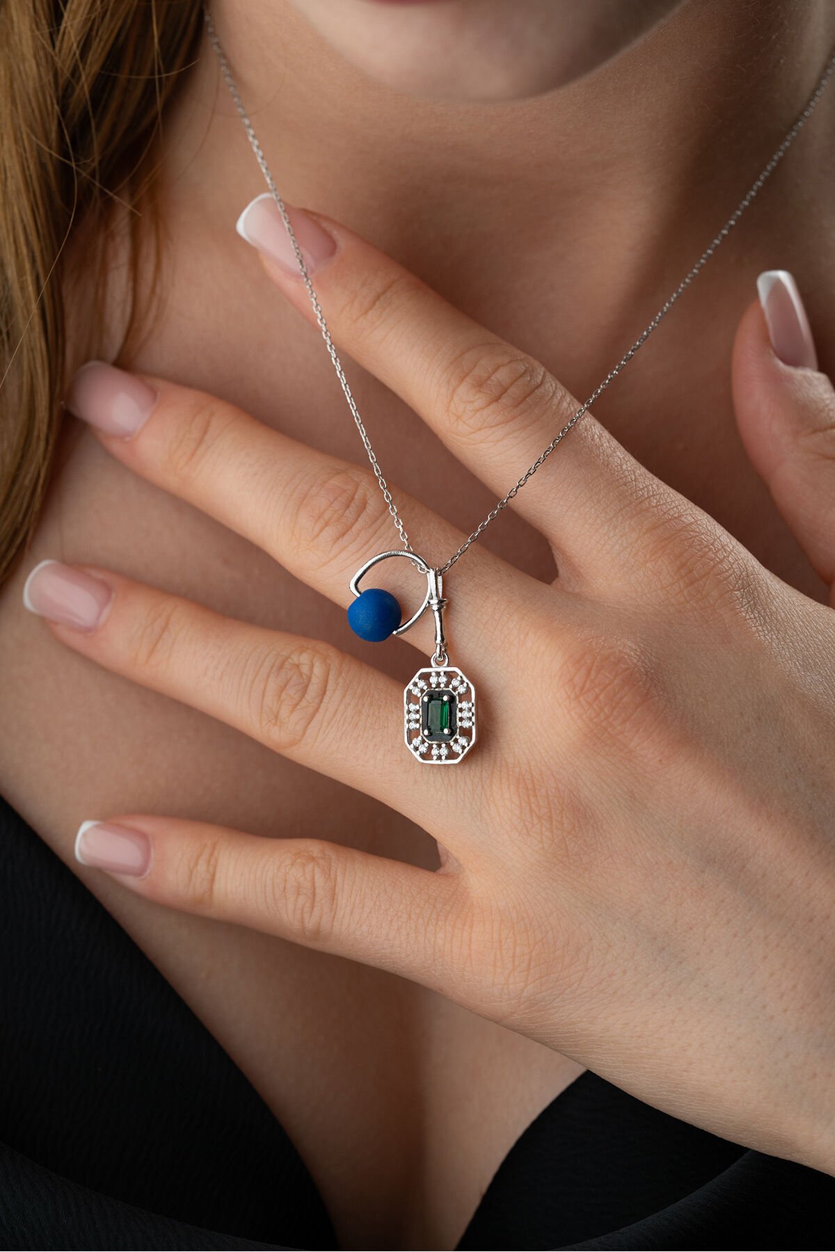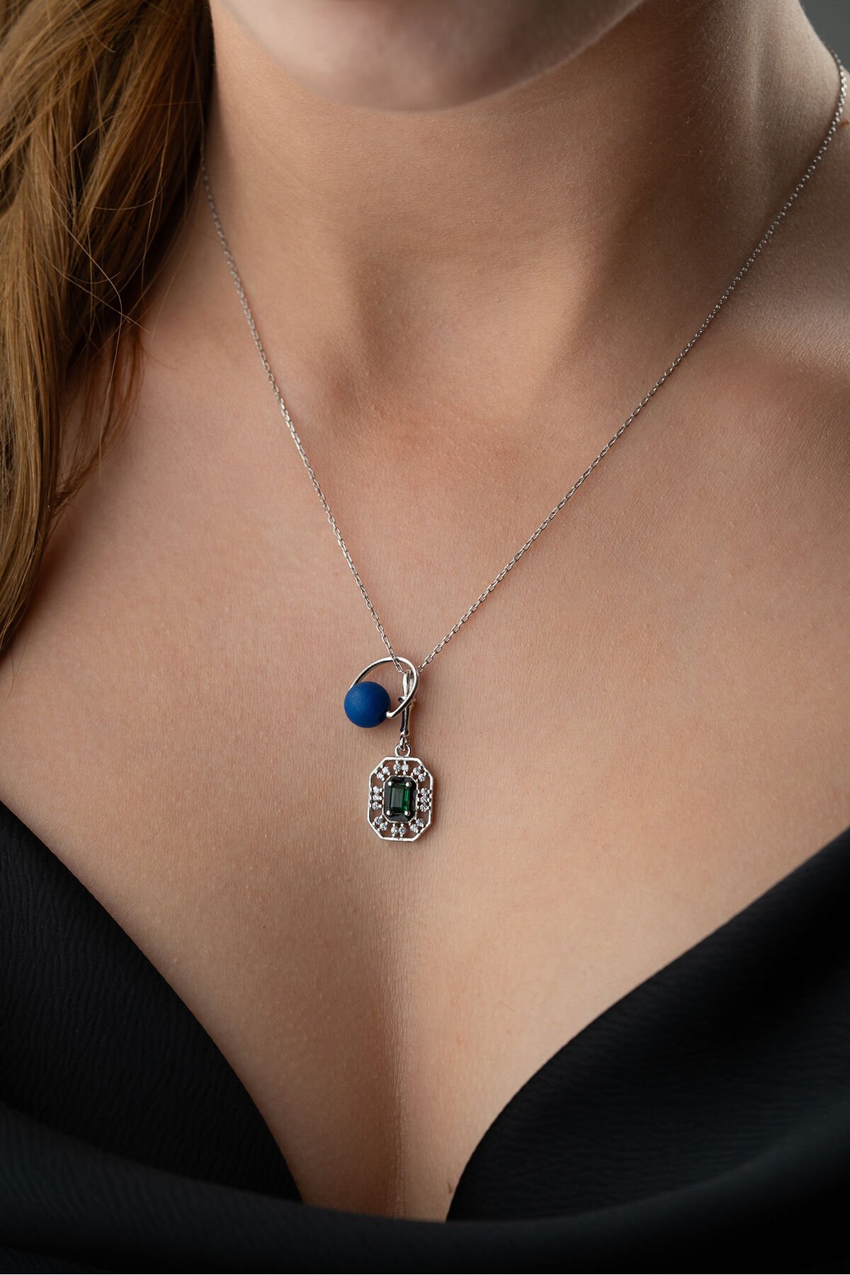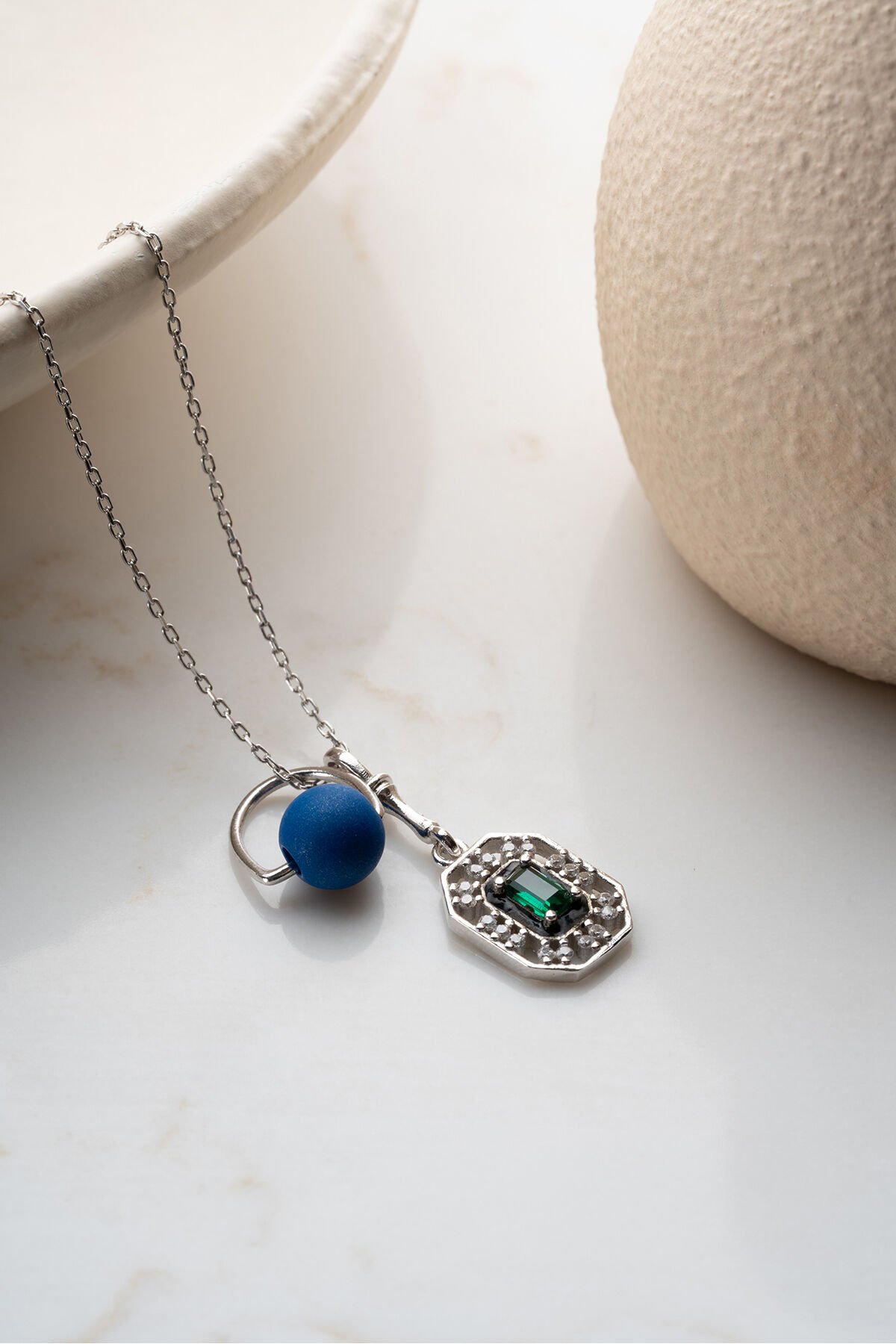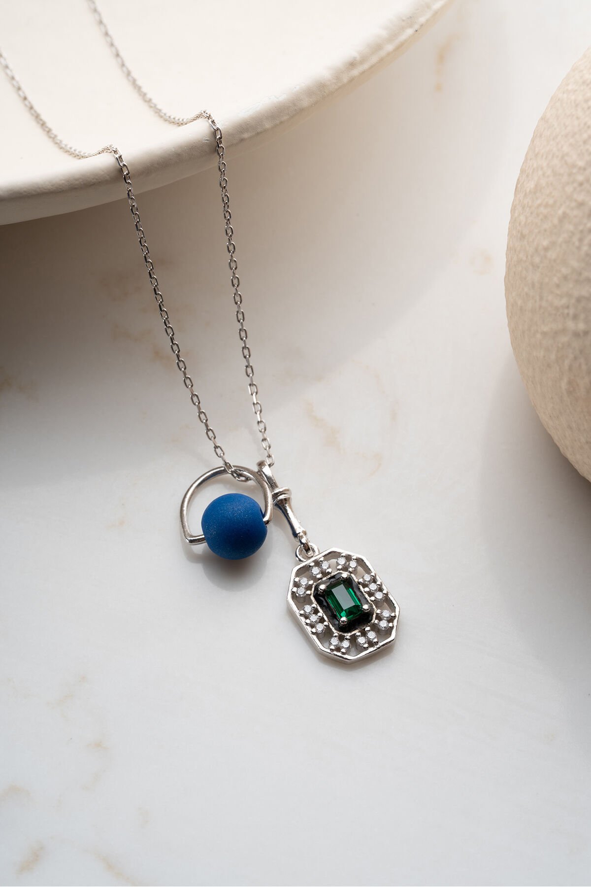 925 Ayar Gümüş Boncuklu Zirkon Taşlı Kolye