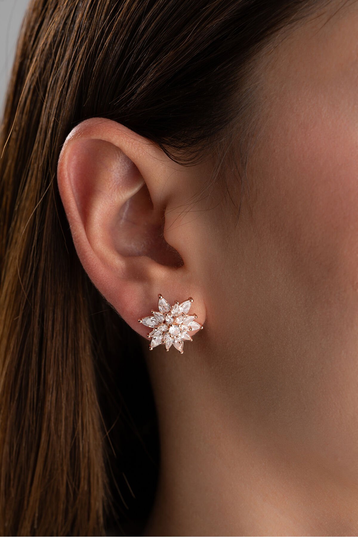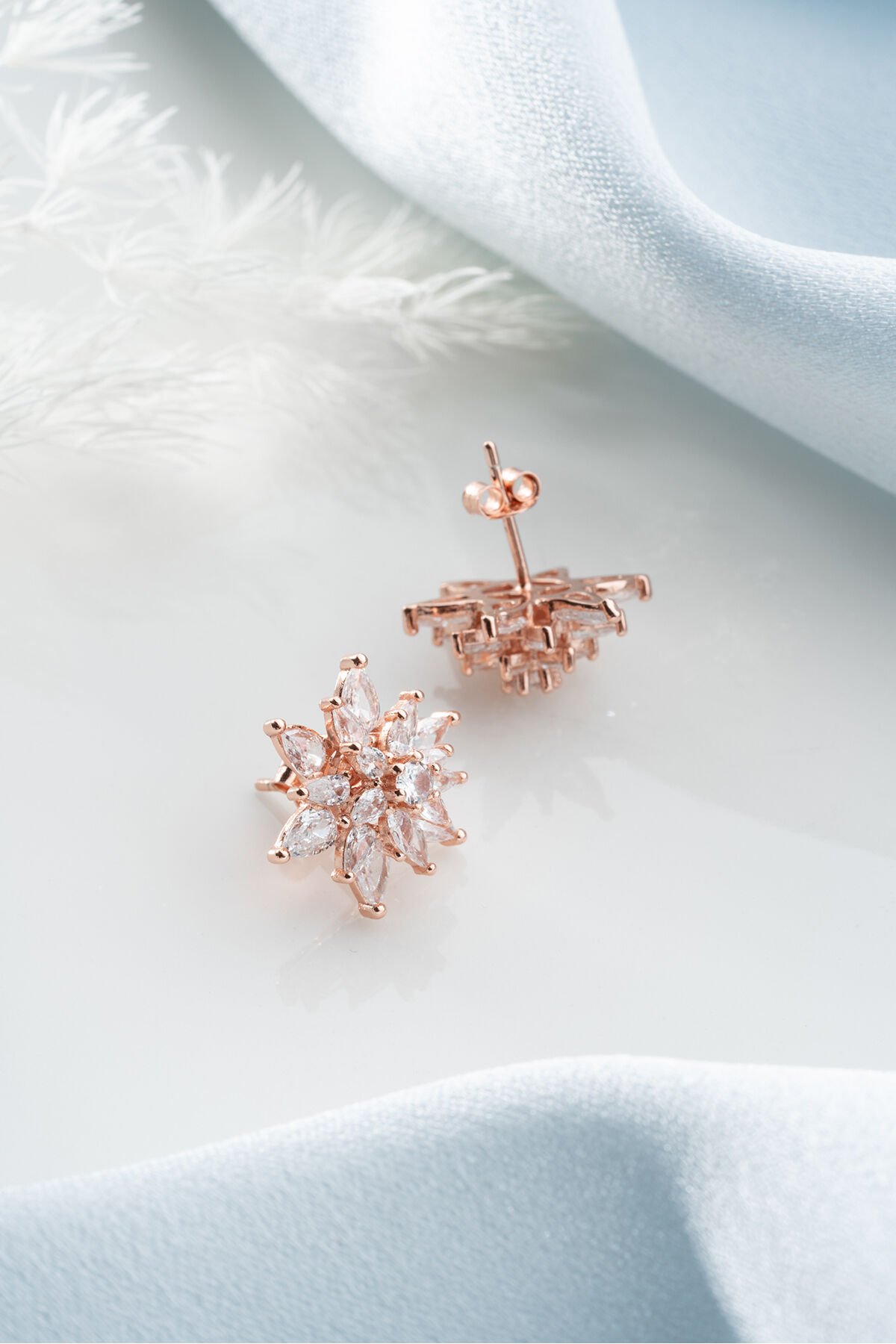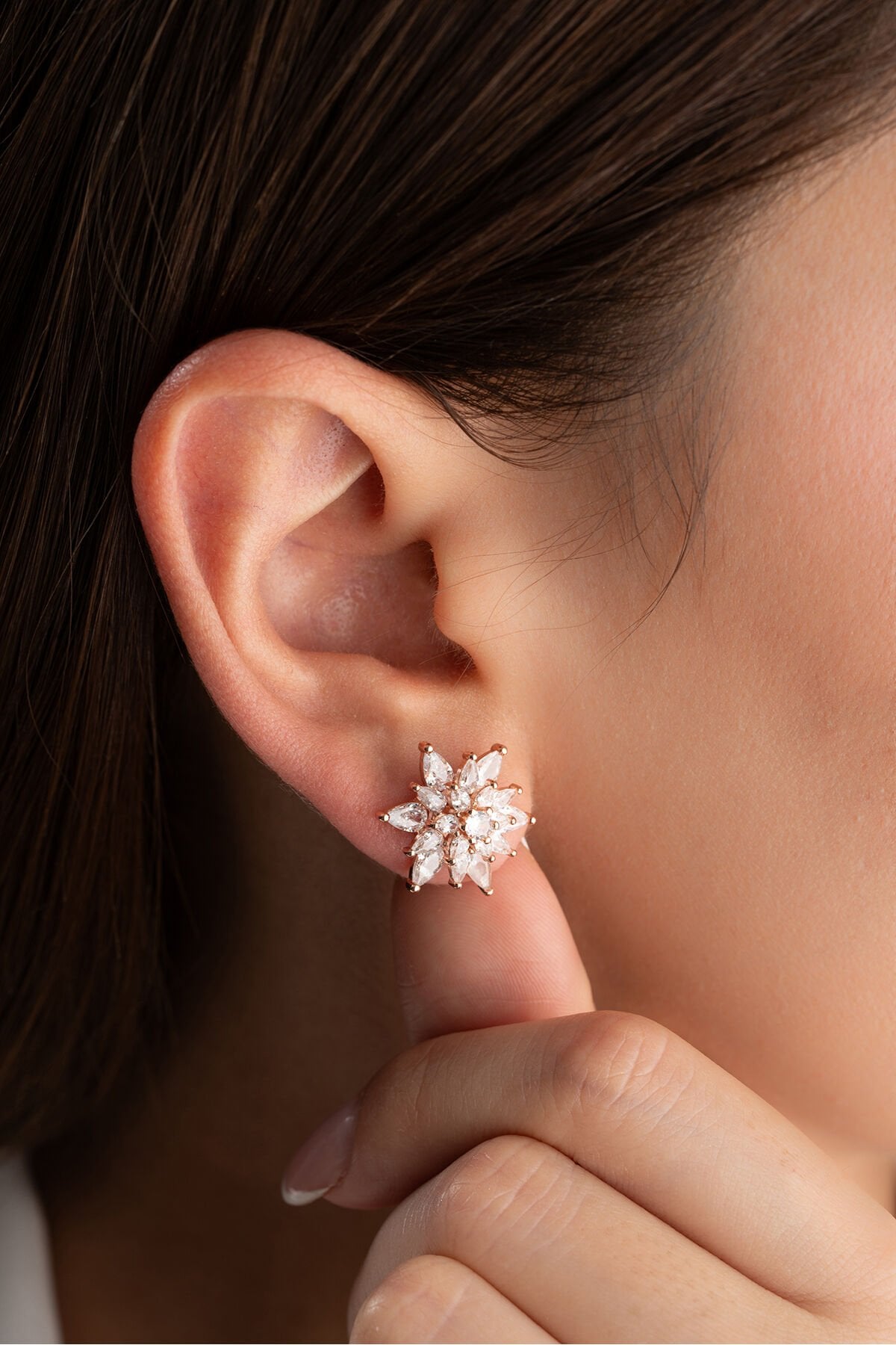 925 Ayar Gümüş Buzlu Beyaz Lotus Küpe