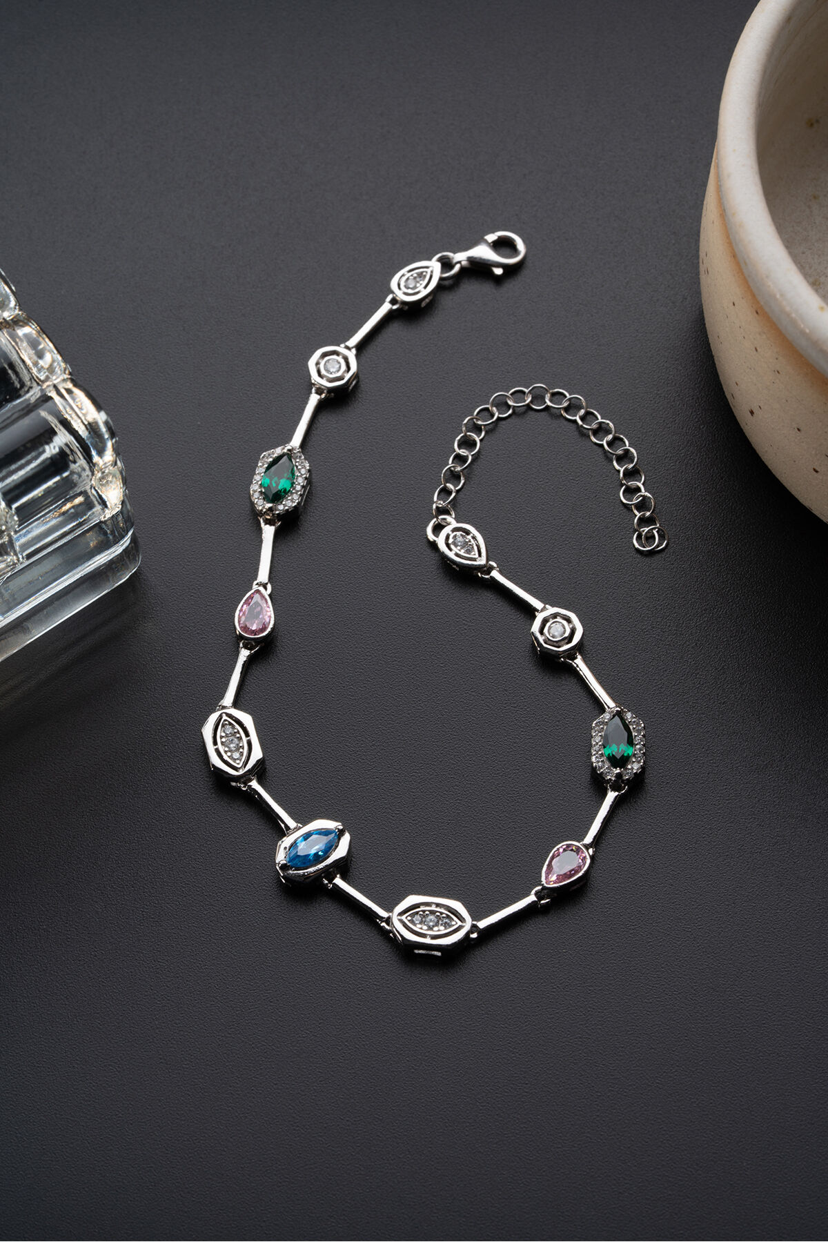 ; 925 Ayar Gümüş bileklik ; Zarif ve ince tasarımı ile her kombine uyum sağlayan bu kolye, günlük kullanım için idealdir.; - Malzeme: 925 ayar gümüş - Boy: 42 cm (idealdir ve rahat bir kullanım sunar) - Özellikler: Hafif ve zarif yapısı ile boynunuza doğal bir ışıltı katar.; 925 Ayar Gümüş Bilekliğimiz Sade ama şık tasarımı ile bileğinize ince bir dokunuş katın.; Günlük ve özel günlerde rahatça kullanabilirsiniz.; - Malzeme: 925 ayar gümüş - Boy: Ayarlanabilir (17 cm - 20 cm arası) - Özellikler: Dayanıklı yapısı ile uzun ömürlü kullanım sağlar, hafif ve rahattır.; Tabii, işte kısa ve anlaşılır bir şekilde 925 ayar gümüş takıların saklama ve kullanma koşulları: 925 Ayar Gümüş Takıların Saklama Koşulları: - Kuru ve serin yerde saklayın: Gümüş takılar nemden uzak tutulmalıdır.; Nem, gümüşün kararmasına neden olabilir.; - Kapalı kutuda muhafaza edin: Takılarınızı hava almayan mücevher kutusunda veya kumaş keselerde saklayarak oksitlenmeyi önleyebilirsiniz.; - Diğer takılarla temas ettirmeyin: Çizilmeleri önlemek için gümüş takılarınızı diğer takılardan ayrı tutun.; 925 Ayar Gümüş Takıların Kullanma Koşulları: - Su ve kimyasallardan uzak tutun: Gümüş takılarınızı parfüm, krem, saç spreyi gibi kimyasallarla temas ettirmeyin ve suya maruz bırakmayın.; - Düzenli temizleyin: Yumuşak bir bezle düzenli olarak temizleyerek parlaklığını koruyun.; - Uyurken ve spor yaparken çıkartın: Takılarınızı zarar görmemesi için uyurken, spor yaparken veya yoğun fiziksel aktivitelerde çıkarın.; Bu basit kurallar, gümüş takılarınızın uzun ömürlü ve parlak kalmasını sağlayacaktır.;