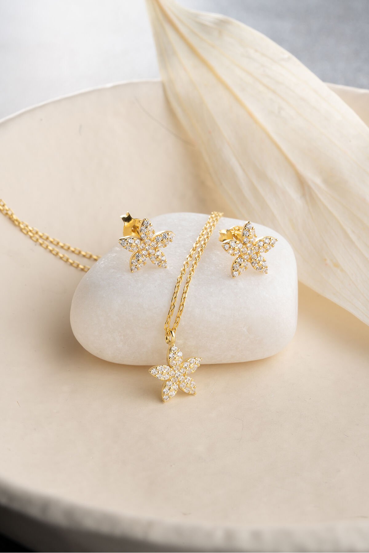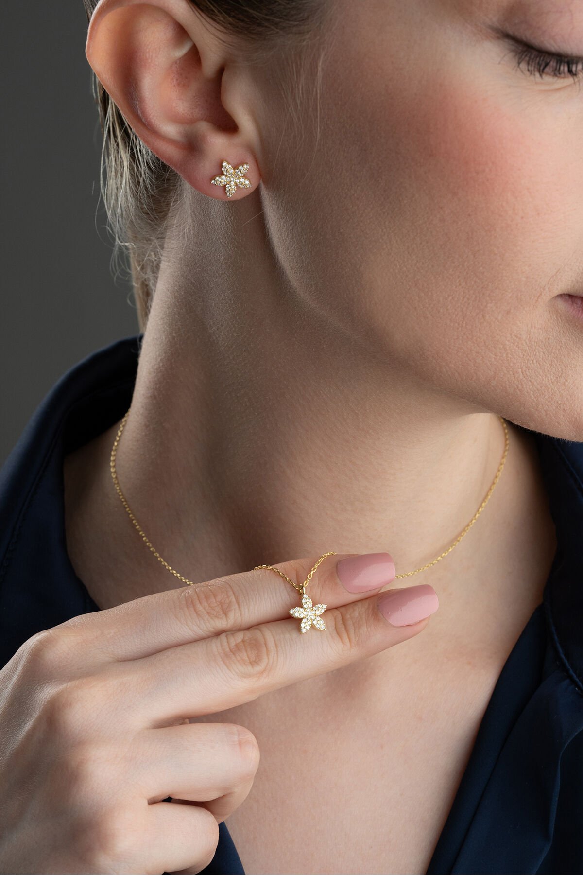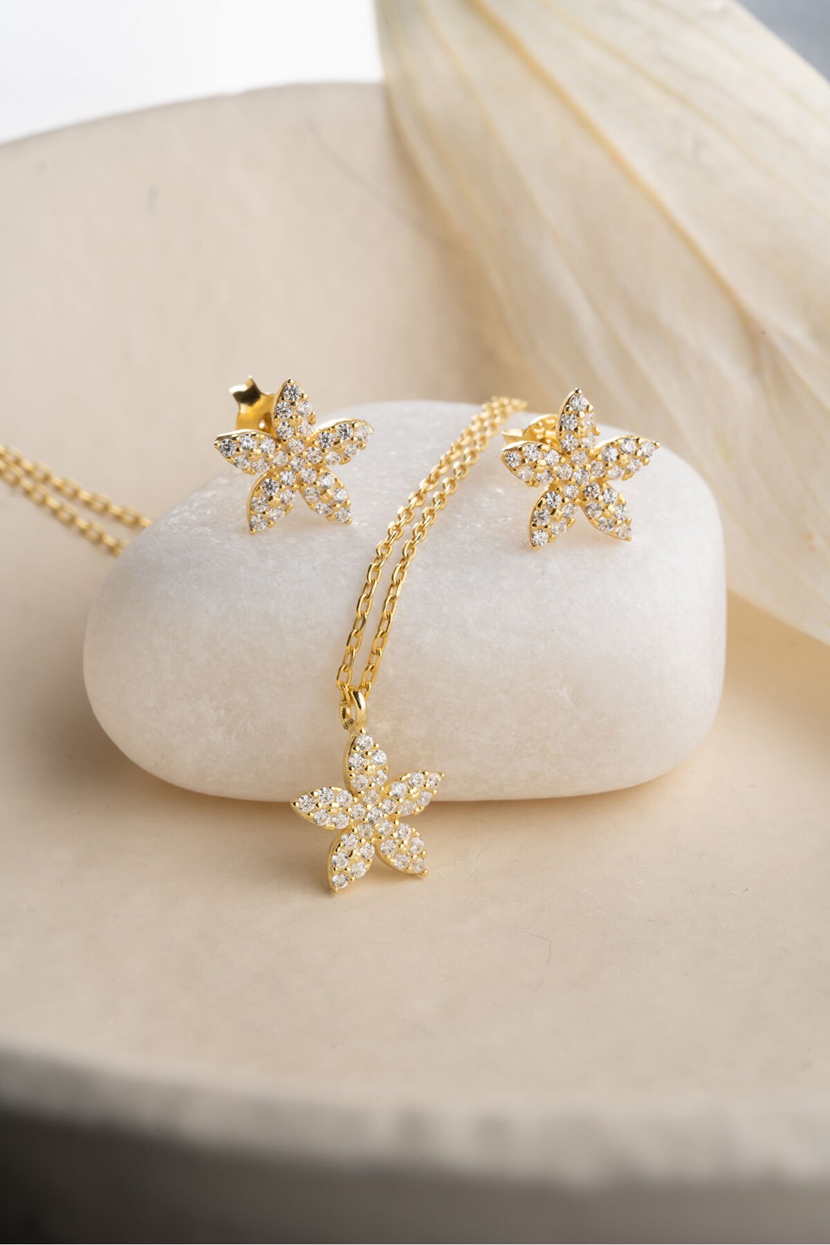 925 Ayar Gümüş Çiçek Model Takı Seti