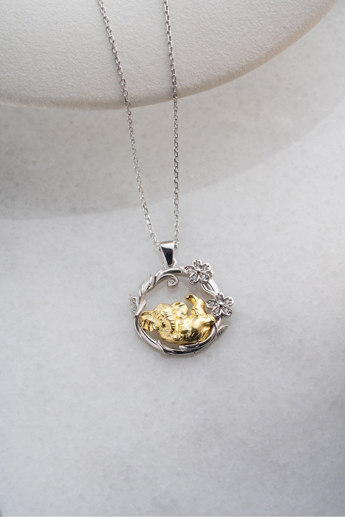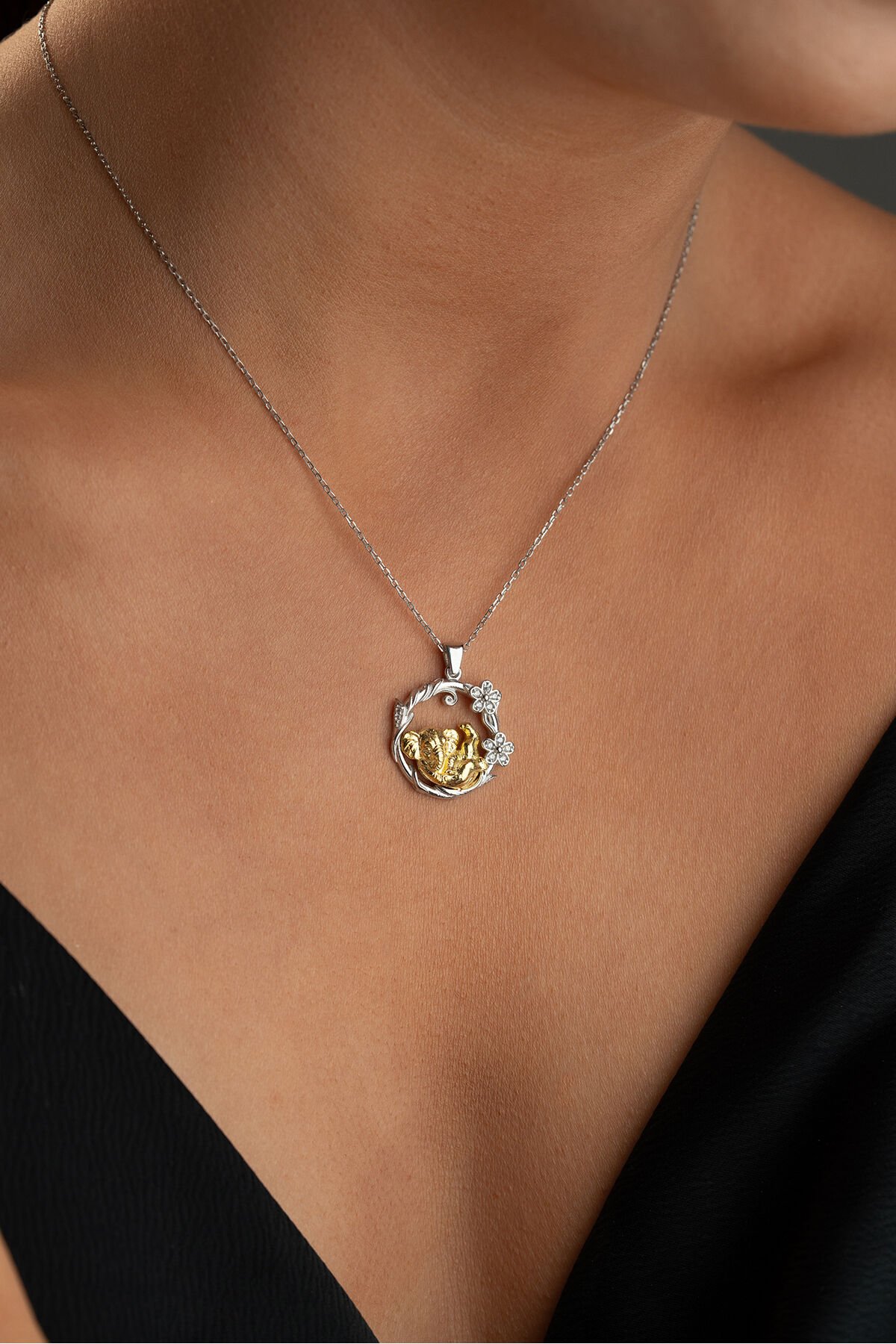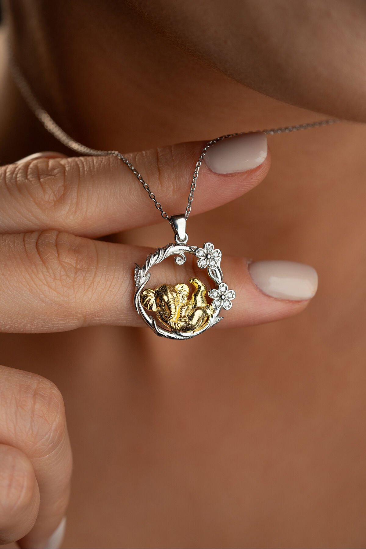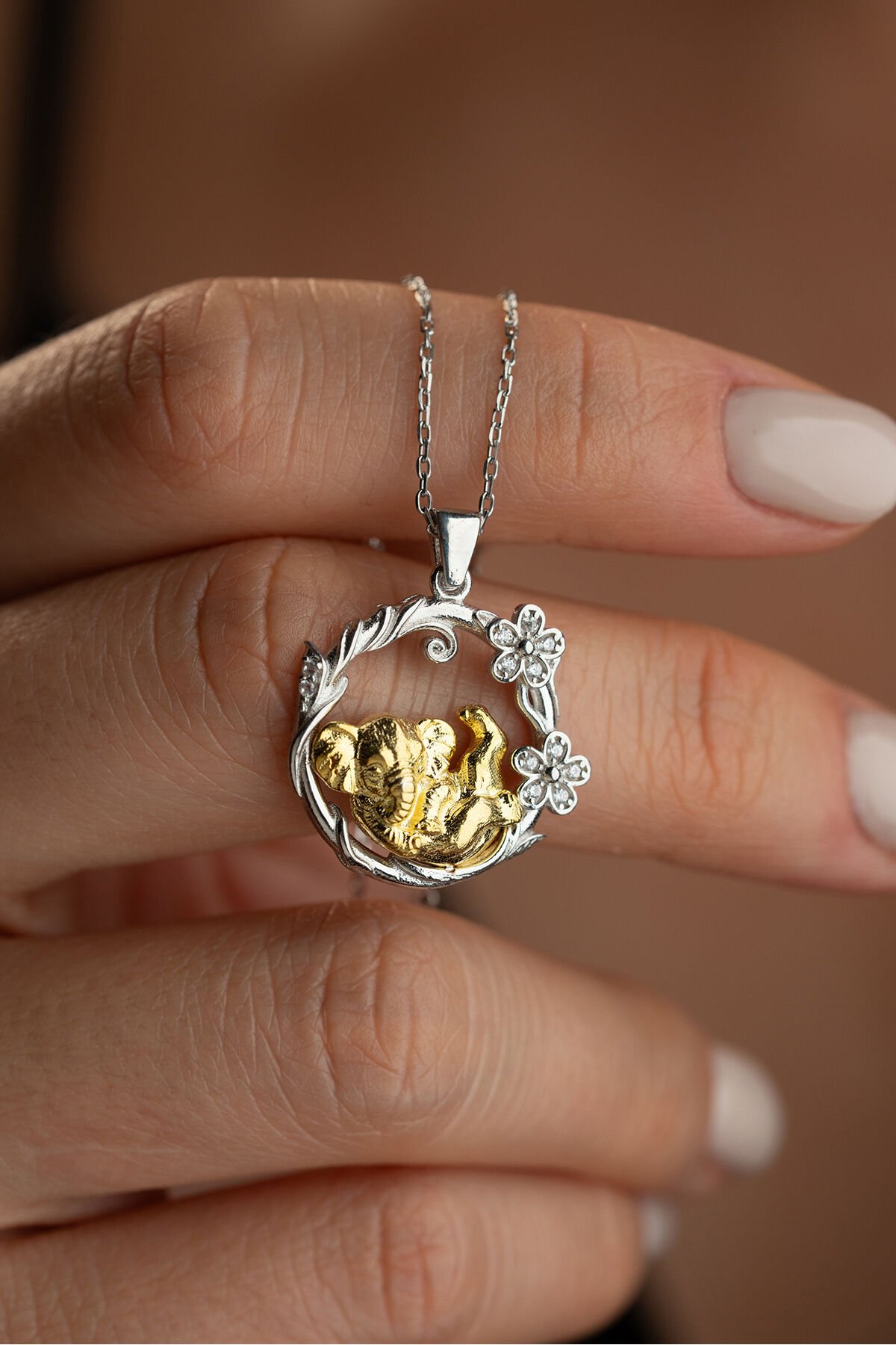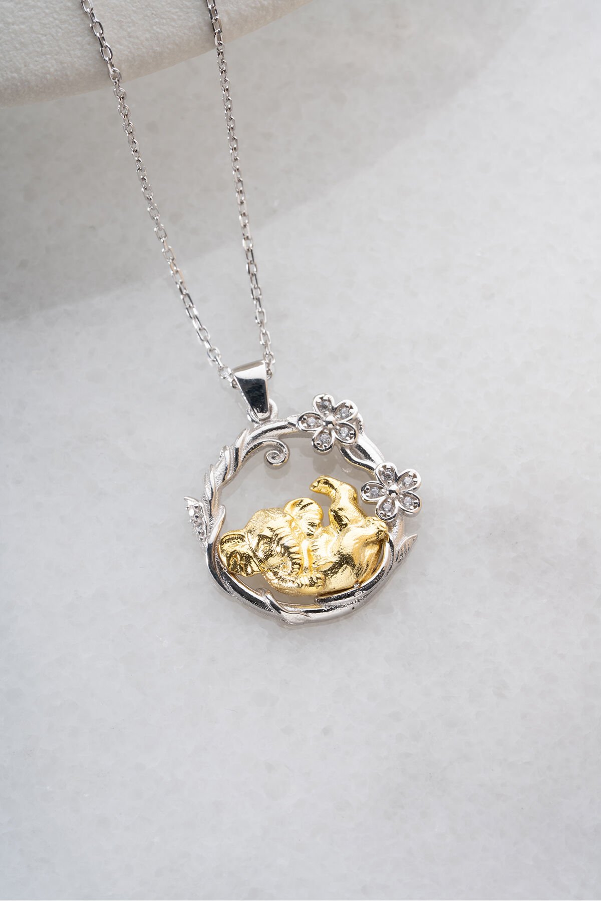 925 Ayar Gümüş Çiçekli Fil Kolye