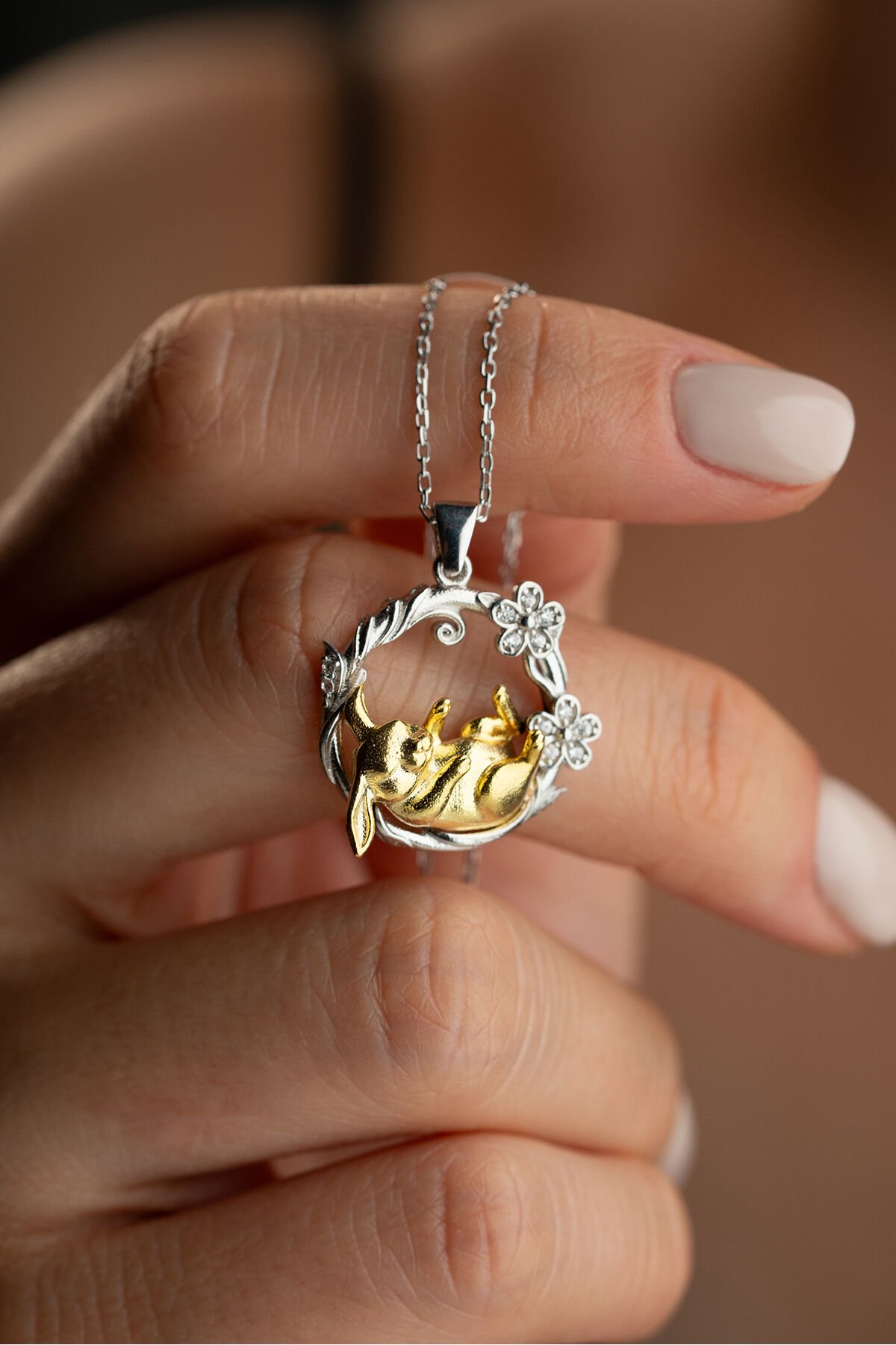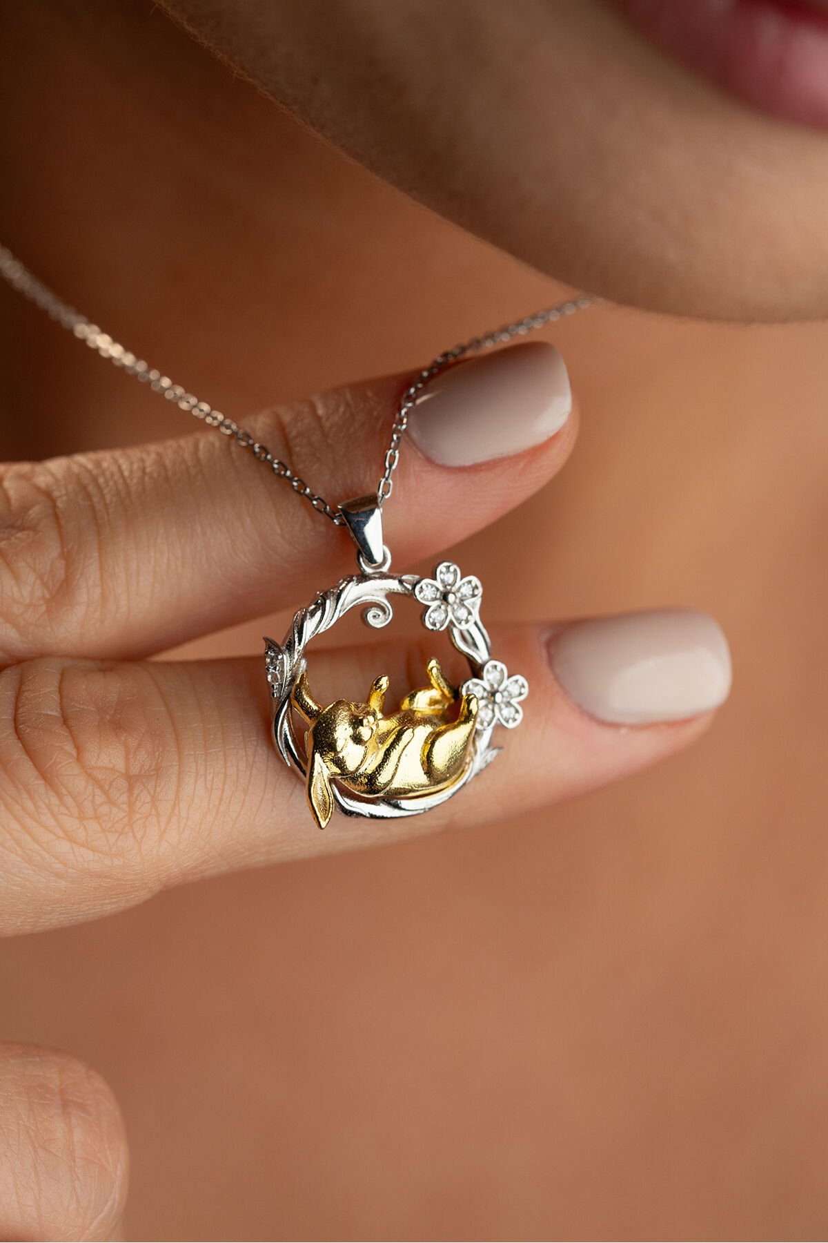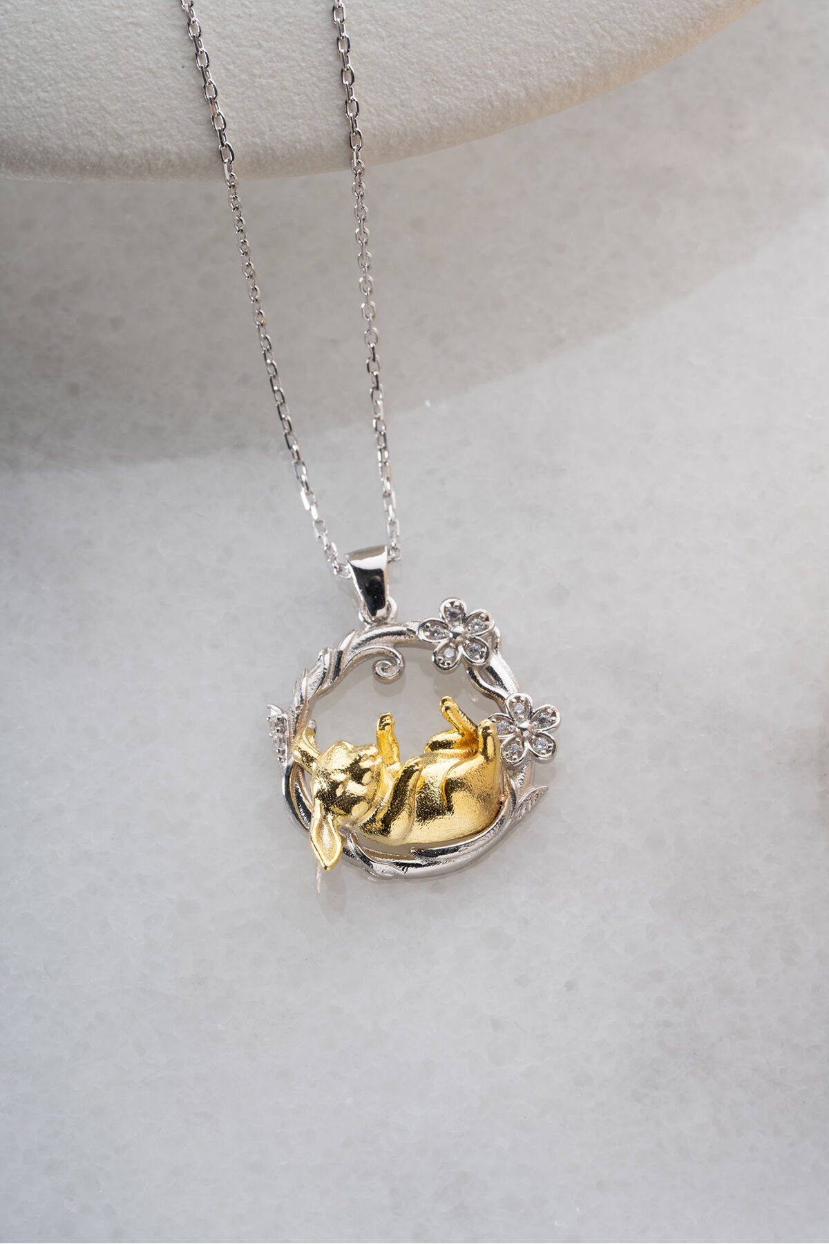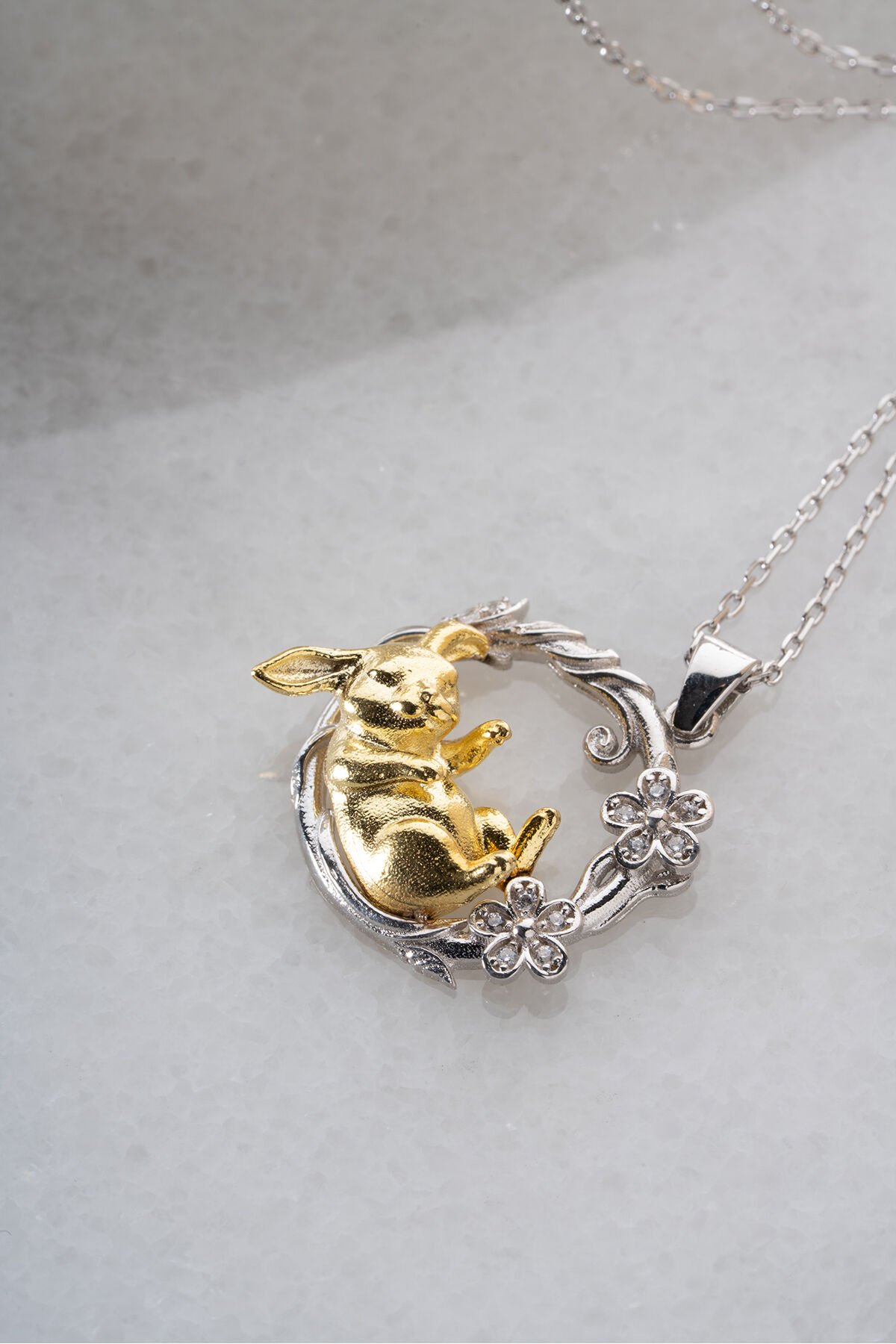 925 Ayar Gümüş Çiçekli Tavşan Kolye