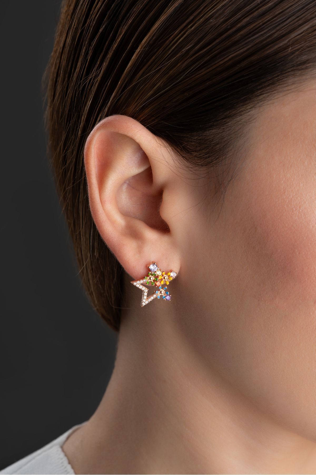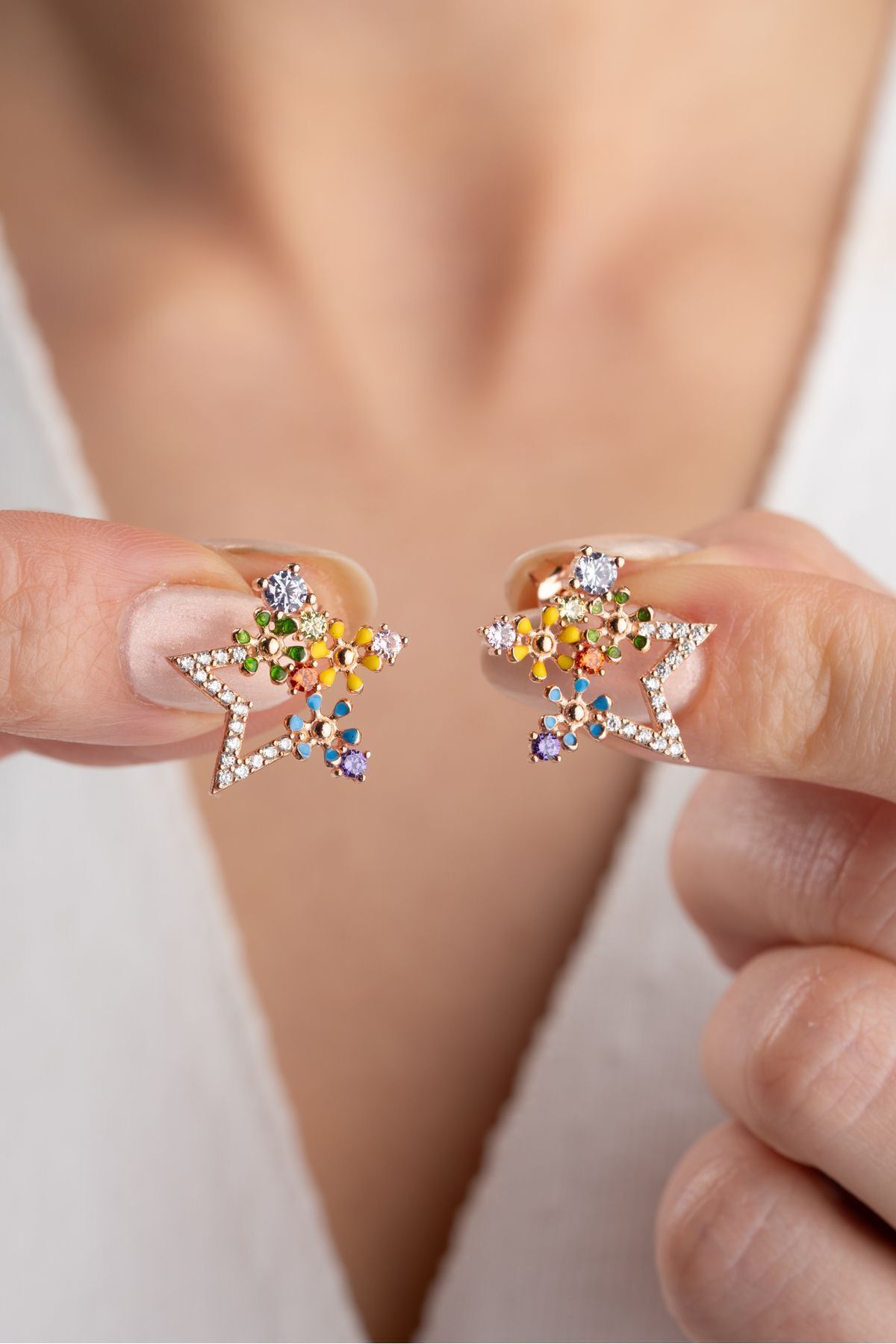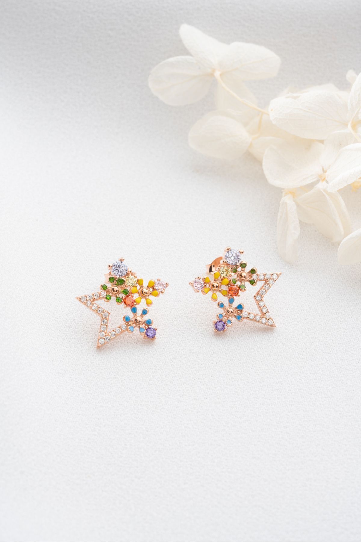 925 Ayar Gümüş Çiçekli Yıldız Küpe