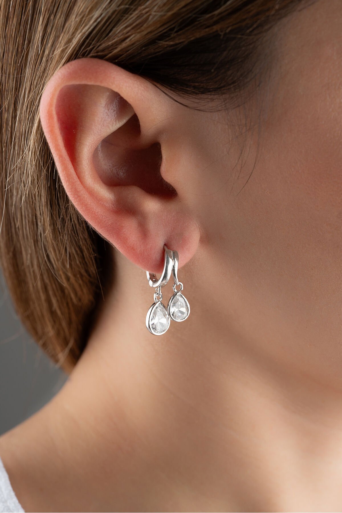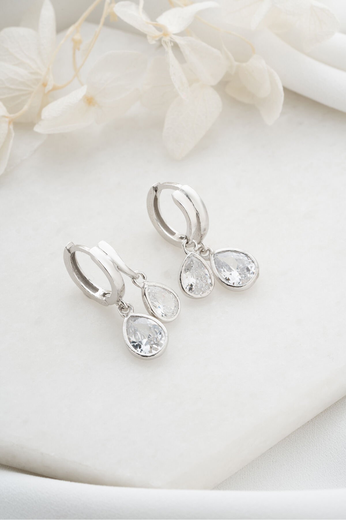 925 Ayar Gümüş Çift Damla Taşlı Küpe