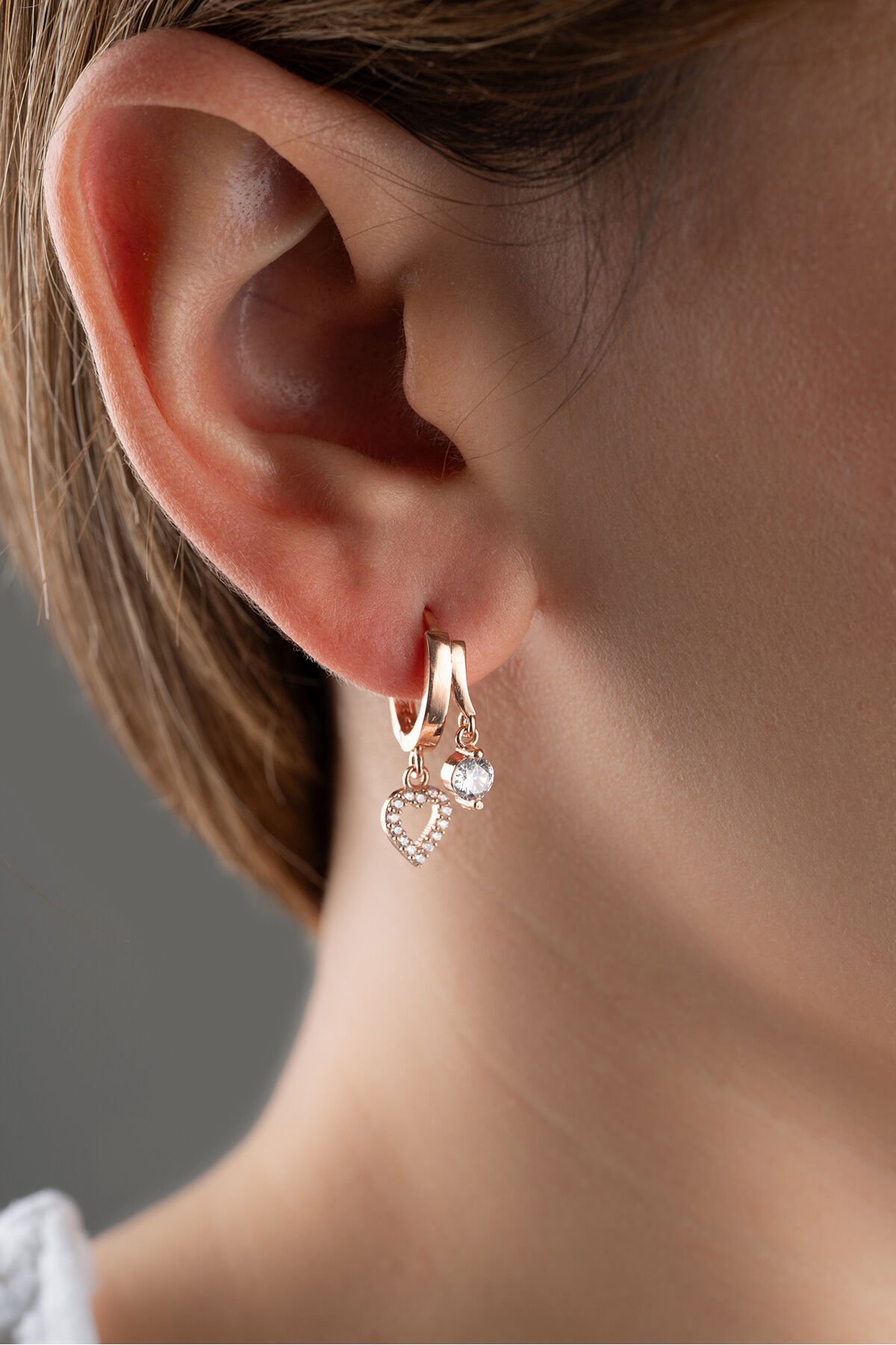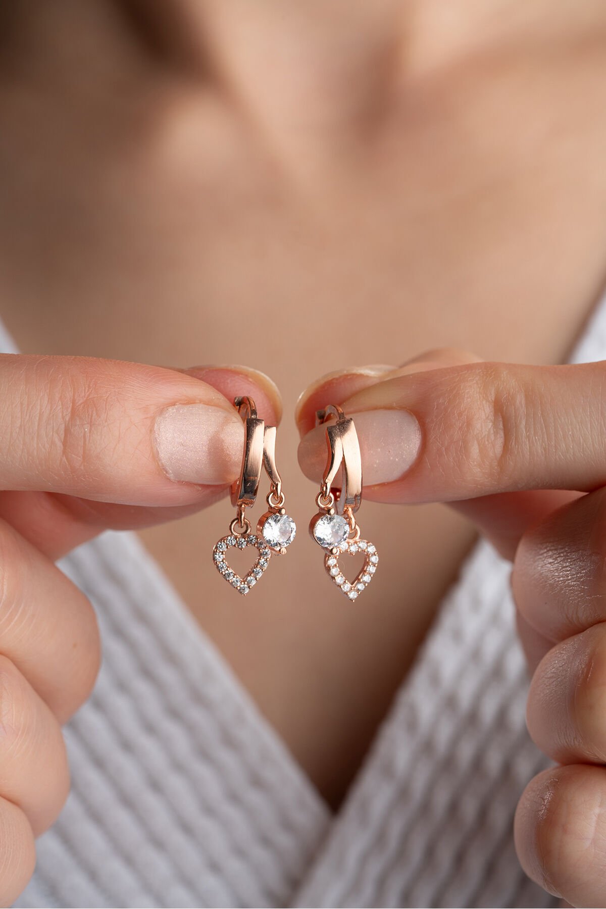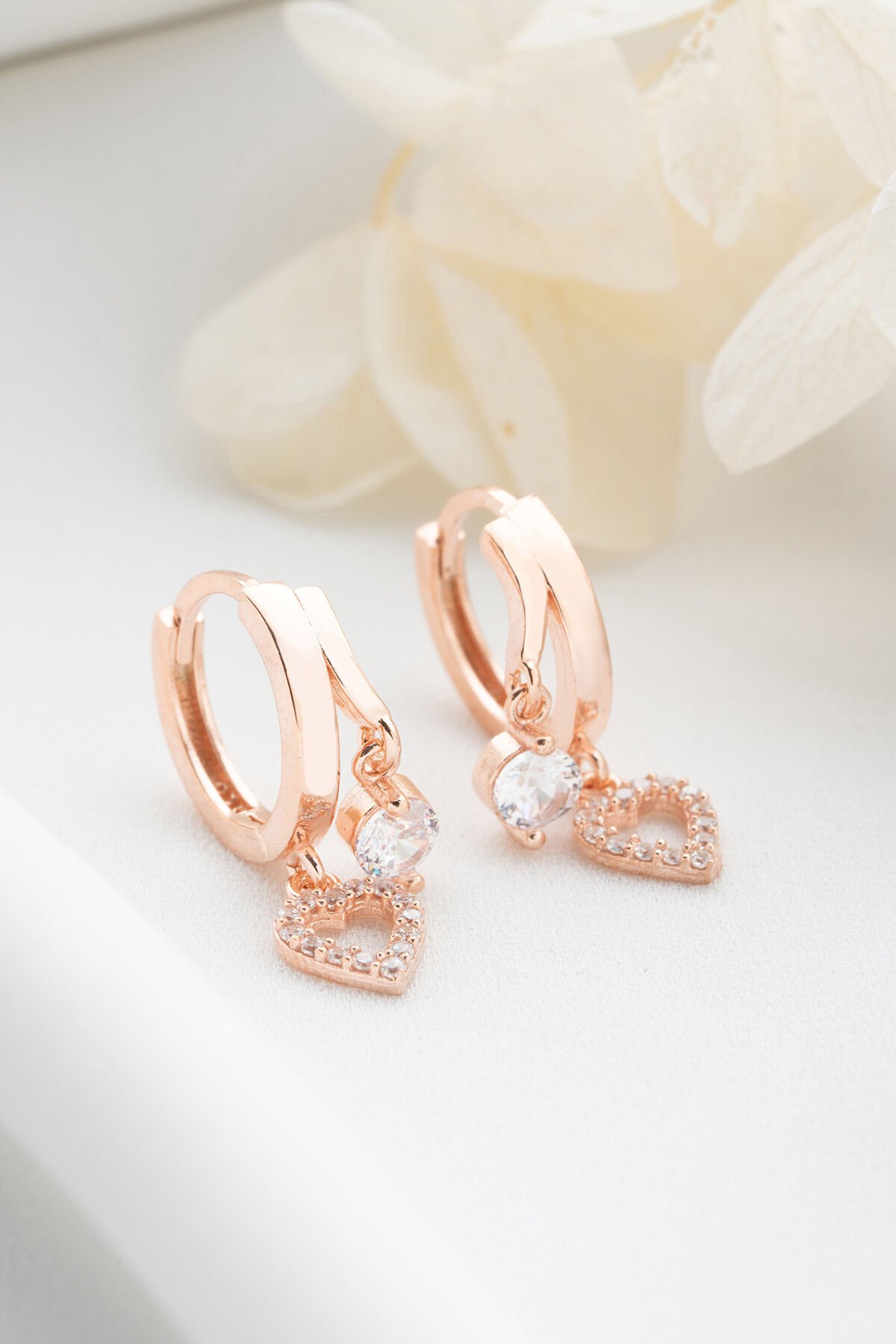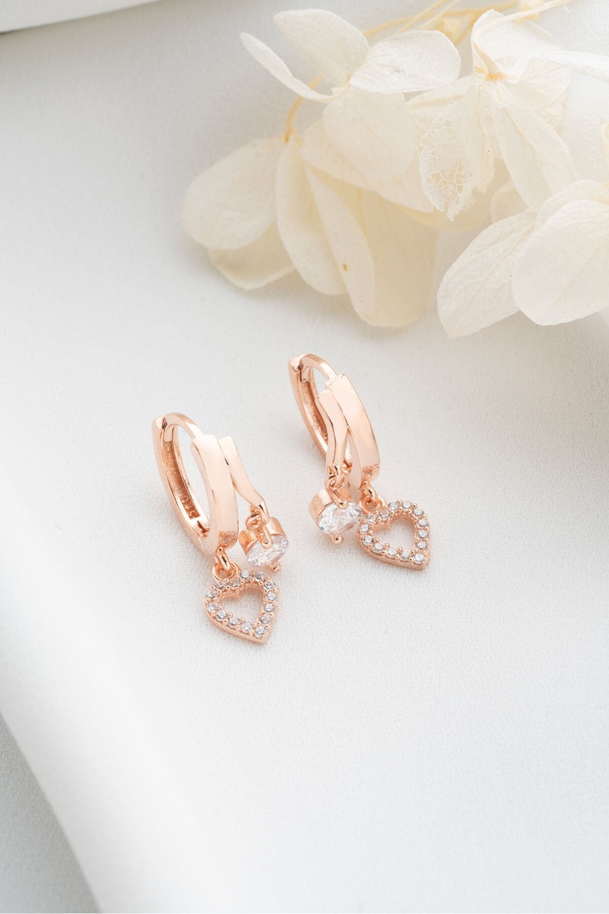 925 Ayar Gümüş Çift Kalp Taşlı Küpe