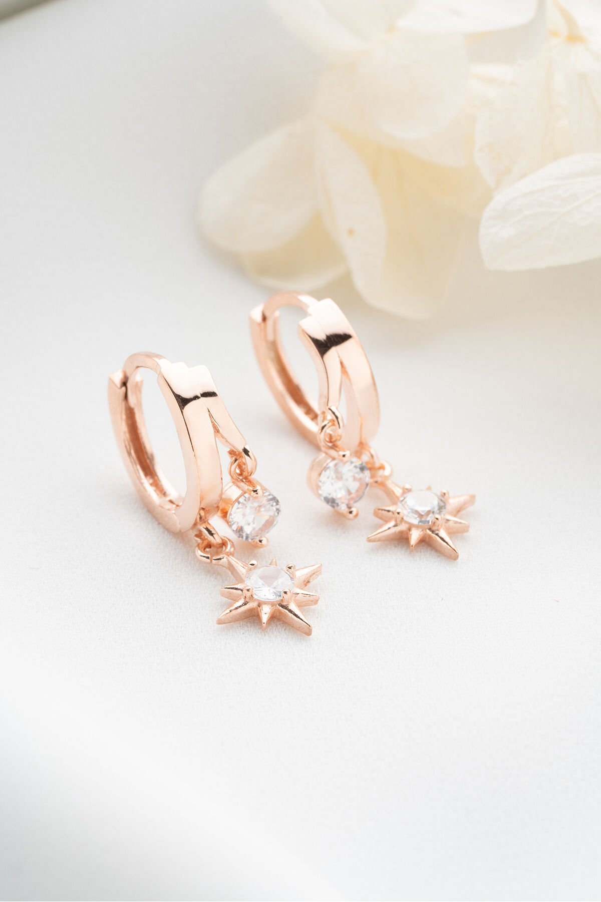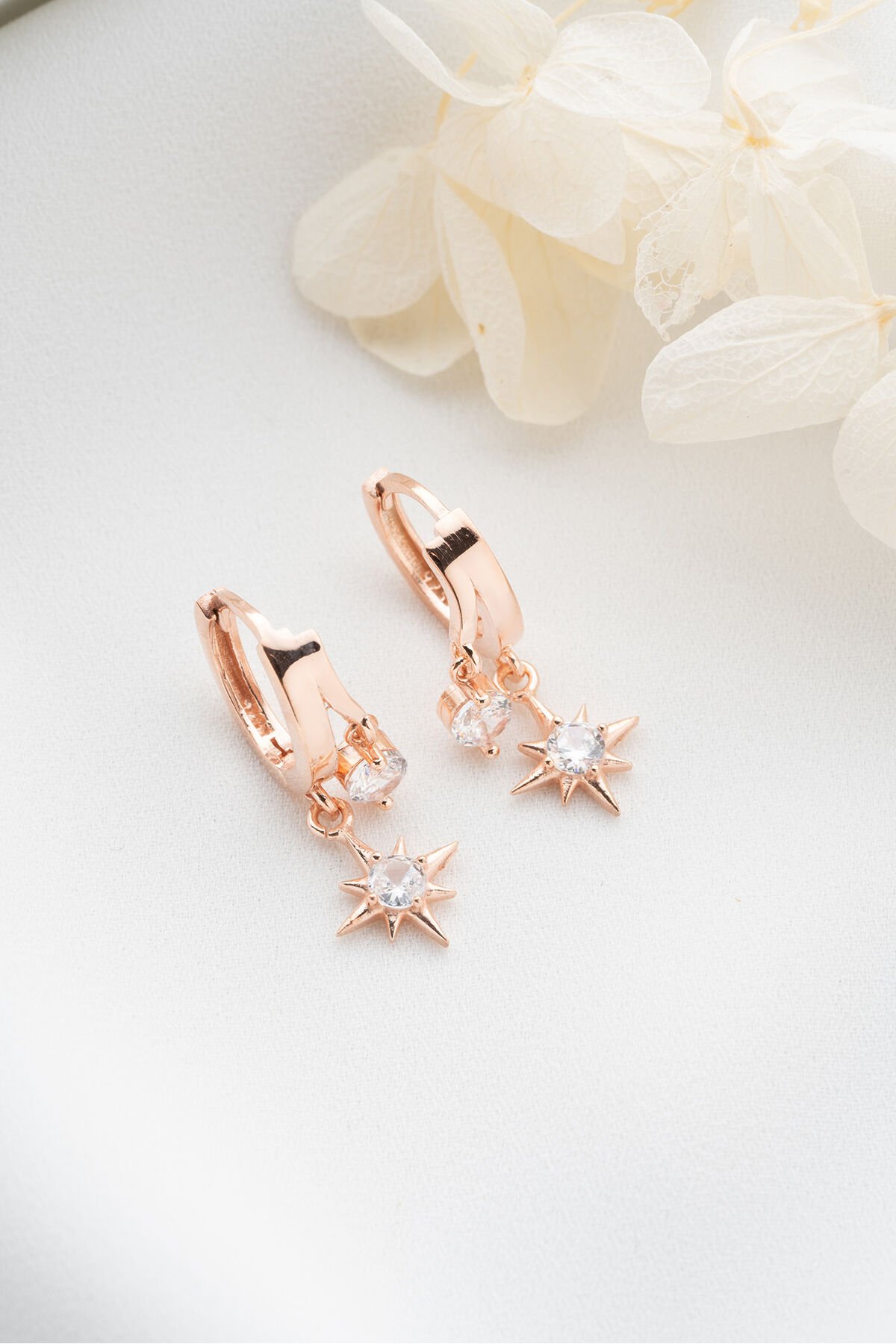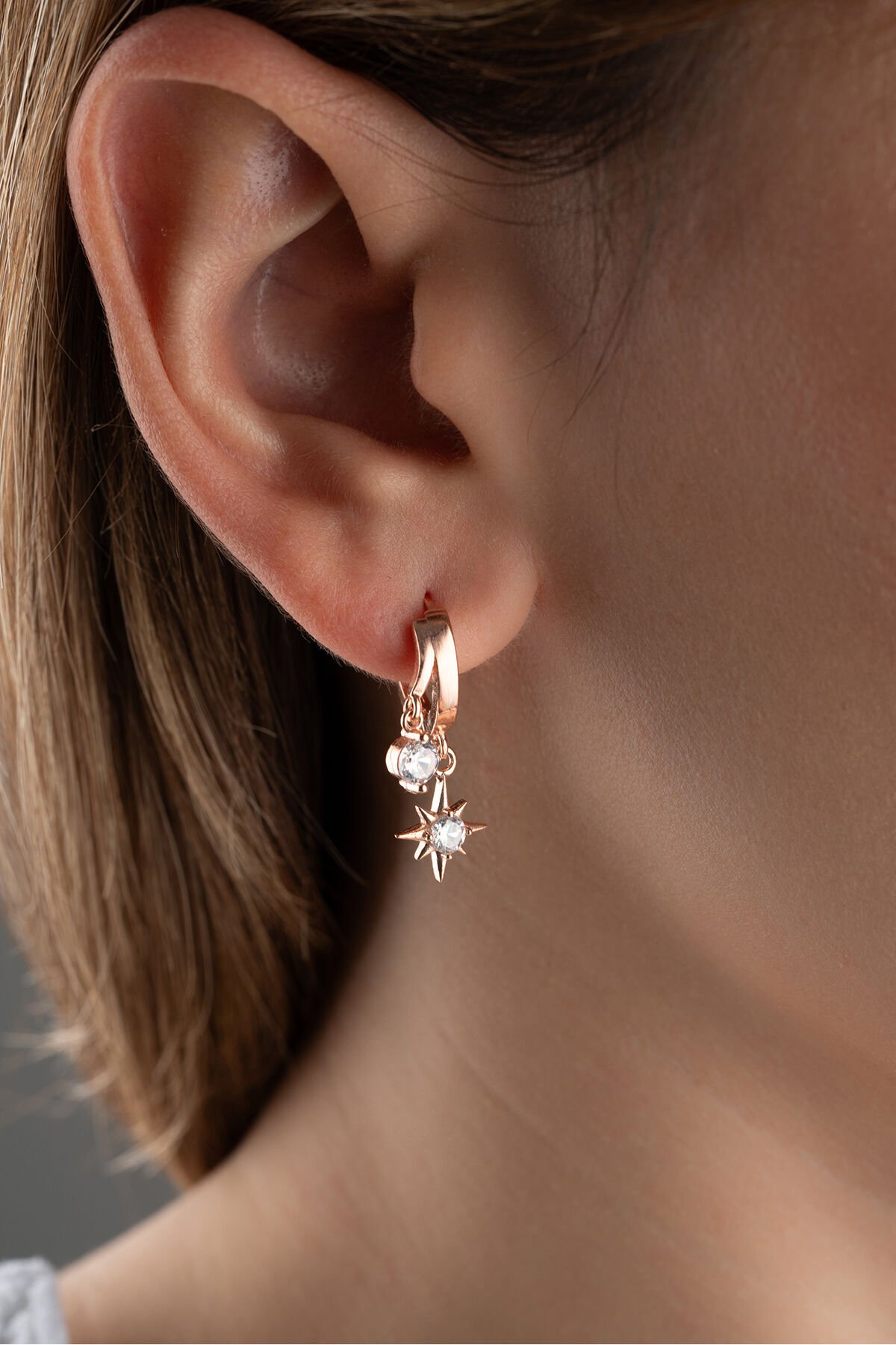 925 Ayar Gümüş Çift Kutup Yıldızı Taşlı Küpe
