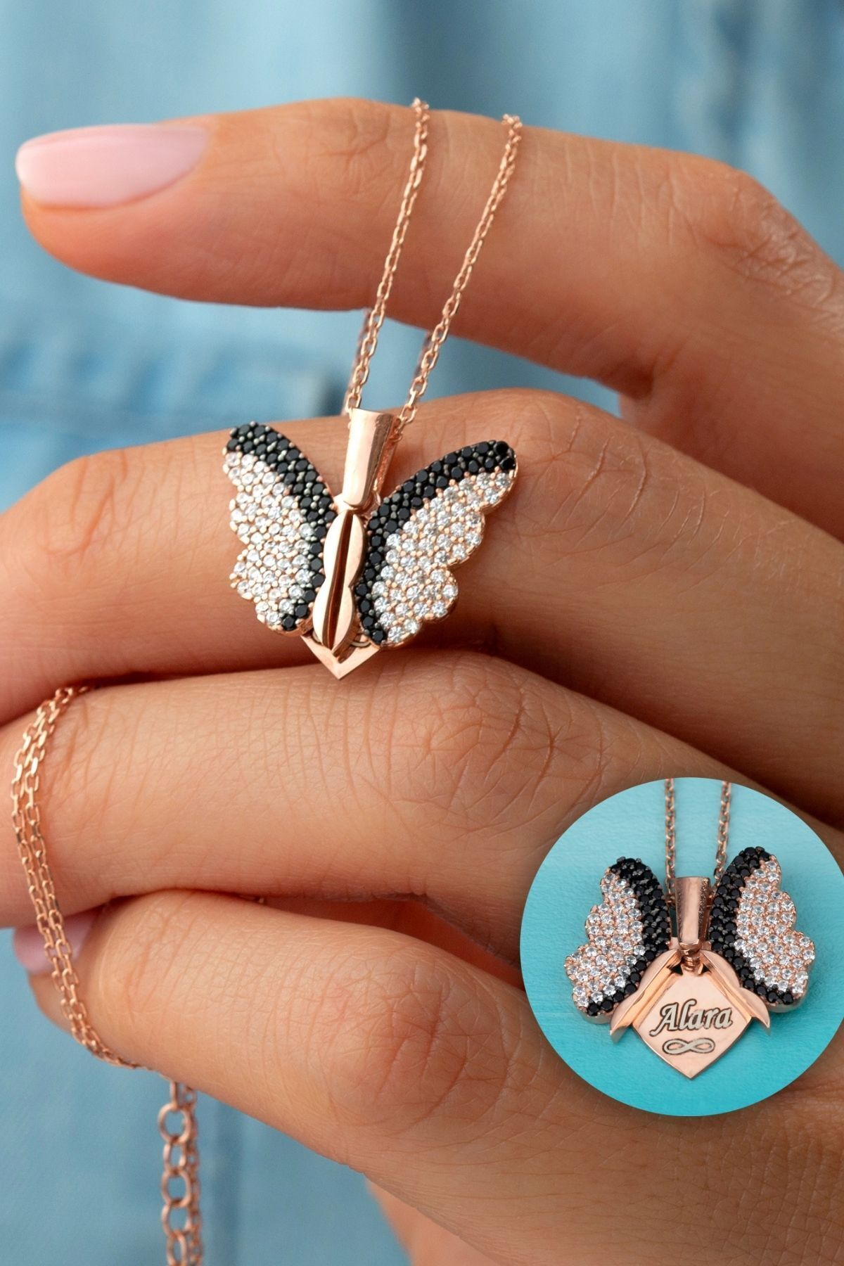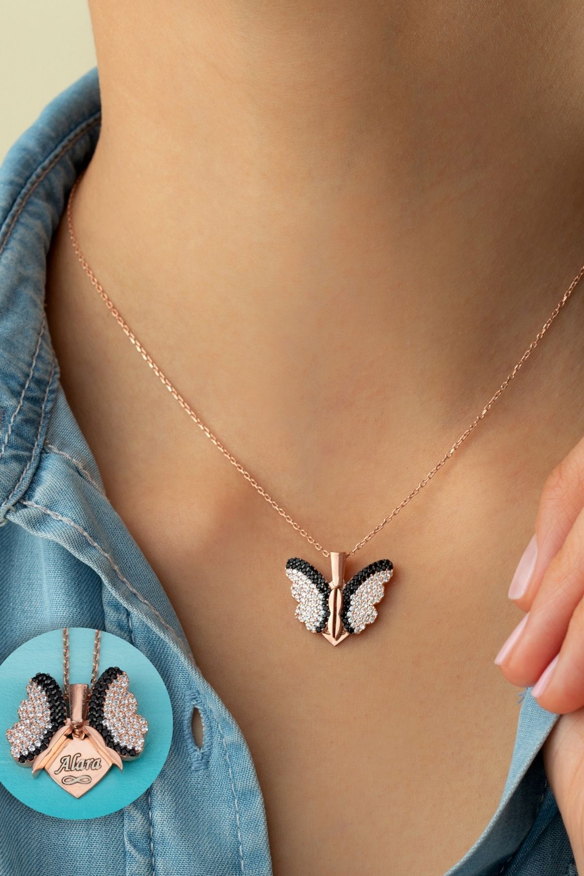 925 Ayar Gümüş Çift Renk Kanatlı Kelebek Kolye
