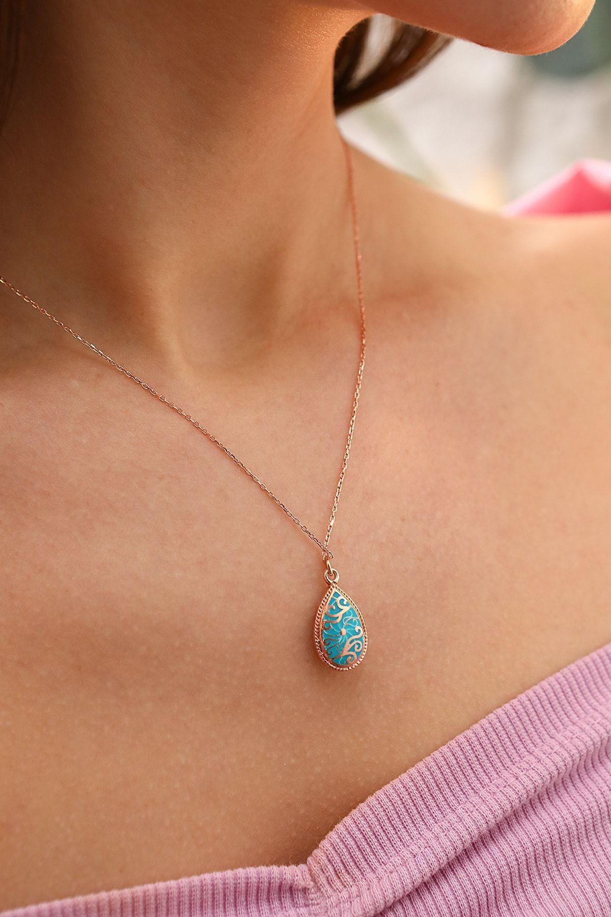 925 Ayar Gümüş Çift Taraflı Damla Kolye