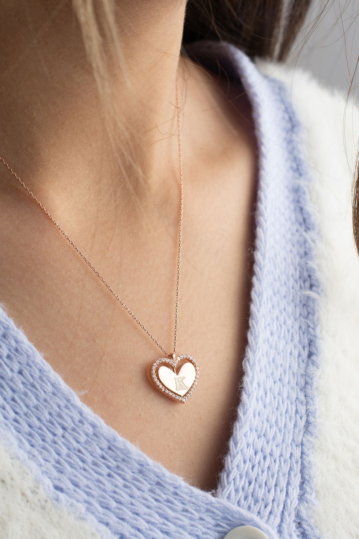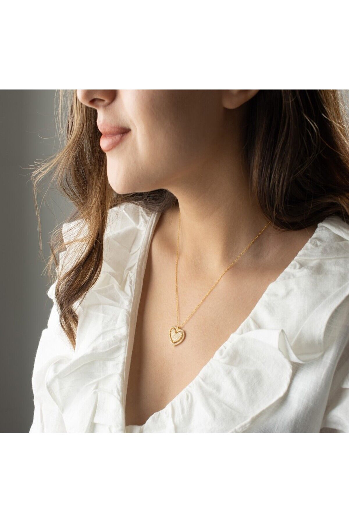 925 Ayar Gümüş Çift Taraflı Kalp Dönence Kolye