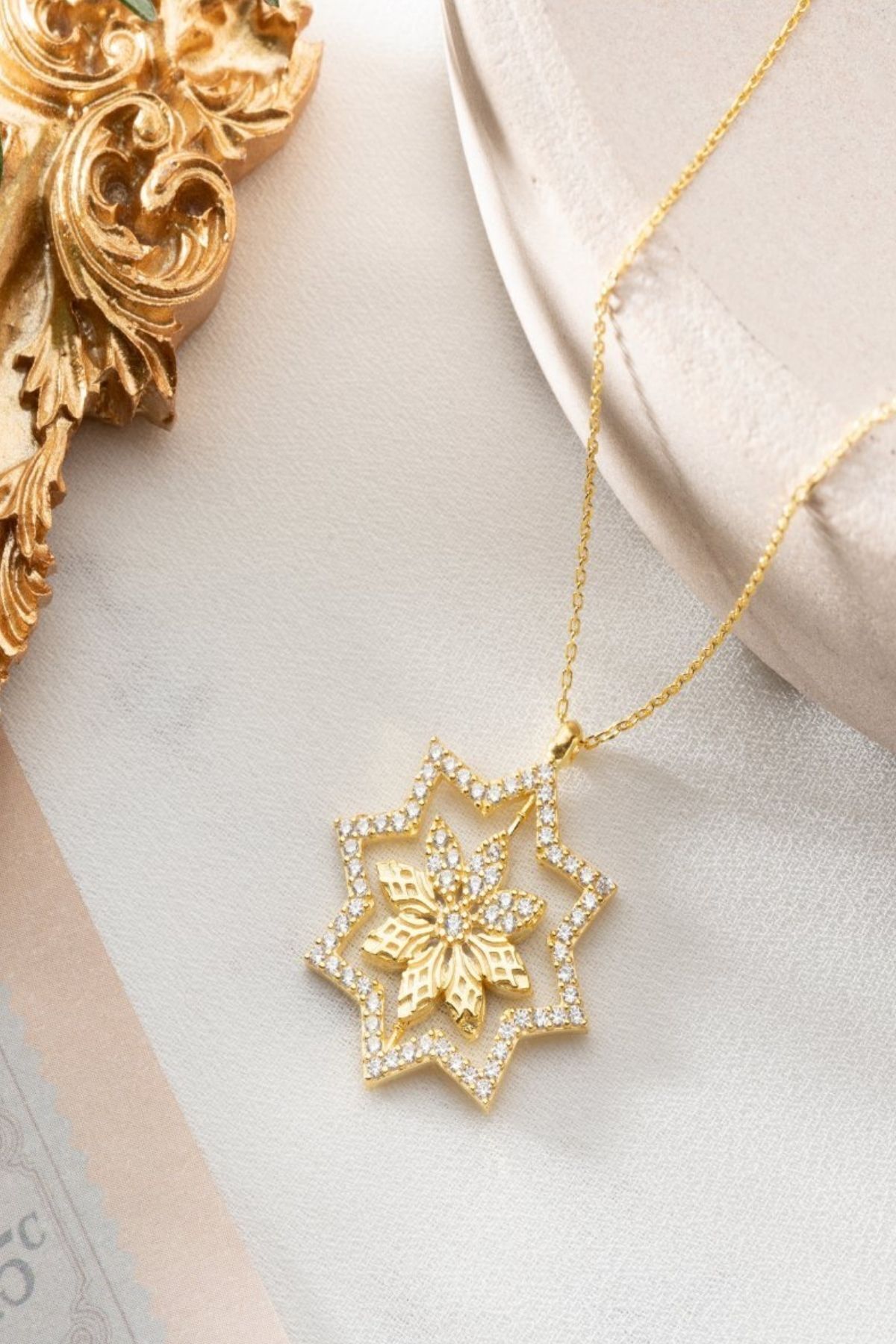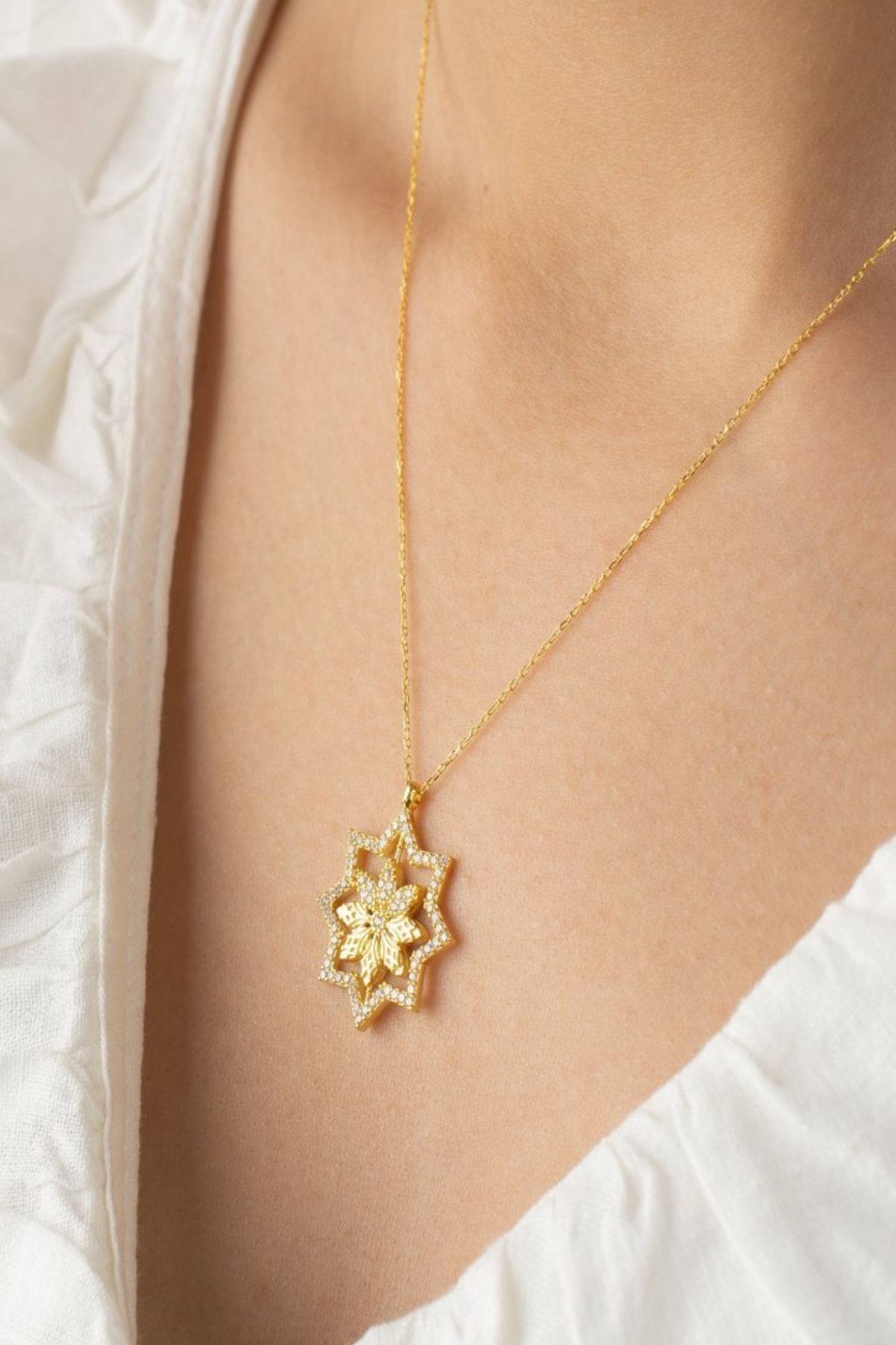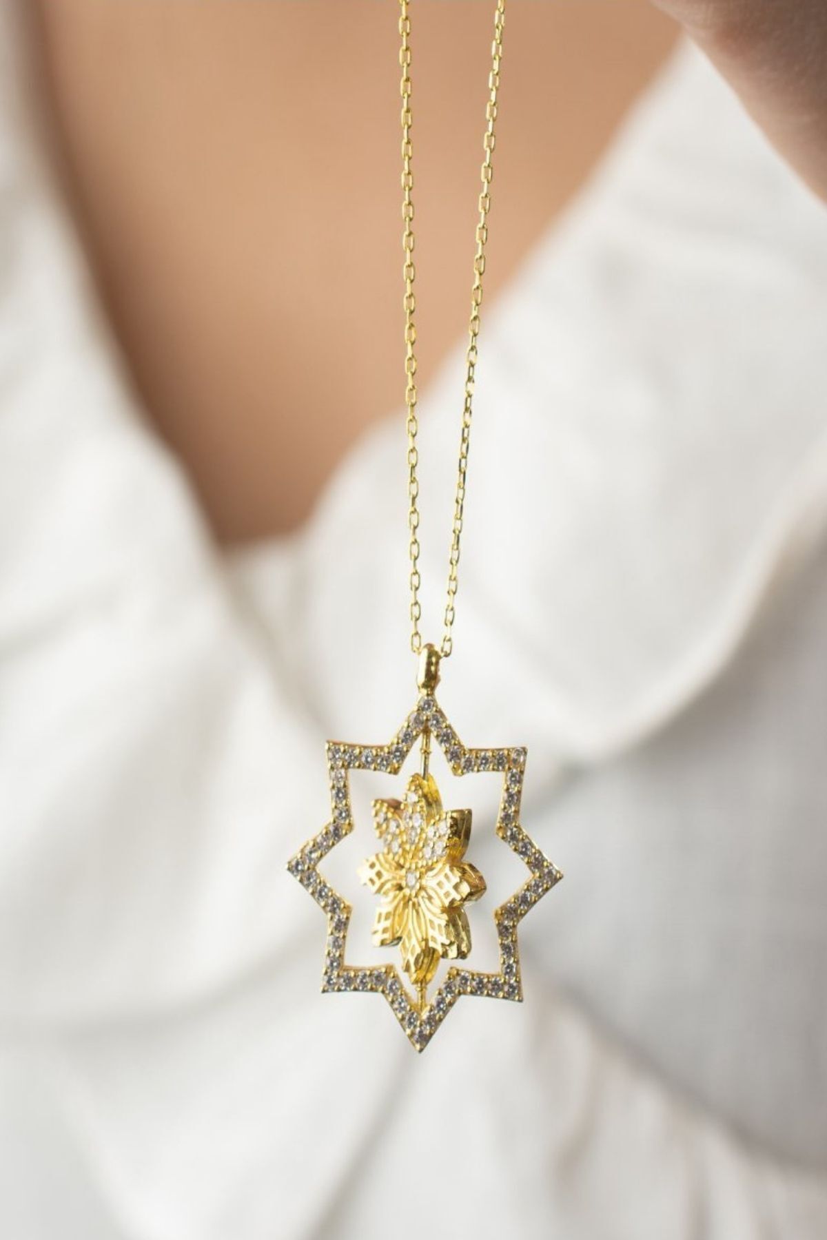 925 Ayar Gümüş Çift Taraflı Lotus Çiçeği Dönence Kolye