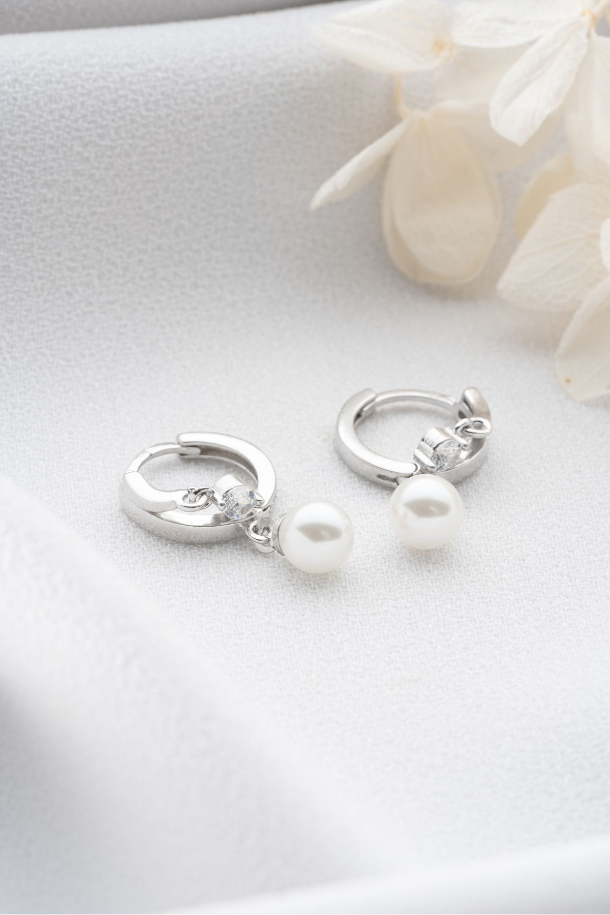 925 Ayar Gümüş Çift Taşlı İnci Küpe