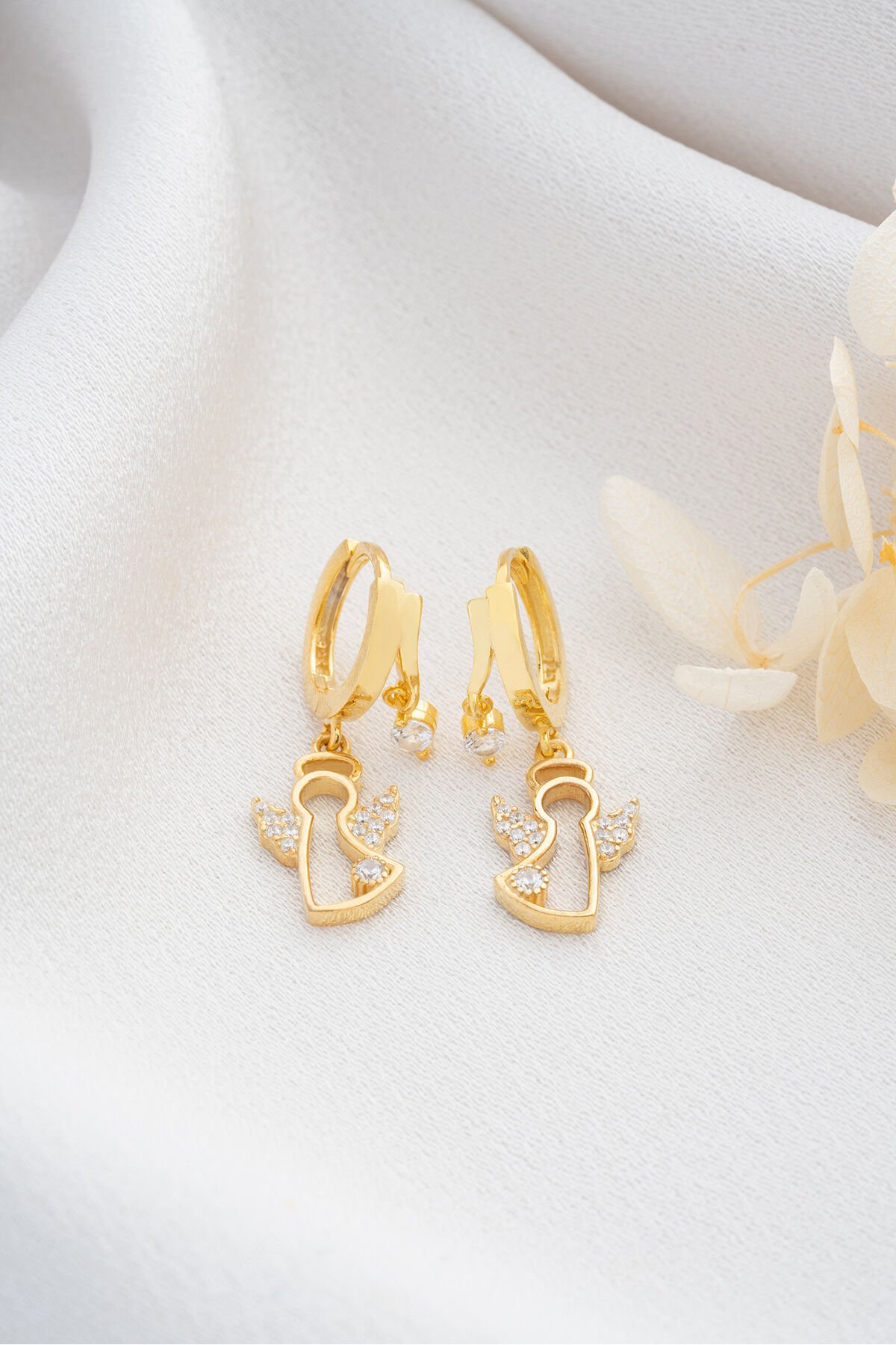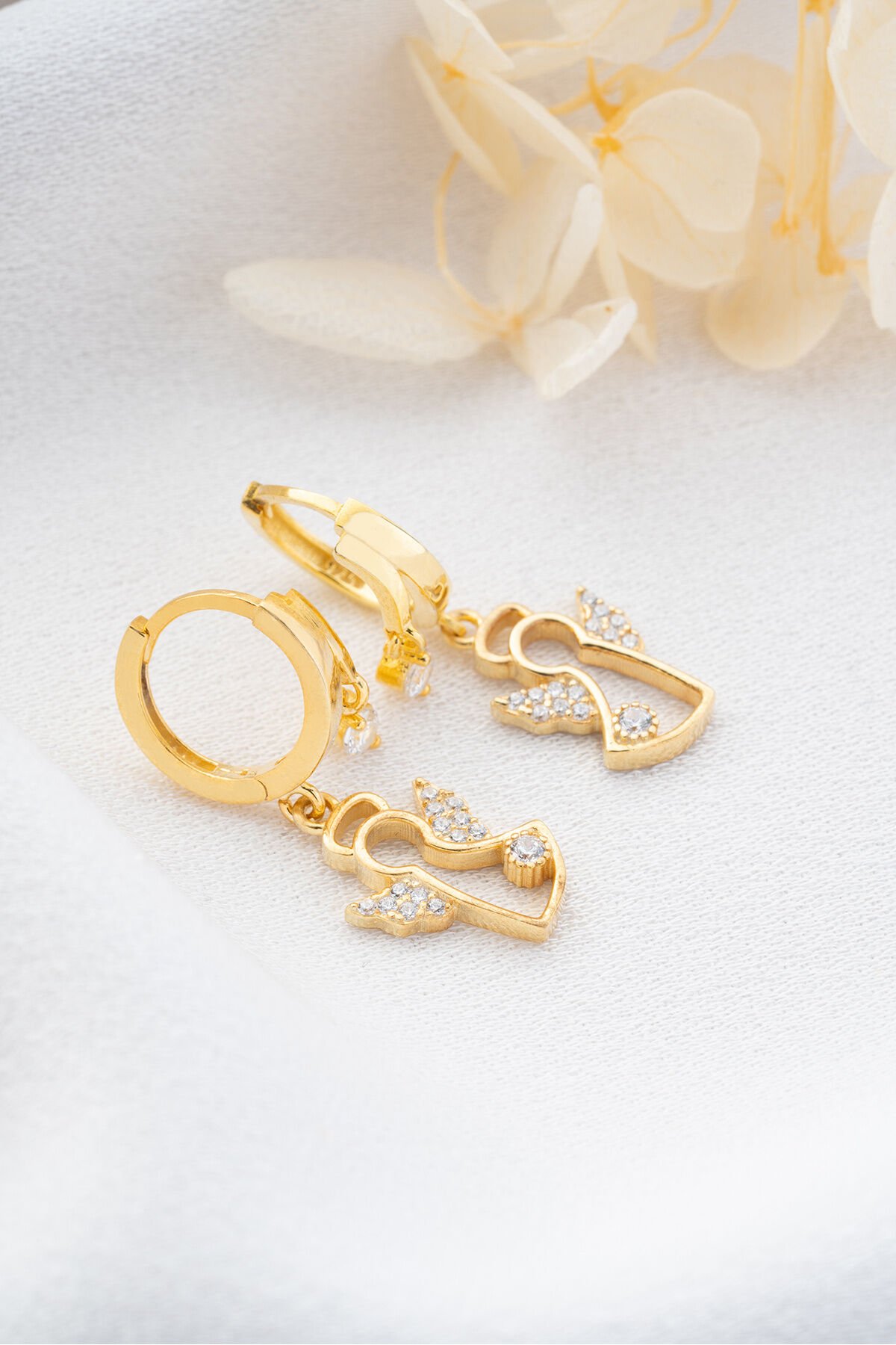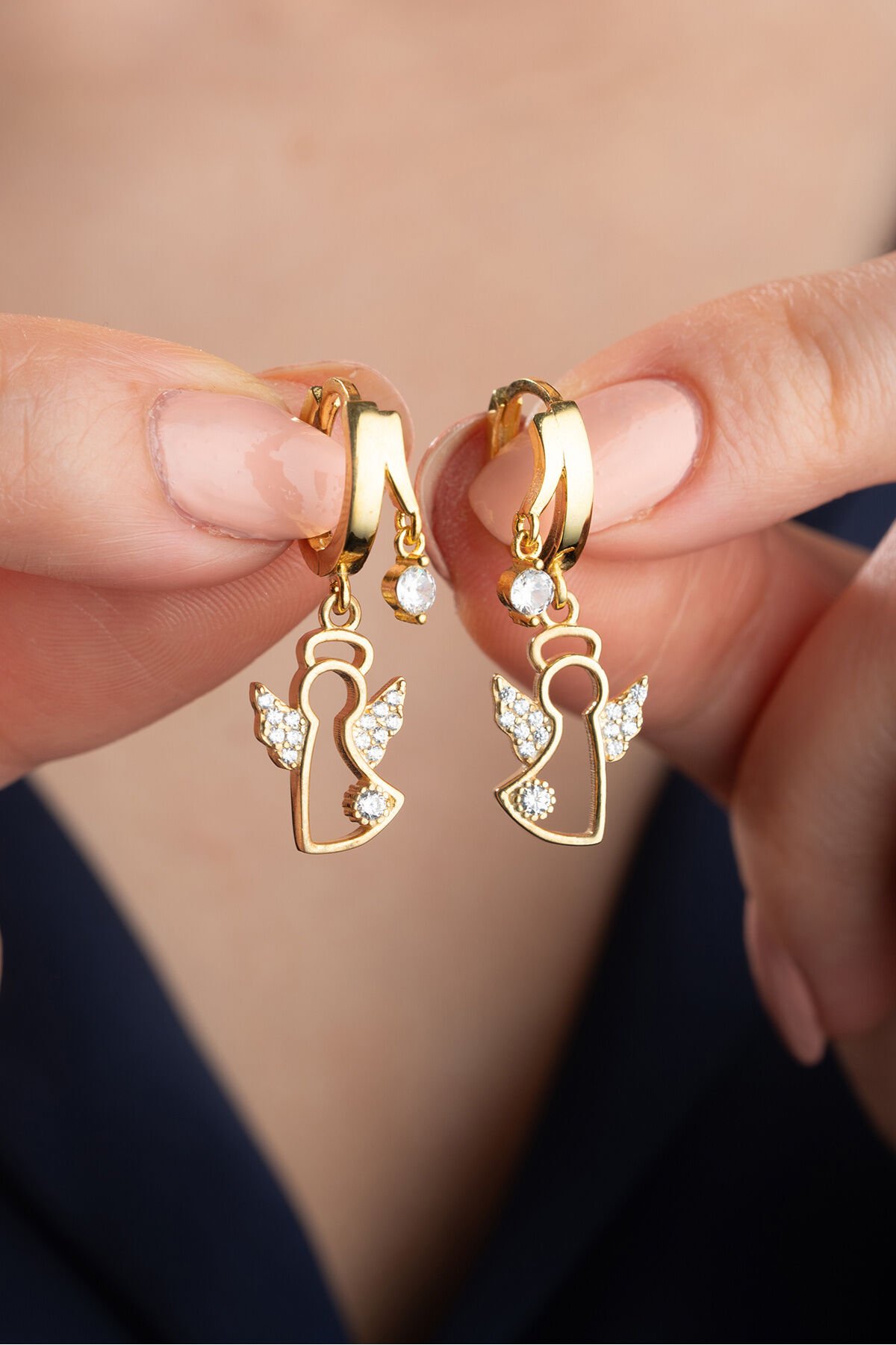 925 Ayar Gümüş Çift Taşlı Melek Küpe