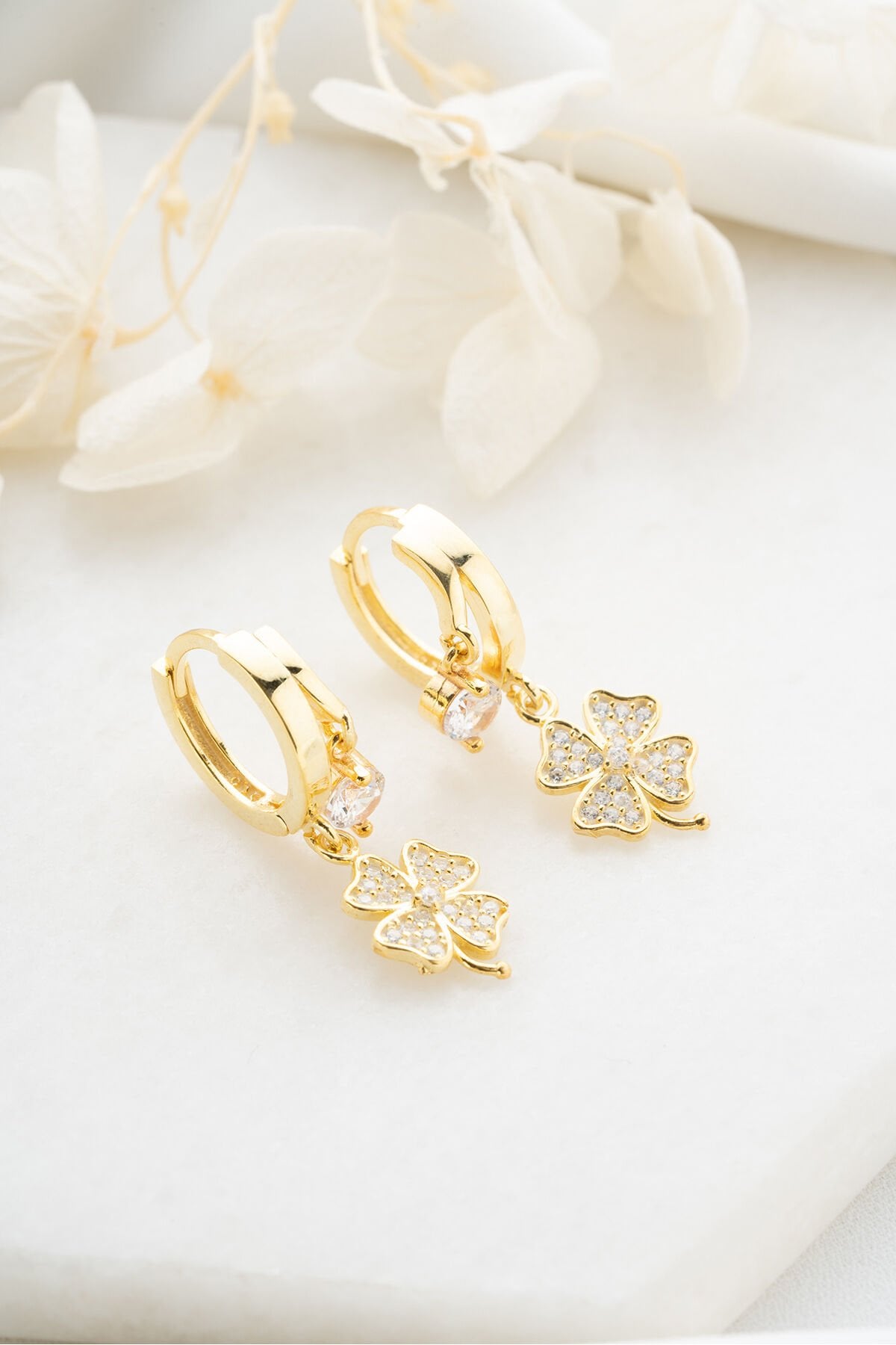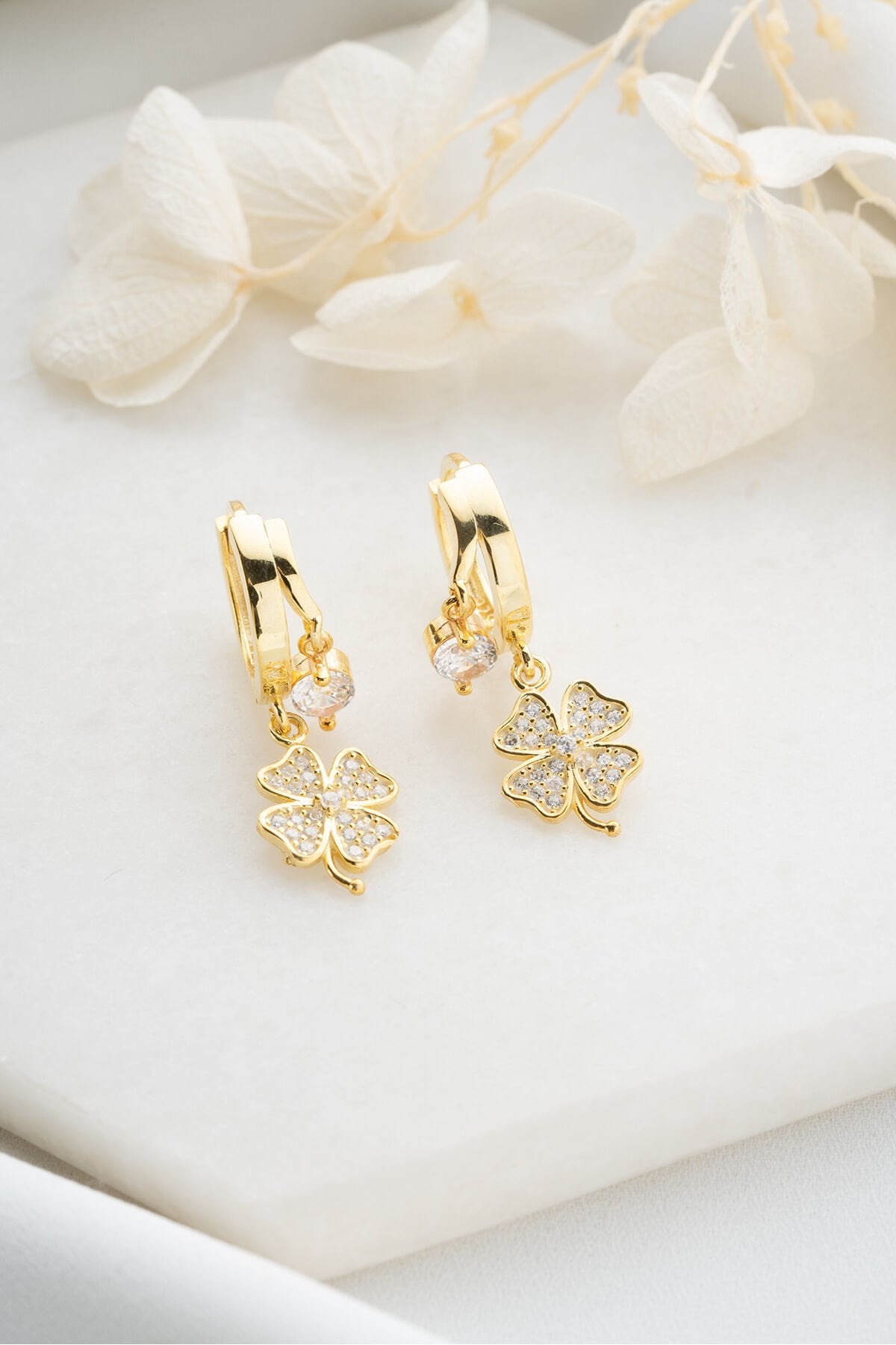 925 Ayar Gümüş Çift Taşlı Yonca Küpe