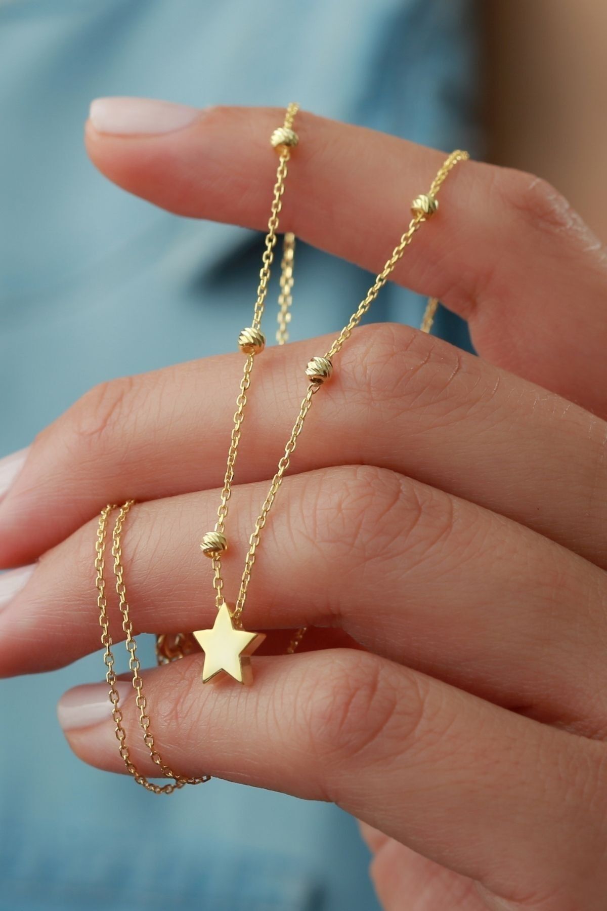 925 Ayar Gümüş Çift Zincirli Yıldız Kolye