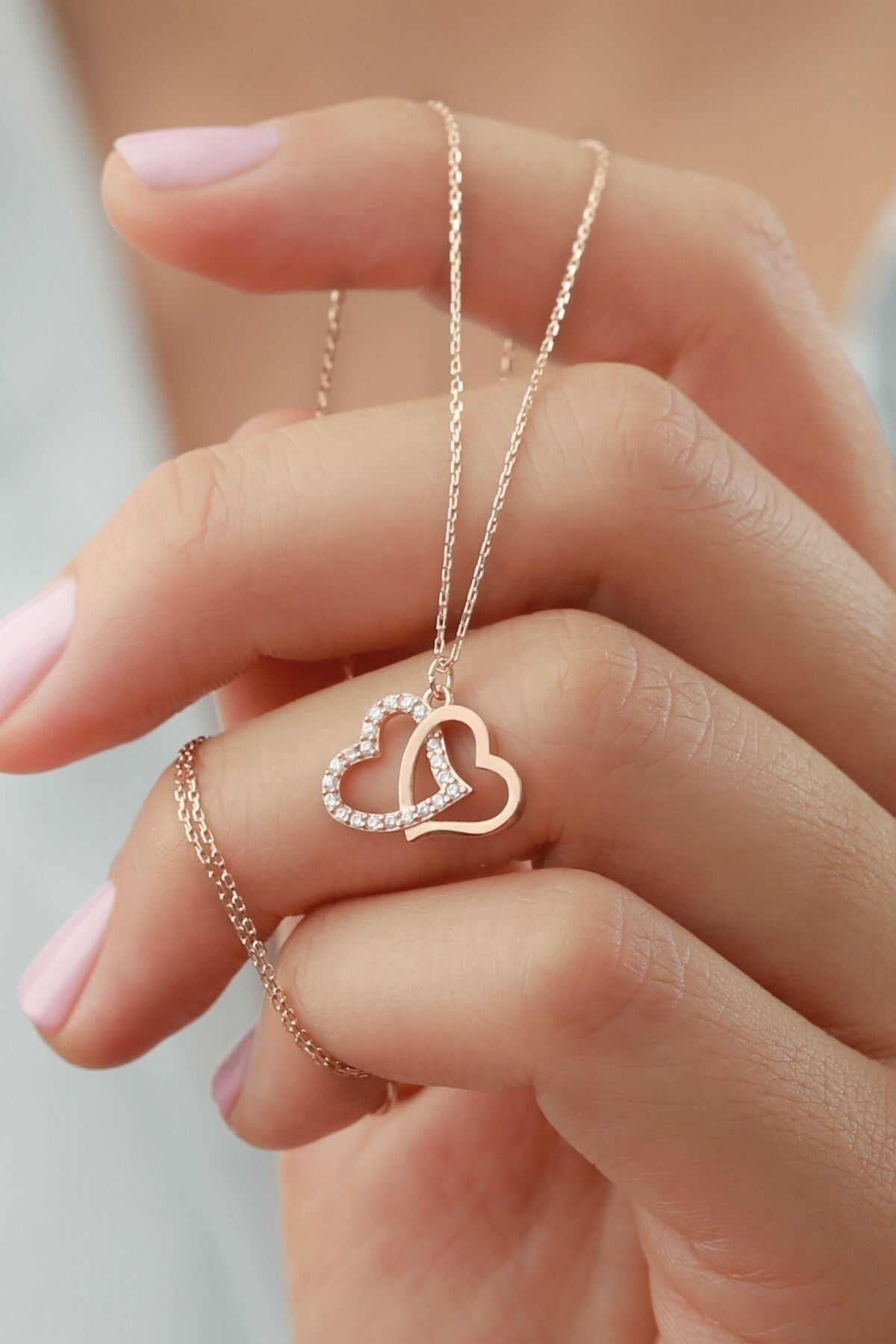 925 Ayar Gümüş Çifte Kalp Kolye
